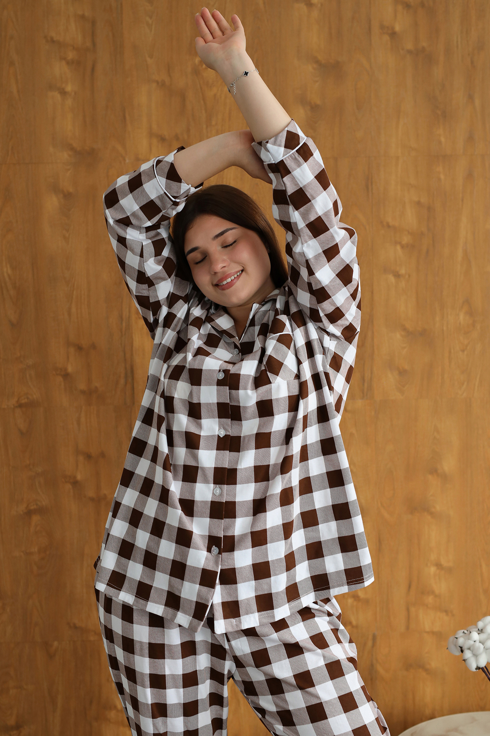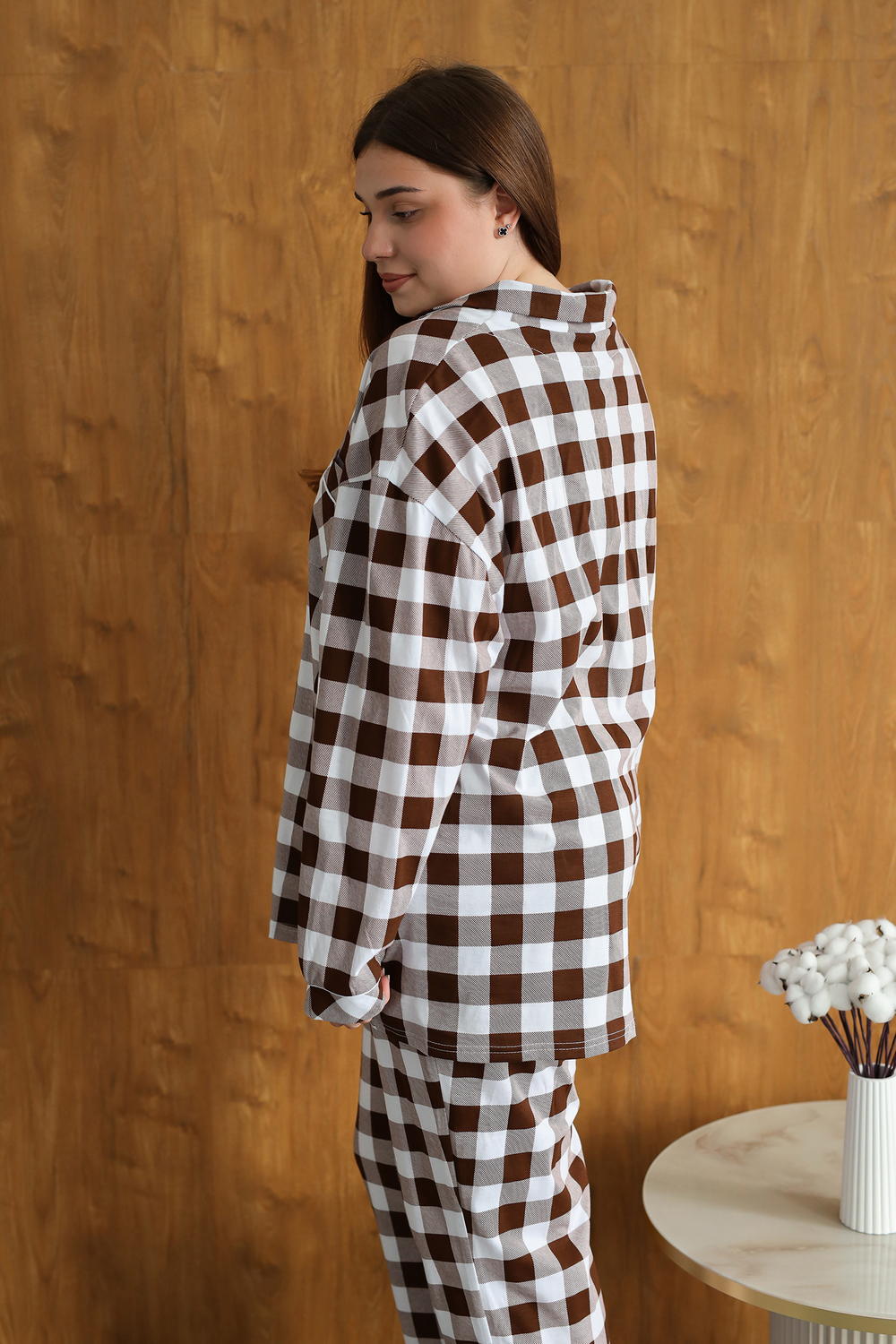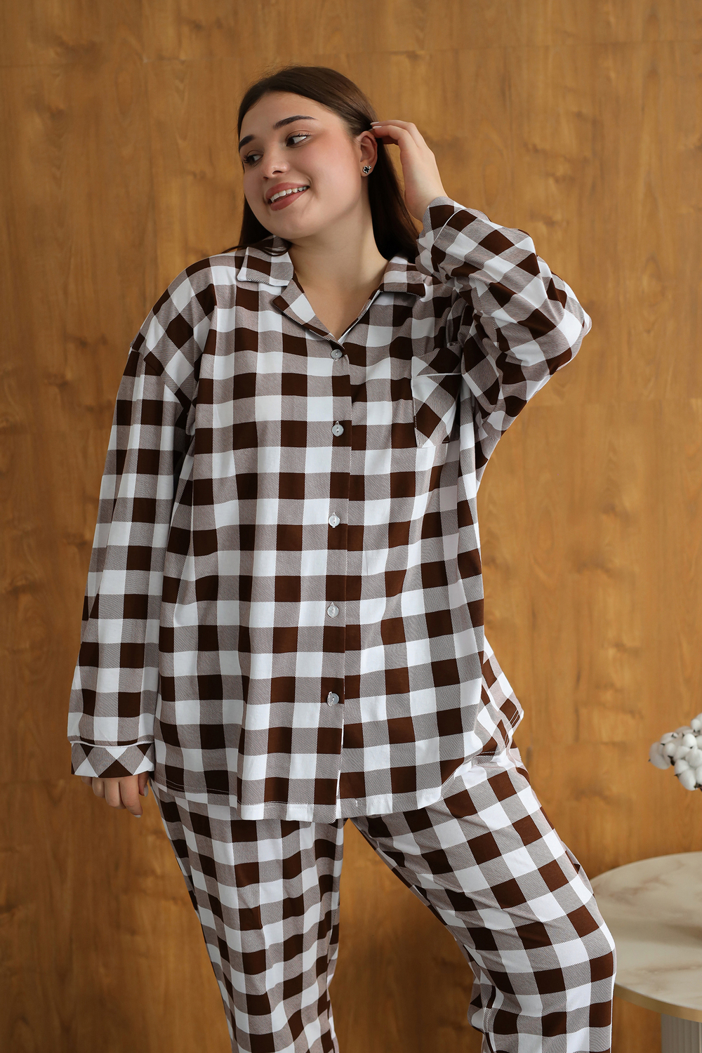 Представляем вам уютную и стильную пижаму, созданную специально для женщин, ценящих комфорт и элегантность. Эта пижама станет идеальным выбором для холодных зимних вечеров, обеспечивая вам тепло и уют в любое время суток. Она сшита из 100% хлопка, что гарантирует мягкость, приятную тактильность и комфорт при ношении. Модель выполнена в классическом клетчатом дизайне, который никогда не выходит из моды. Пижама состоит из стильной рубашки с длинными рукавами на пуговицах и просторных брюк с высокой посадкой, обеспечивая свободу движений и максимальный комфорт. Благодаря свободному крою и мягкой ткани, эта пижама идеально подходит для женщин больших размеров, обеспечивая им комфорт и уверенность. Она станет отличным подарком на Рождество для любимых женщин, а также прекрасным вариантом для ношения в больнице или дома.