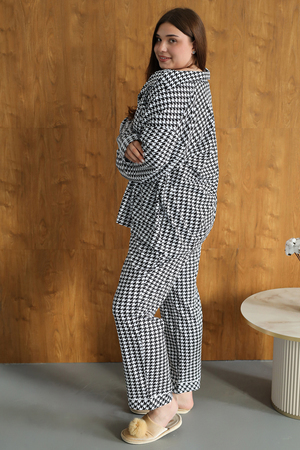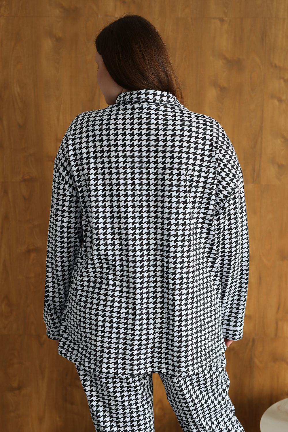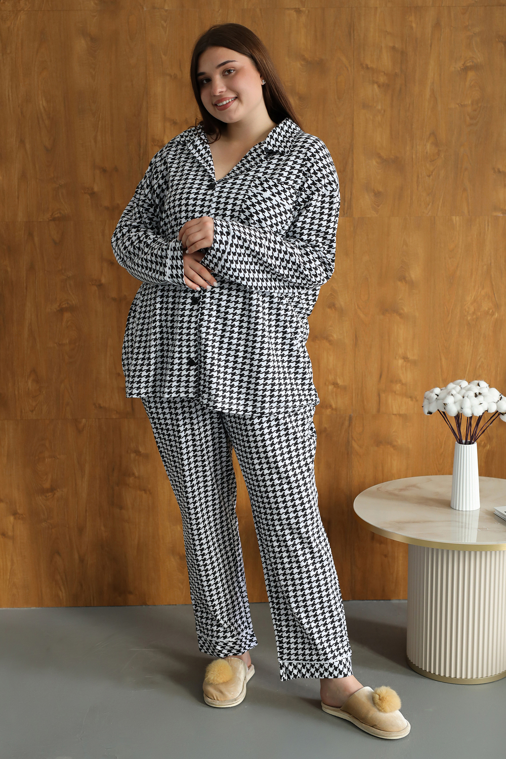 Представляем вам уютную и стильную пижаму, созданную специально для женщин, ценящих комфорт и элегантность. Эта пижама станет идеальным выбором для холодных зимних вечеров, обеспечивая вам тепло и уют в любое время суток. Она сшита из 100% хлопка, что гарантирует мягкость, приятную тактильность и комфорт при ношении.  Модель выполнена в классическом клетчатом дизайне, который никогда не выходит из моды. Пижама состоит из стильной рубашки с длинными рукавами на пуговицах и просторных брюк с высокой посадкой, обеспечивая свободу движений и максимальный комфорт.  Благодаря свободному крою и мягкой ткани, эта пижама идеально подходит для женщин больших размеров, обеспечивая им комфорт и уверенность. Она станет отличным подарком на Рождество для любимых женщин, а также прекрасным вариантом для ношения в больнице или дома.
