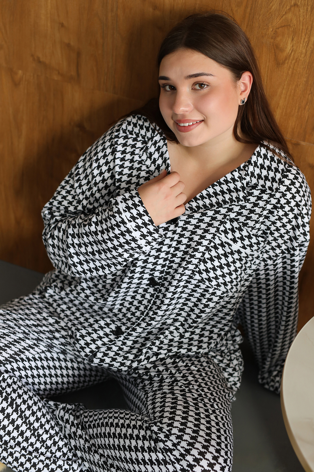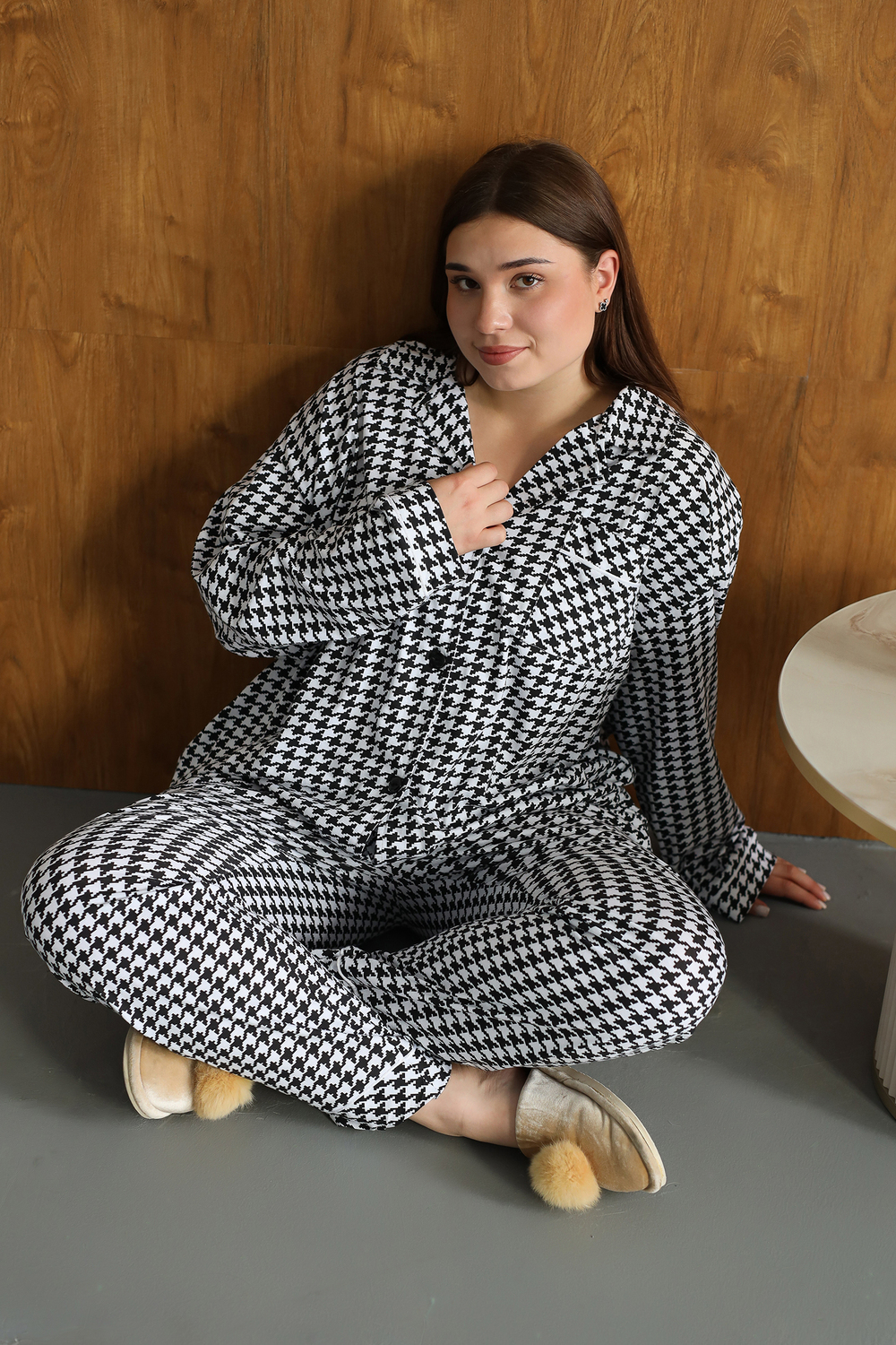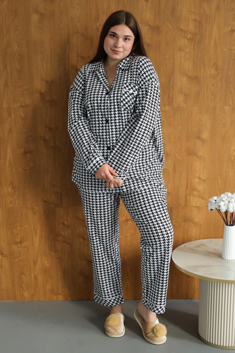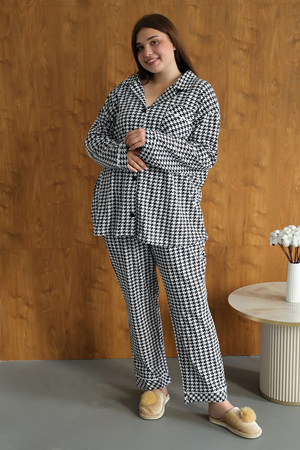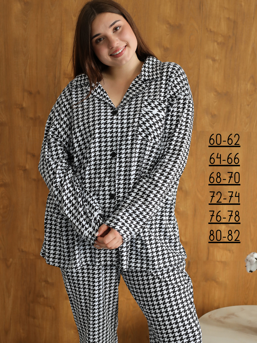 Модель: Теплая пижама больших размеров с рубашкой и штанами