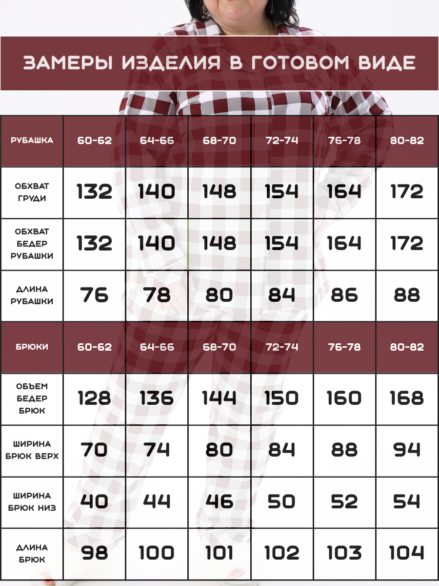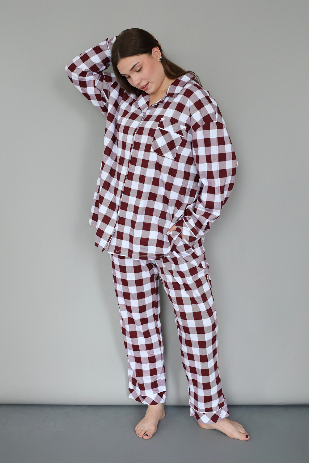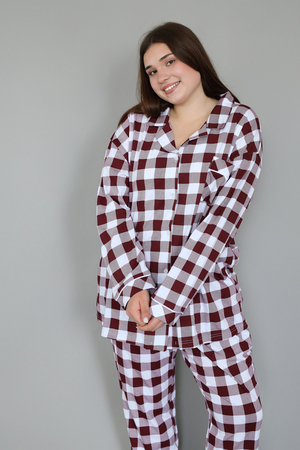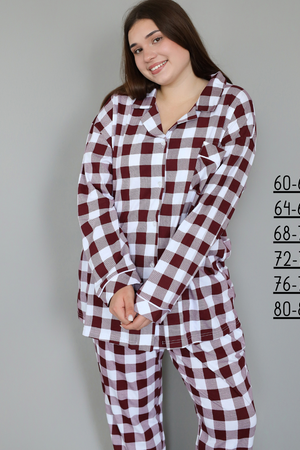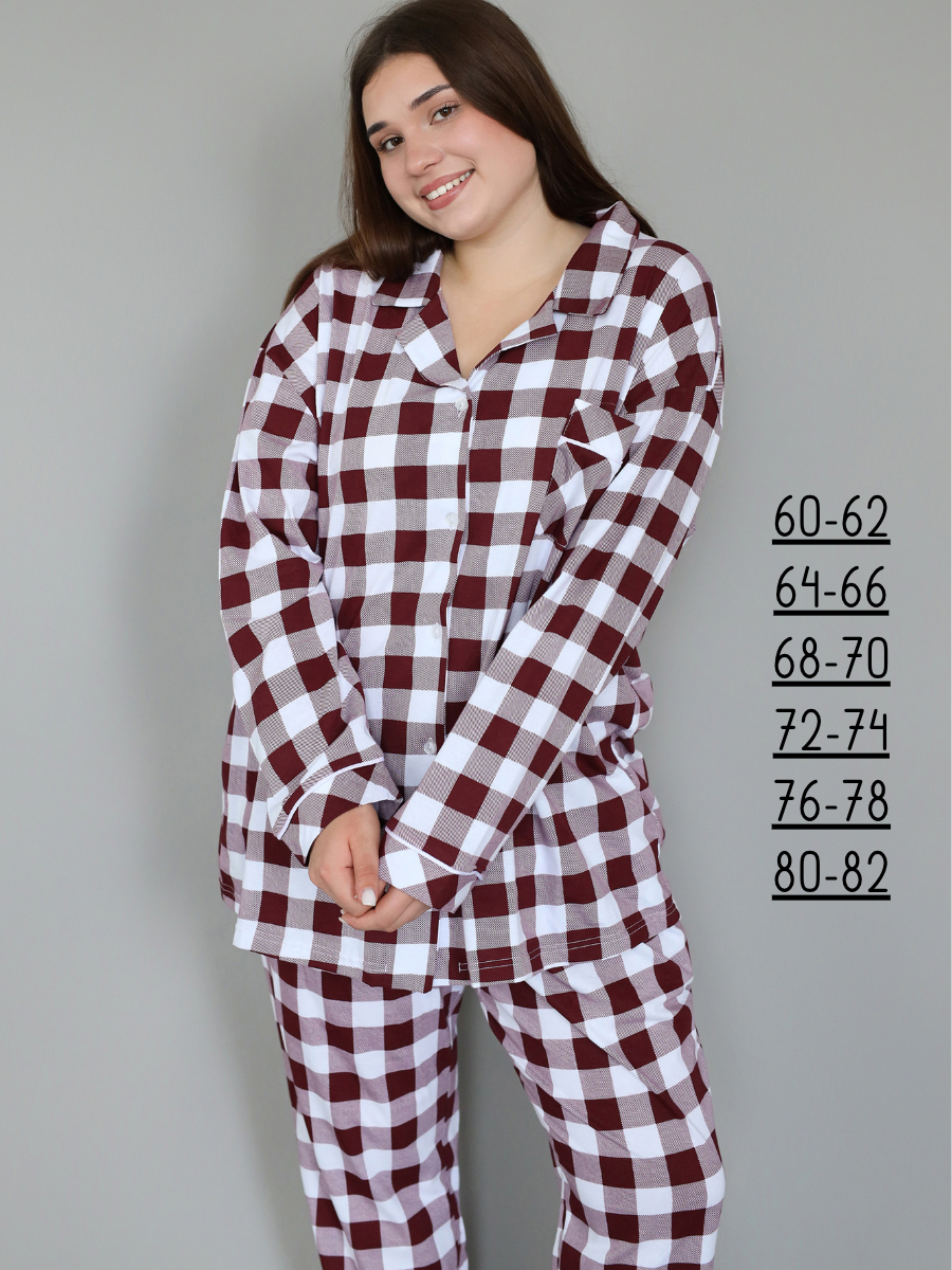 Представляем вам уютную и стильную пижаму, созданную специально для женщин, ценящих комфорт и элегантность. Эта пижама станет идеальным выбором для холодных зимних вечеров, обеспечивая вам тепло и уют в любое время суток. Она сшита из 100% хлопка, что гарантирует мягкость, приятную тактильность и комфорт при ношении. Модель выполнена в классическом клетчатом дизайне, который никогда не выходит из моды. Пижама состоит из стильной рубашки с длинными рукавами на пуговицах и просторных брюк с высокой посадкой, обеспечивая свободу движений и максимальный комфорт. Благодаря свободному крою и мягкой ткани, эта пижама идеально подходит для женщин больших размеров, обеспечивая им комфорт и уверенность. Она станет отличным подарком на Рождество для любимых женщин, а также прекрасным вариантом для ношения в больнице или дома.