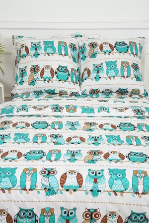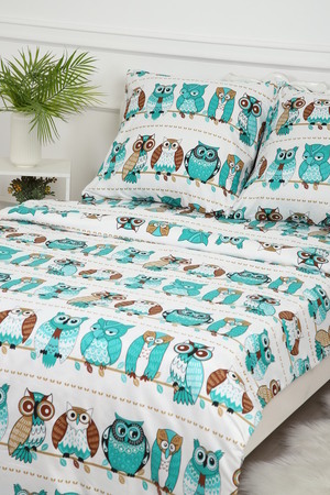Постельное белье Совы 2 спальный Евро простыней на резинке