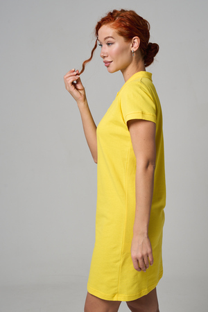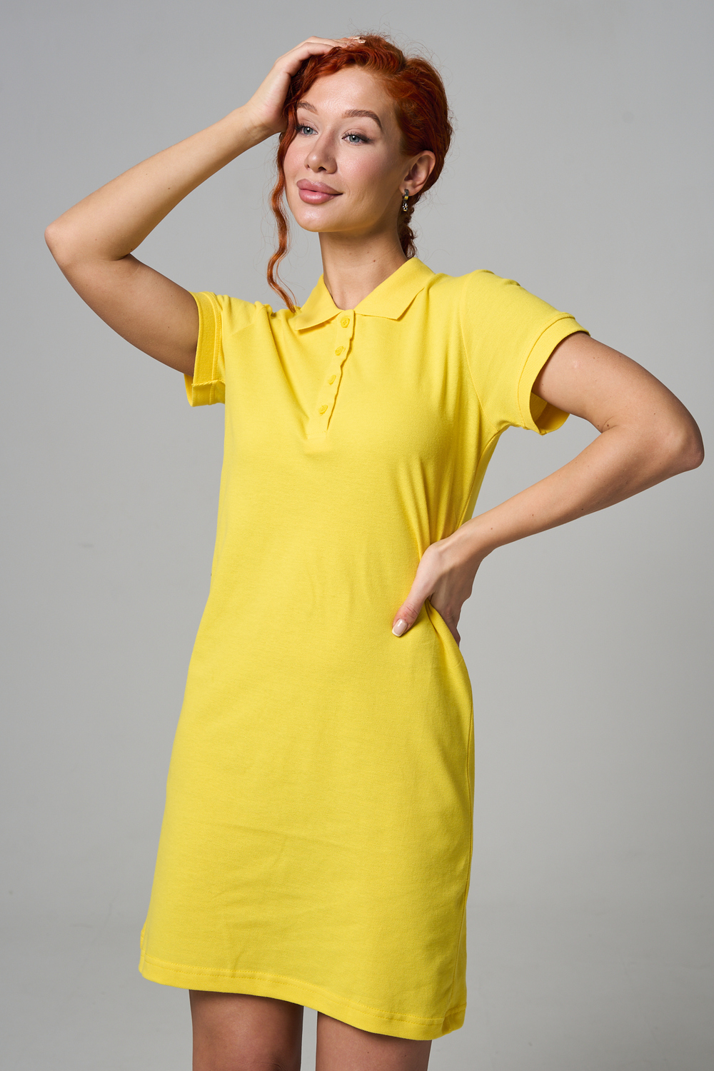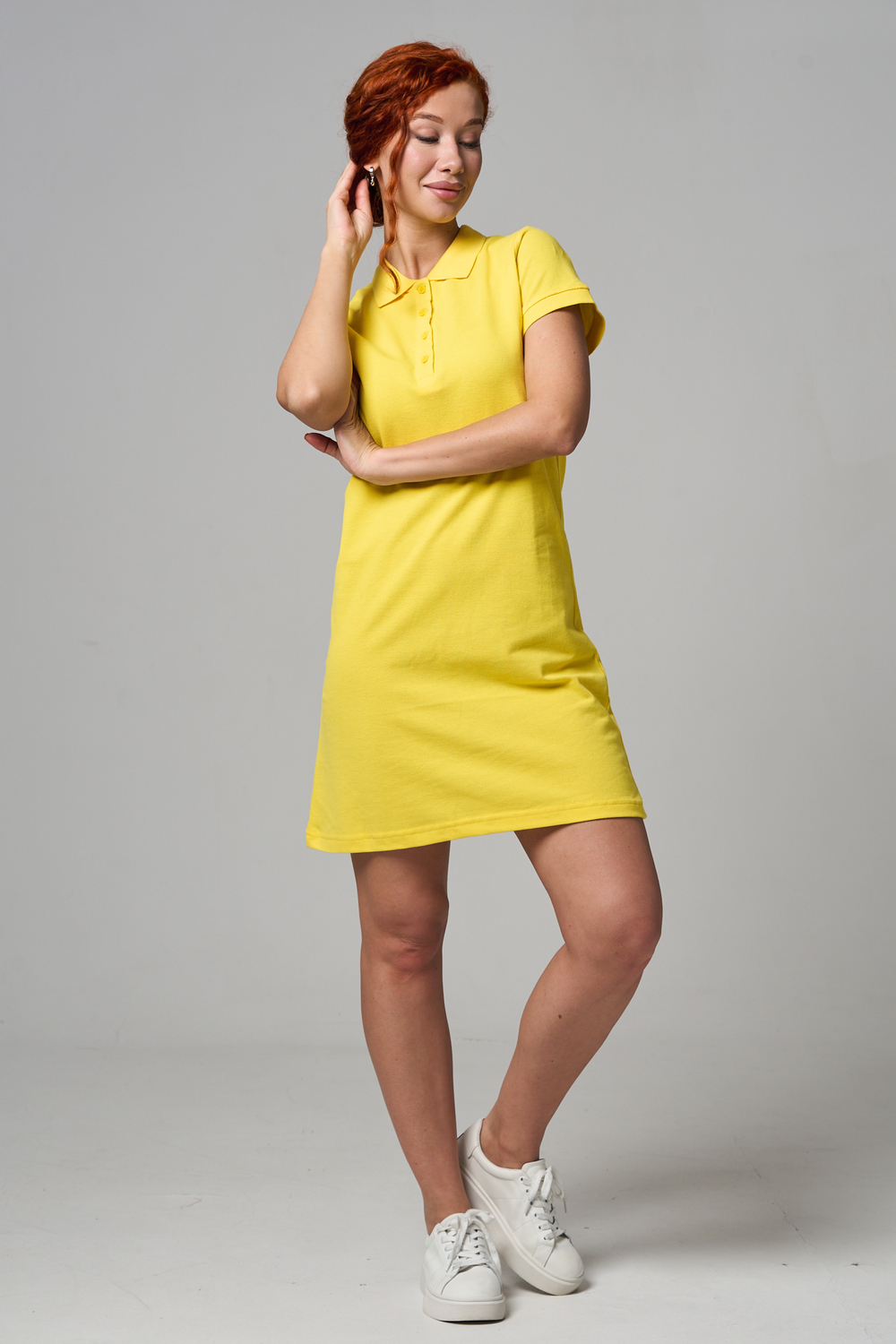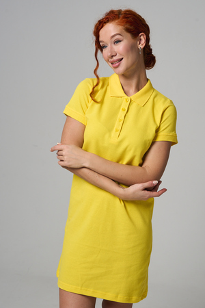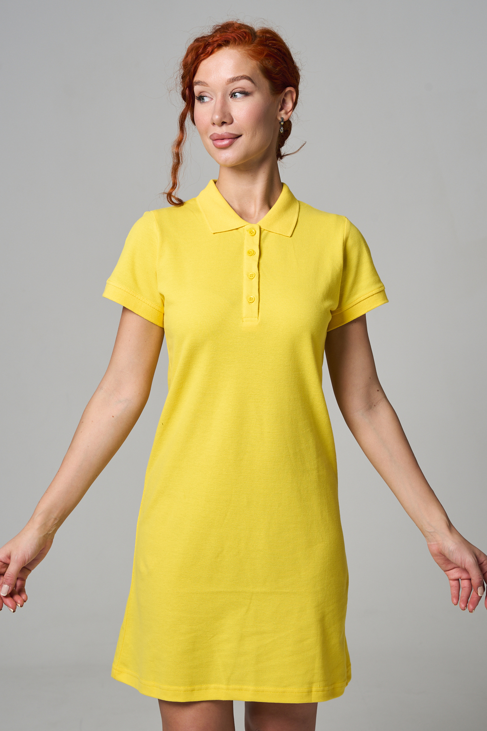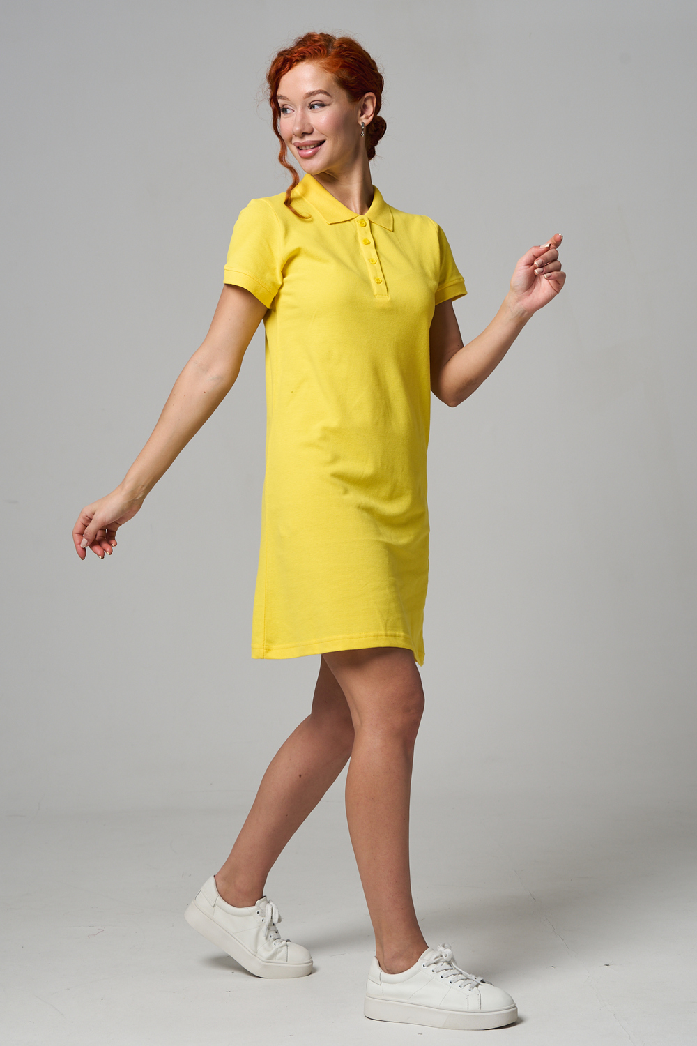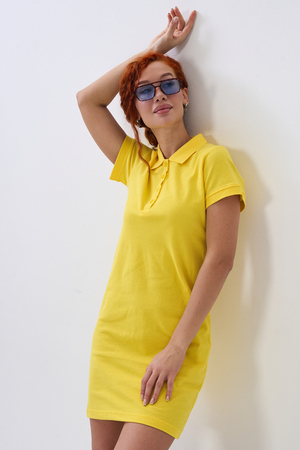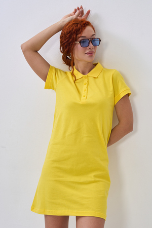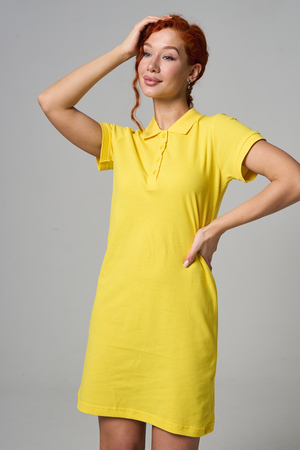 Отличный вариант для жаркого лета - модное платье-поло. Платье имеет отложной ворот и короткий рукав. Кроме того, вверху имеются акцентные пуговицы в цвет платья. Комфортная длина чуть выше колена и прямой крой делает это платье универсальным. Стильное и модное платье подойдет женщинам и девушкам разных возрастов. Хлопок обладает свойствами воздухопроницаемости, что так необходимо в жаркую весеннюю или летнюю погоду. Это изделие прекрасно сочетается как со спортивной обувью, так с классическими туфлями и балетками. На более прохладную погоду можно создавать многослойные образы, сочетая платья с другой одеждой. Это отличный вариант на повседневную основу на работу в офис, прогулки или учебу. Благодаря достаточному свободному не обтягивающему прилеганию в области талии оно является максимально удобным и комфортным. Плотность 190гр/куб.м. Ткань после стирки и дает усадку по длине.
