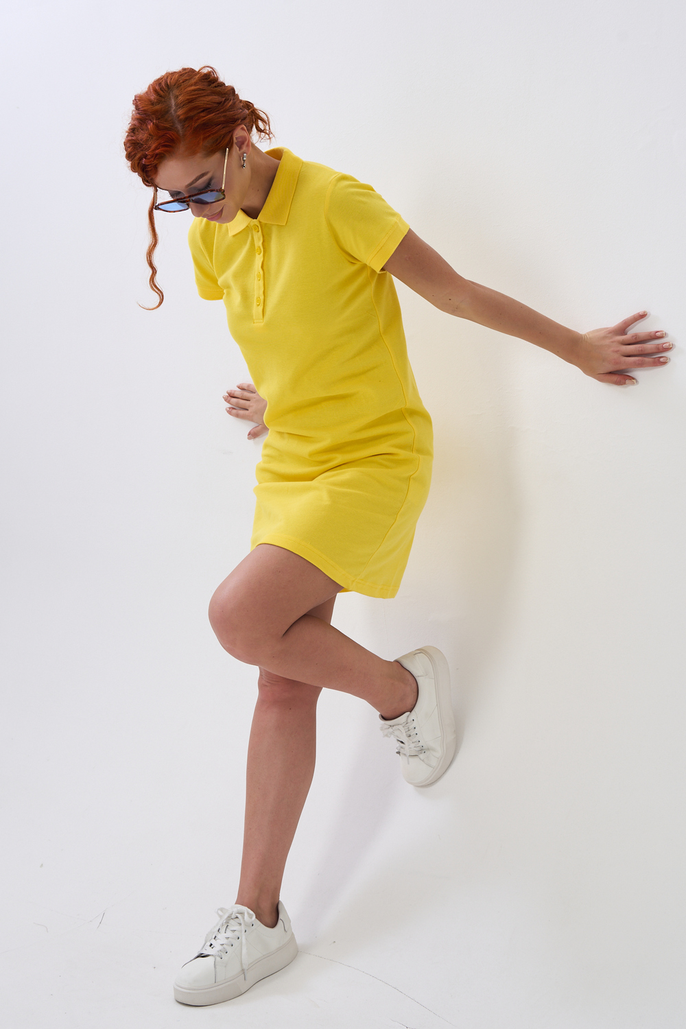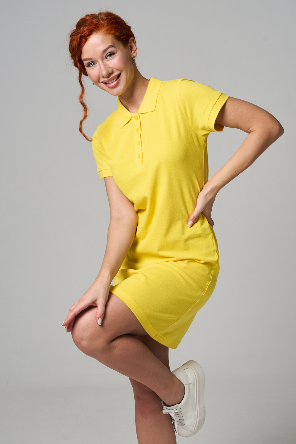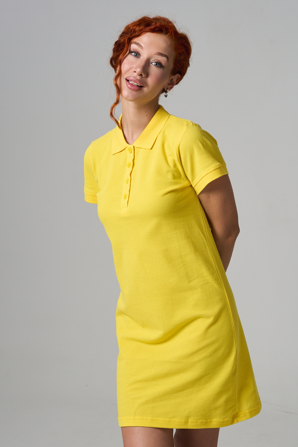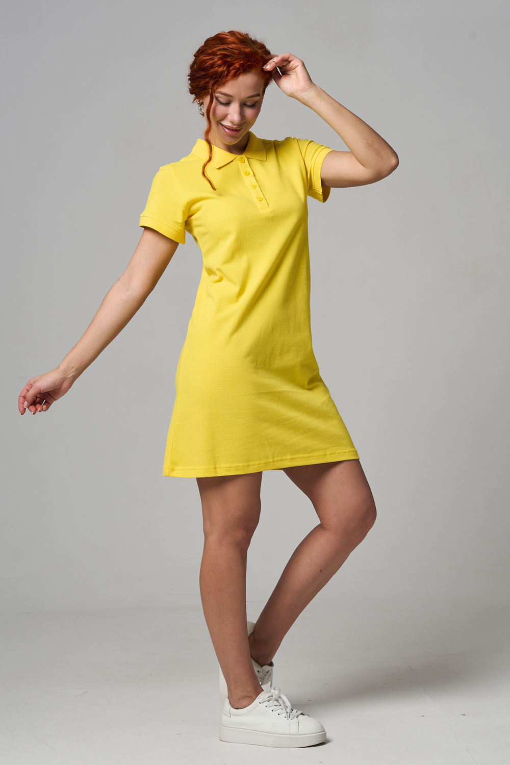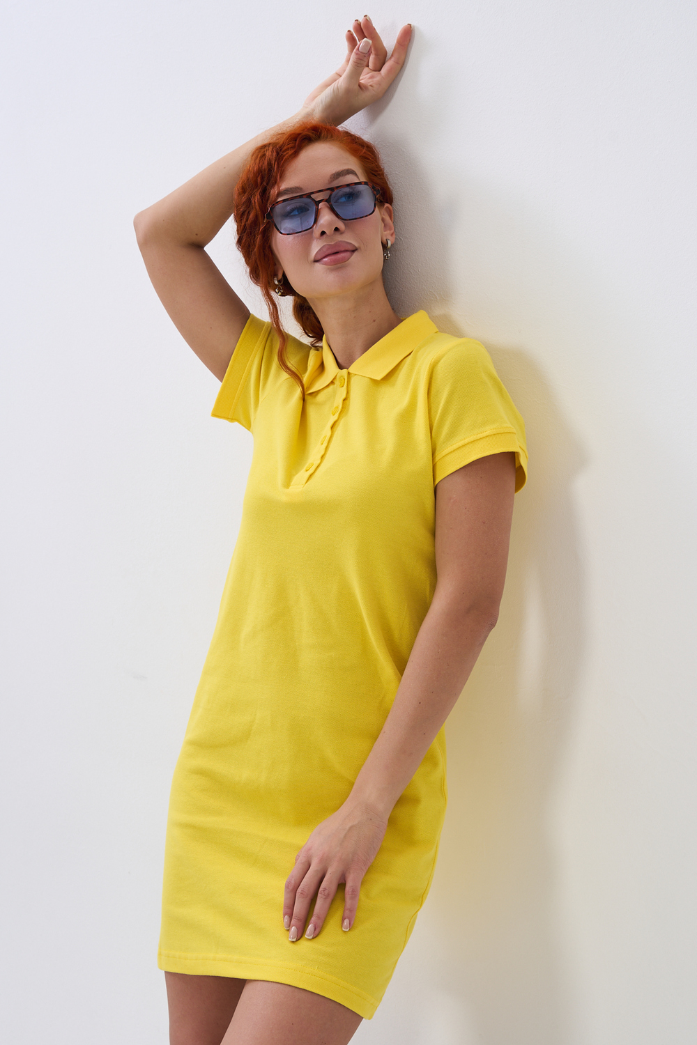 Отличный вариант для жаркого лета - модное платье-поло. Платье имеет отложной ворот и короткий рукав. Кроме того, вверху имеются акцентные пуговицы в цвет платья. Комфортная длина чуть выше колена и прямой крой делает это платье универсальным. Стильное и модное платье подойдет женщинам и девушкам разных возрастов. Хлопок обладает свойствами воздухопроницаемости, что так необходимо в жаркую весеннюю или летнюю погоду. Это изделие прекрасно сочетается как со спортивной обувью, так с классическими туфлями и балетками. На более прохладную погоду можно создавать многослойные образы, сочетая платья с другой одеждой. Это отличный вариант на повседневную основу на работу в офис, прогулки или учебу. Благодаря достаточному свободному не обтягивающему прилеганию в области талии оно является максимально удобным и комфортным. Плотность 190гр/куб.м. Ткань после стирки и дает усадку по длине.