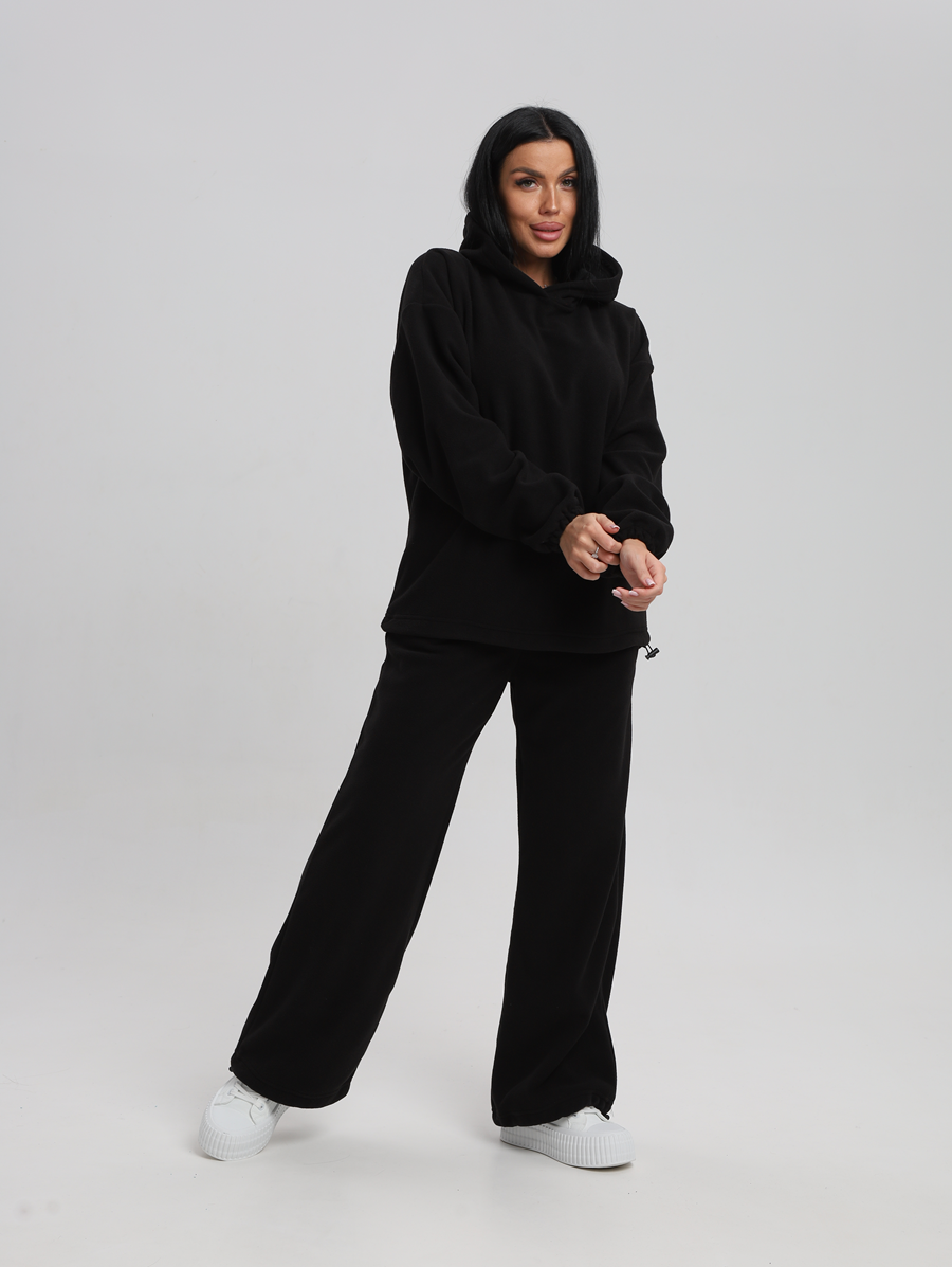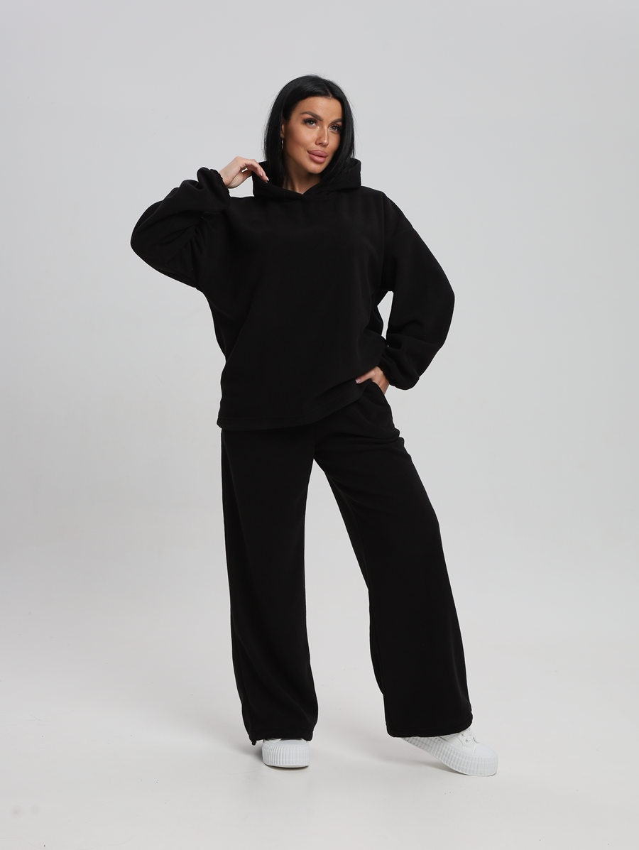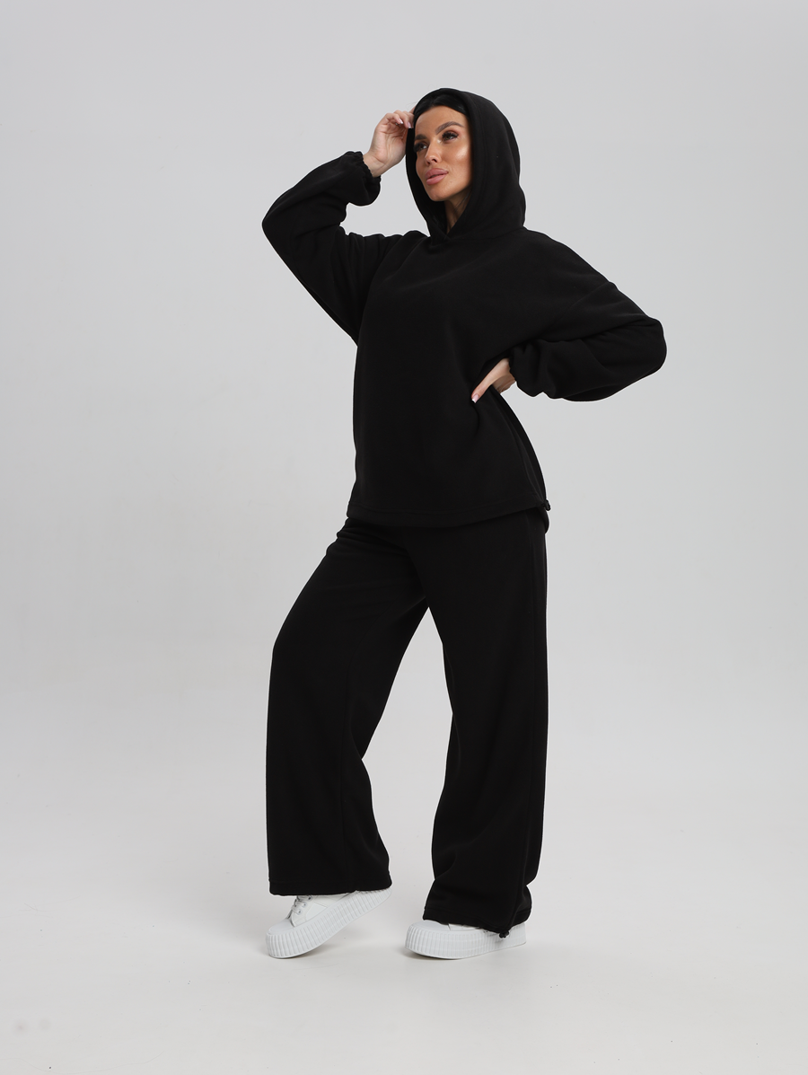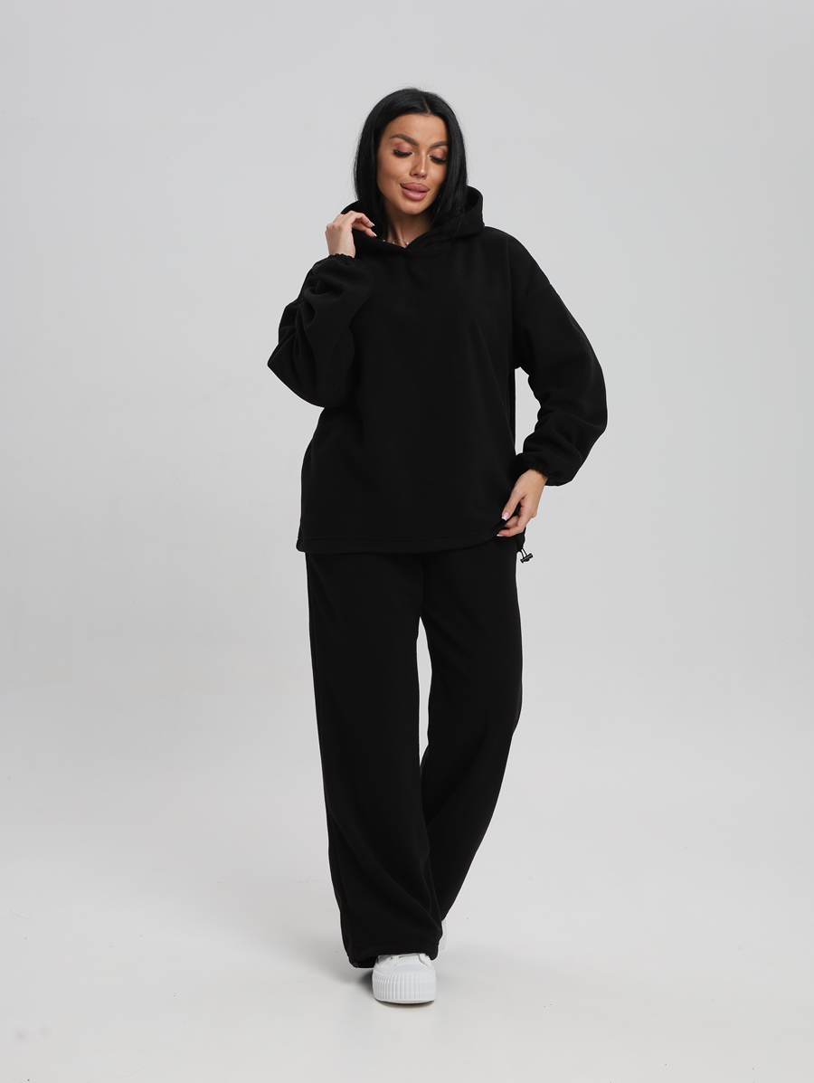 Этот костюм идеально впишется в ваш гардероб для активного отдыха и повседневных прогулок. Все элементы продукта выполнены из 100% полиэстера, что обеспечивает легкость и комфорт в носке. Материал без утеплителя и подкладки позволяет чувствовать себя свободно даже при длительном ношении. Изготовленный из флиса, он мягок на ощупь и приятен к телу, а капюшон добавляет дополнительную защиту от ветра. Модель без застежки легко надевается и снимается, что особенно удобно для будущих мам. Быстросохнущая ткань подходит для активностей на свежем воздухе. Высоко оценимая эластичность материала дарит свободу движений, сохраняя форму изделия после многочисленных стирок. Свободный крой делает его комфортным варианта для высоких женщин или обладательниц больших размеров. Никакие узоры здесь не отвлекают внимание от основного — вашего личного стиля и образа жизни. Худи женское оверсайз с капюшоном и мягкой резинкой на рукавах, капюшон с подкладкой из хлопка, по низу худи шляпная резинка с фиксатором, брюки женские с высокой посадкой на резинке прямого кроя с прорезными карманами по низу брюк шляпная резинка с фиксатором.