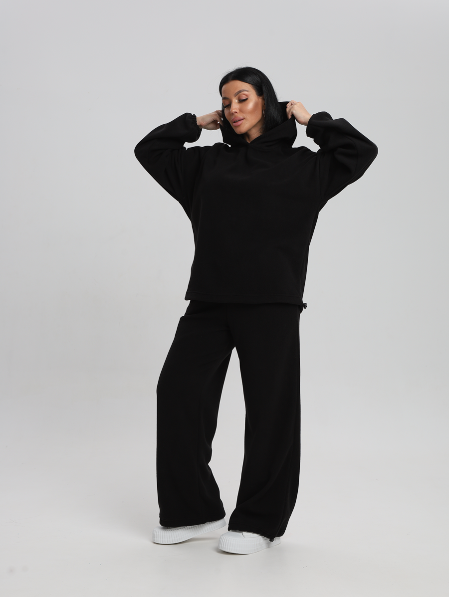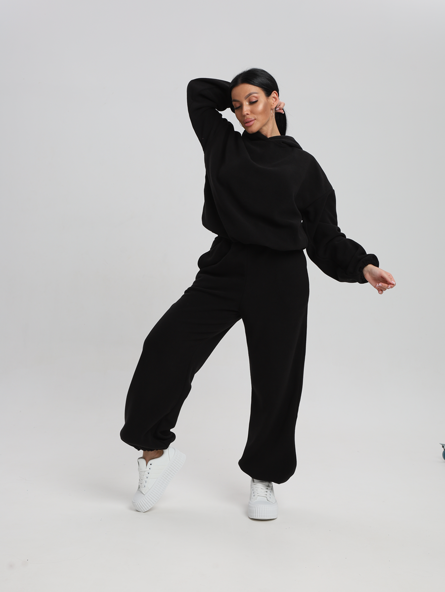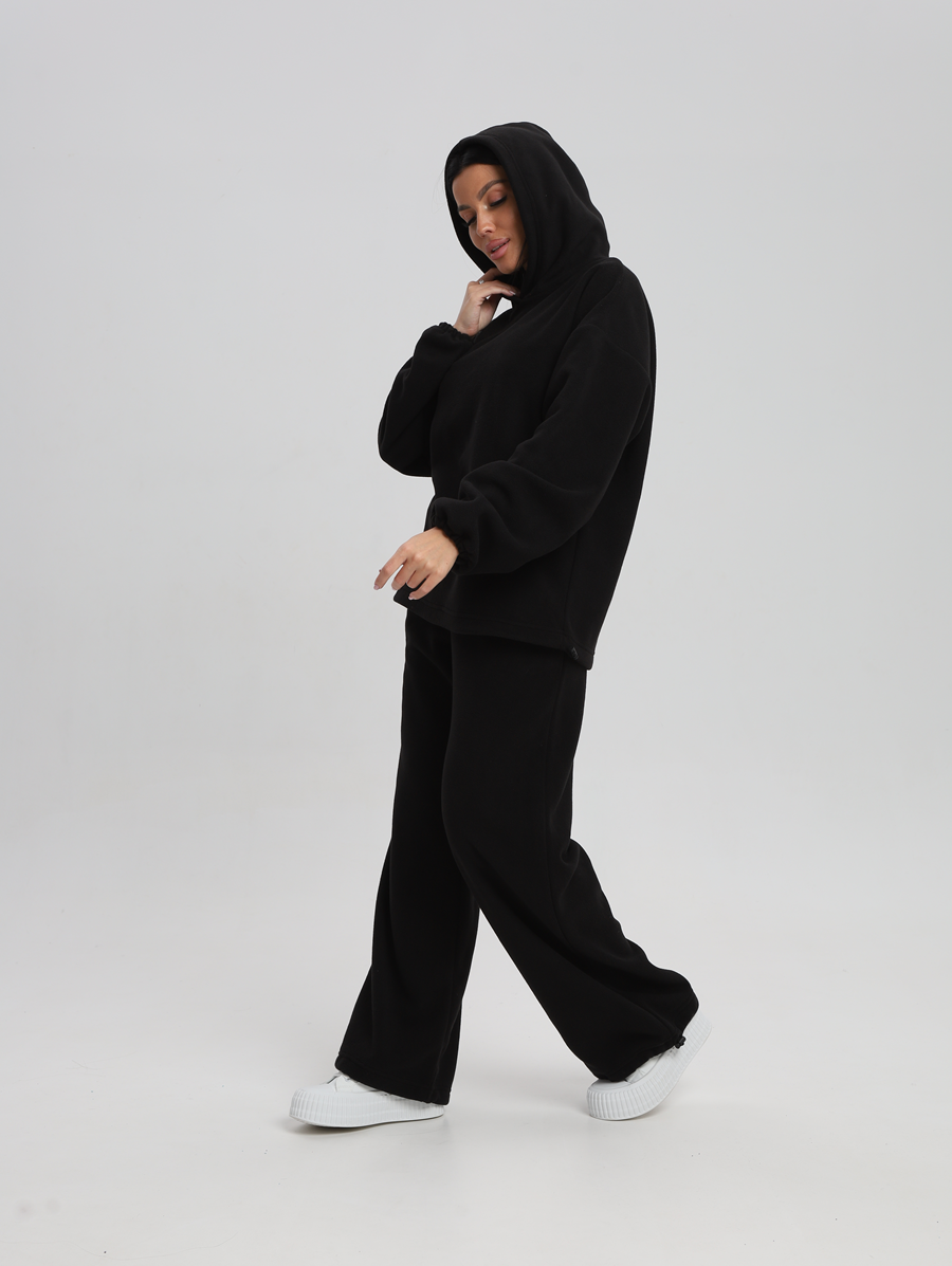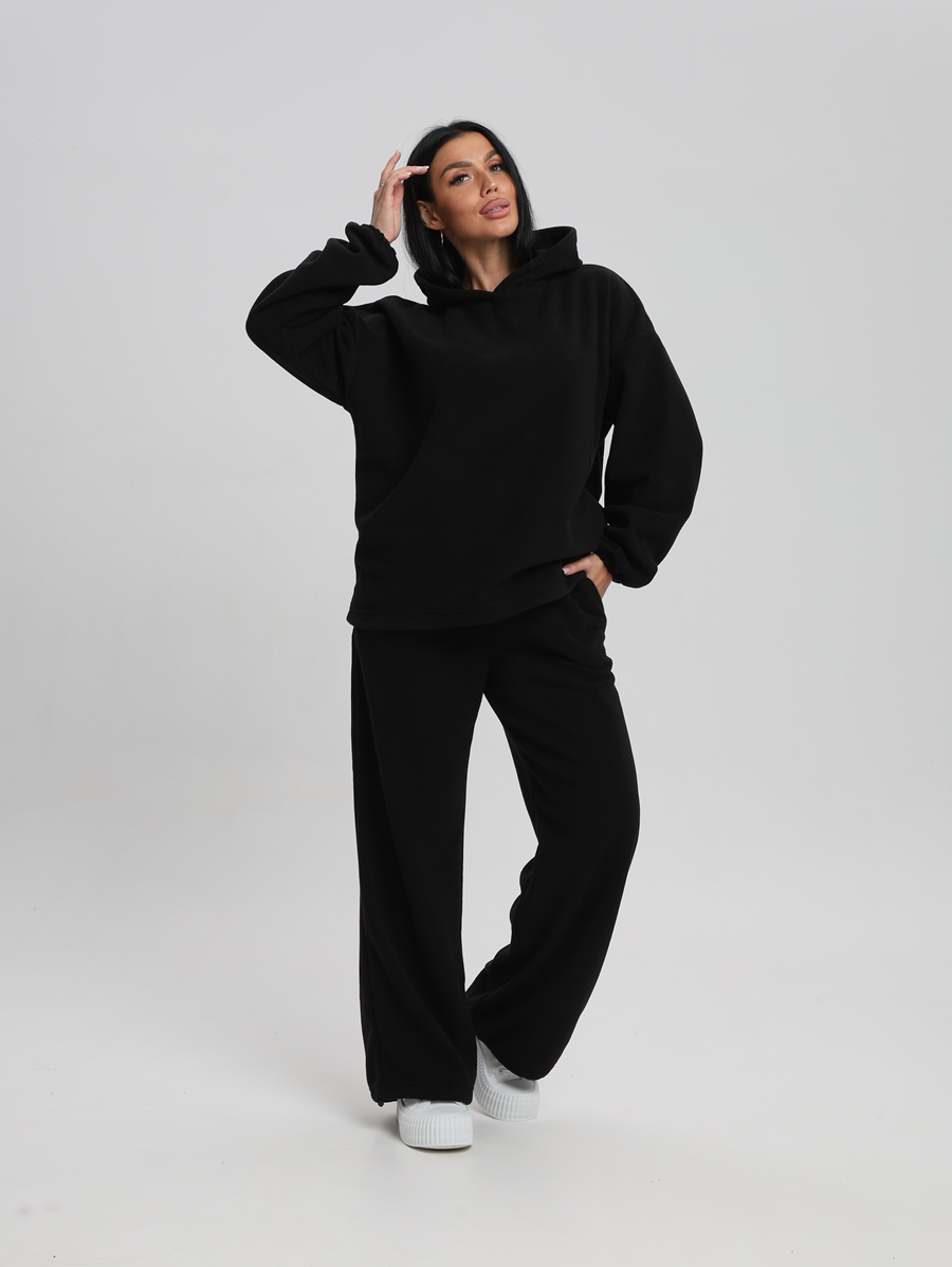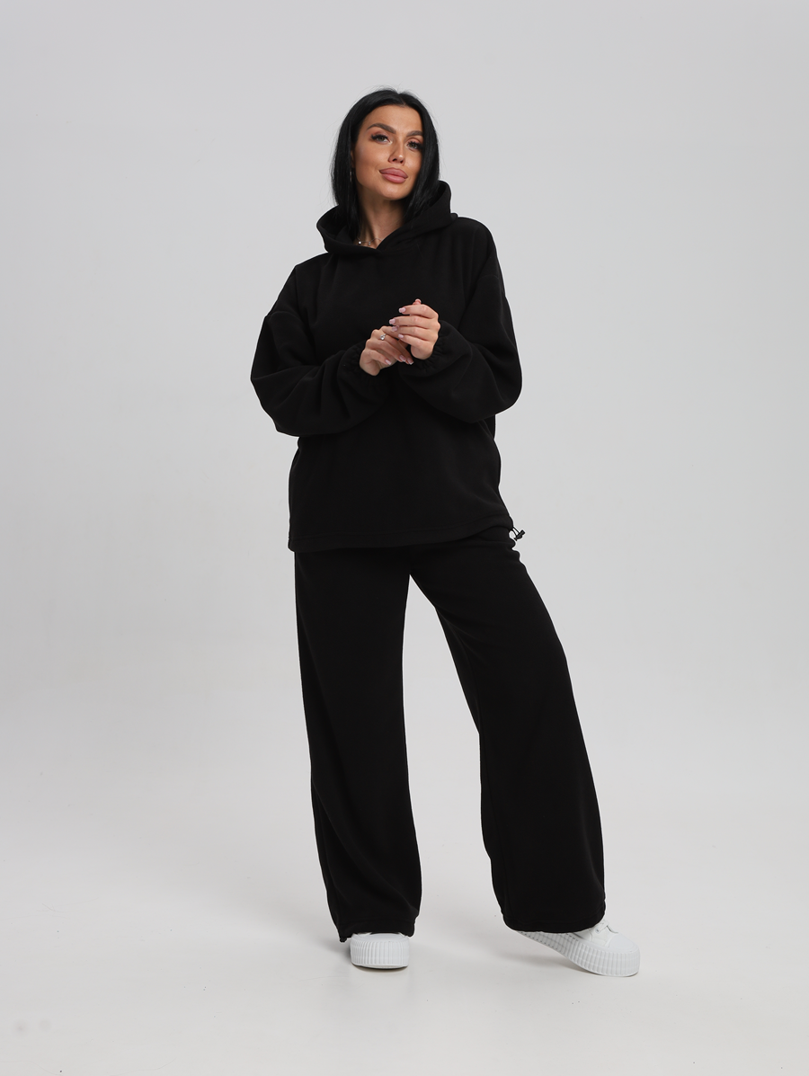 Этот костюм идеально впишется в ваш гардероб для активного отдыха и повседневных прогулок. Все элементы продукта выполнены из 100% полиэстера, что обеспечивает легкость и комфорт в носке. Материал без утеплителя и подкладки позволяет чувствовать себя свободно даже при длительном ношении. Изготовленный из флиса, он мягок на ощупь и приятен к телу, а капюшон добавляет дополнительную защиту от ветра. Модель без застежки легко надевается и снимается, что особенно удобно для будущих мам. Быстросохнущая ткань подходит для активностей на свежем воздухе. Высоко оценимая эластичность материала дарит свободу движений, сохраняя форму изделия после многочисленных стирок. Свободный крой делает его комфортным варианта для высоких женщин или обладательниц больших размеров. Никакие узоры здесь не отвлекают внимание от основного — вашего личного стиля и образа жизни. Худи женское оверсайз с капюшоном и мягкой резинкой на рукавах, капюшон с подкладкой из хлопка, по низу худи шляпная резинка с фиксатором, брюки женские с высокой посадкой на резинке прямого кроя с прорезными карманами по низу брюк шляпная резинка с фиксатором.