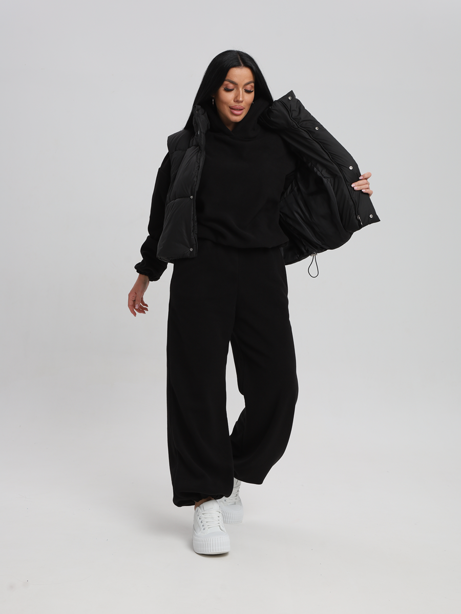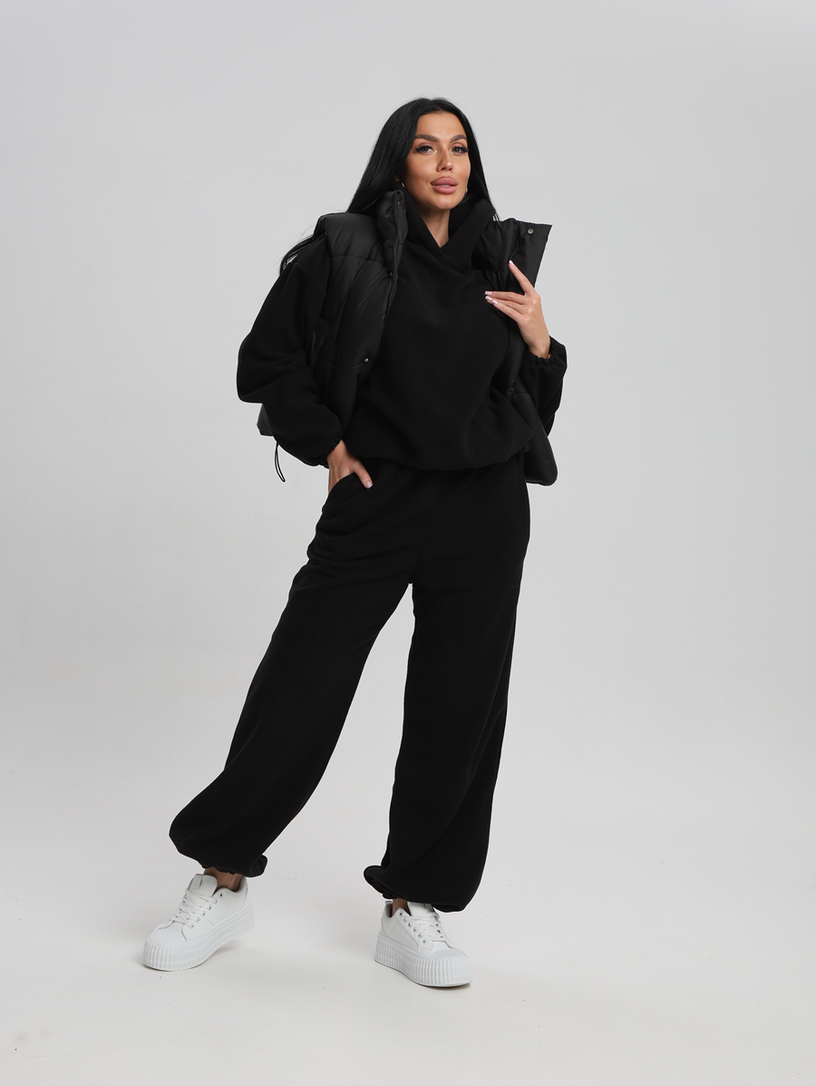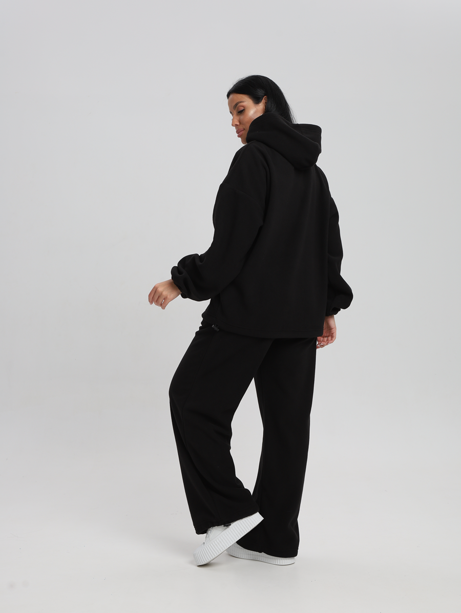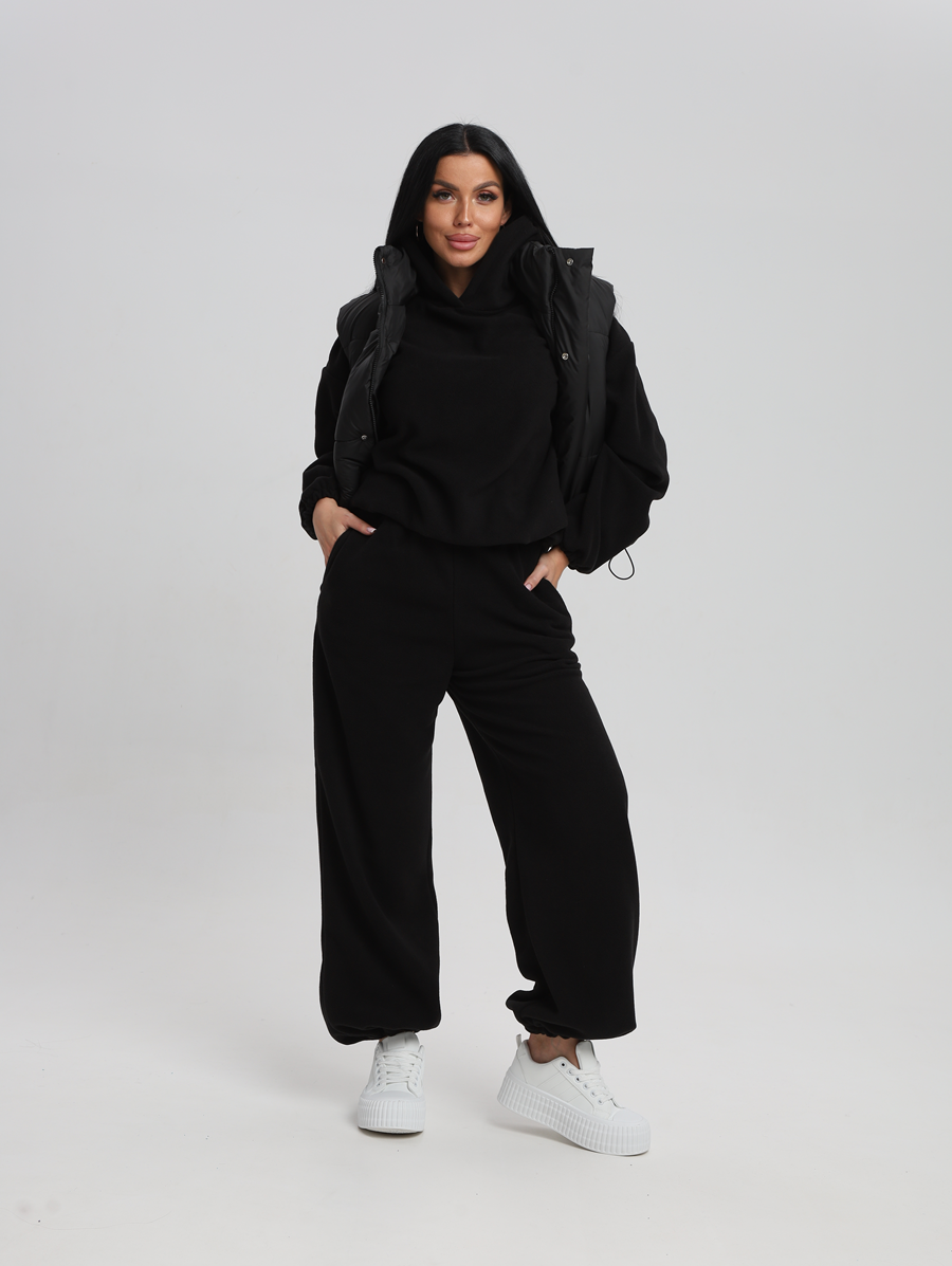 Этот костюм идеально впишется в ваш гардероб для активного отдыха и повседневных прогулок. Все элементы продукта выполнены из 100% полиэстера, что обеспечивает легкость и комфорт в носке. Материал без утеплителя и подкладки позволяет чувствовать себя свободно даже при длительном ношении. Изготовленный из флиса, он мягок на ощупь и приятен к телу, а капюшон добавляет дополнительную защиту от ветра. Модель без застежки легко надевается и снимается, что особенно удобно для будущих мам. Быстросохнущая ткань подходит для активностей на свежем воздухе. Высоко оценимая эластичность материала дарит свободу движений, сохраняя форму изделия после многочисленных стирок. Свободный крой делает его комфортным варианта для высоких женщин или обладательниц больших размеров. Никакие узоры здесь не отвлекают внимание от основного — вашего личного стиля и образа жизни. Худи женское оверсайз с капюшоном и мягкой резинкой на рукавах, капюшон с подкладкой из хлопка, по низу худи шляпная резинка с фиксатором, брюки женские с высокой посадкой на резинке прямого кроя с прорезными карманами по низу брюк шляпная резинка с фиксатором.