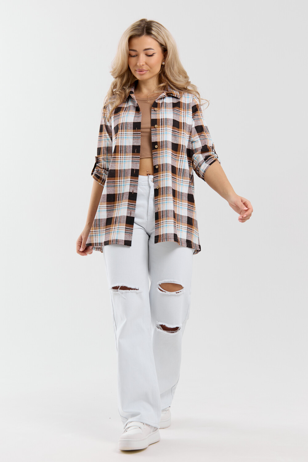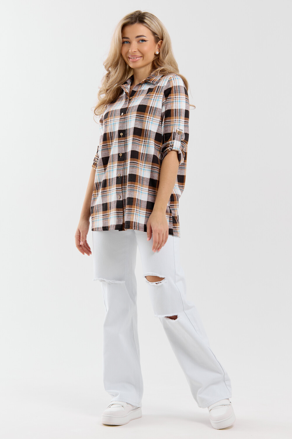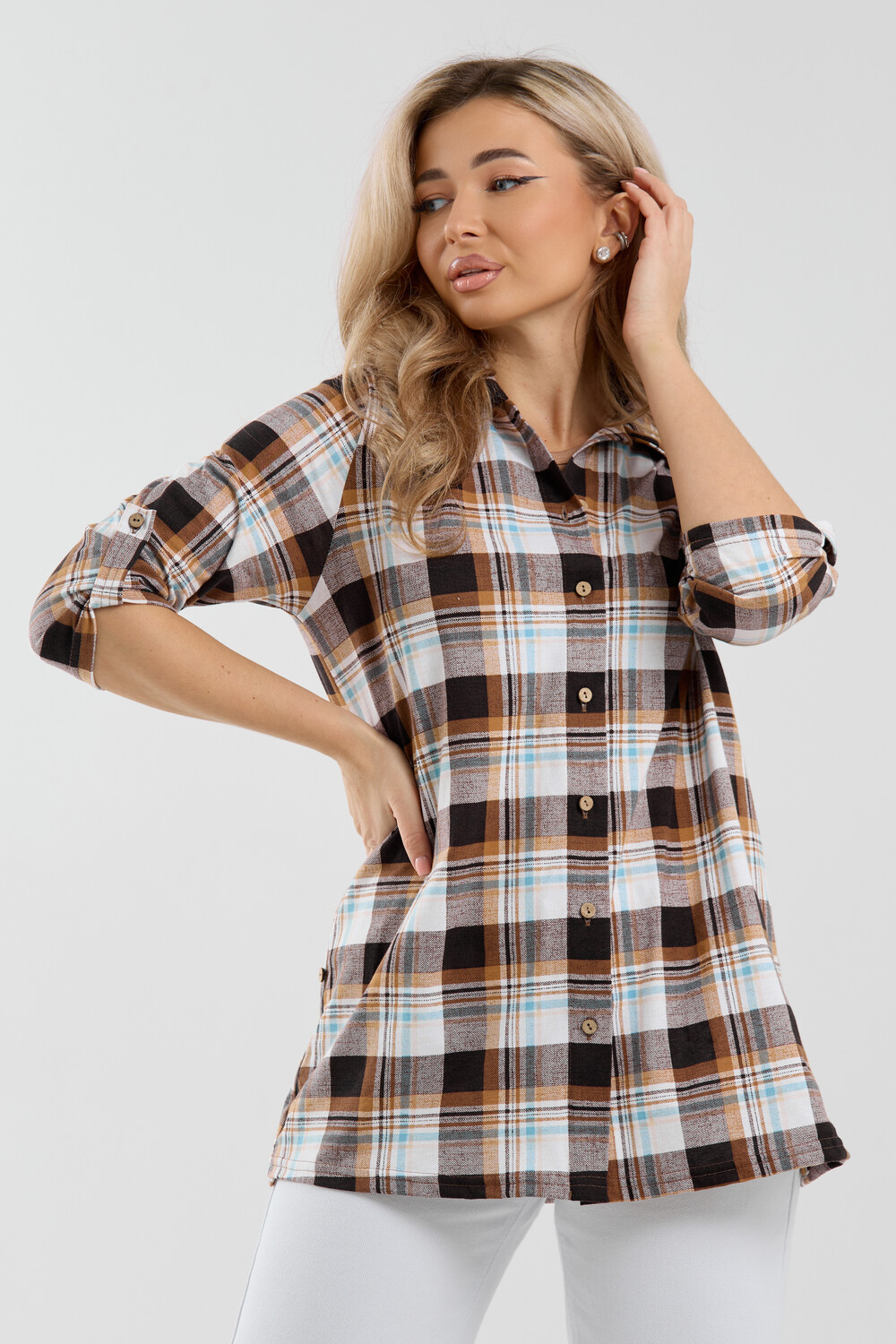 Женская стильная туника - рубашка выполнена из 100% хлопчатобумажного полотна. Новый дизайн и отличное качество делает изделие модным, легким и приятным на ощупь, не сковывает движения, поэтому отлично подойдет как для школы, дома и работы, так и для повседневной носки. Модель дополняет рубашечный воротник, паты и планка с расстёгивающимися пуговицами, делая её более комфортной. Женская свободная рубашка не сковывает движения, поэтому отлично подойдет будущим мамам, беременным женщинам и кормящим. Расстёгивающаяся планка сделает кормление малыша удобным и комфортным, а за счет качественного хлопкового трикотажа еще и безопасным и экологичным. Мы специально разработали рубашку для женщин большого размера. Большие размеры любят и подростки, которые предпочитают вещи оверсайз (oversize). Рубашка женская - это базовая вещь в гардеробе девушки или женщины, является идеальным вариантом для офиса, работы, школы и путешествий. Удлиненную рубашку можно носить дома и в качестве повседневной одежды.