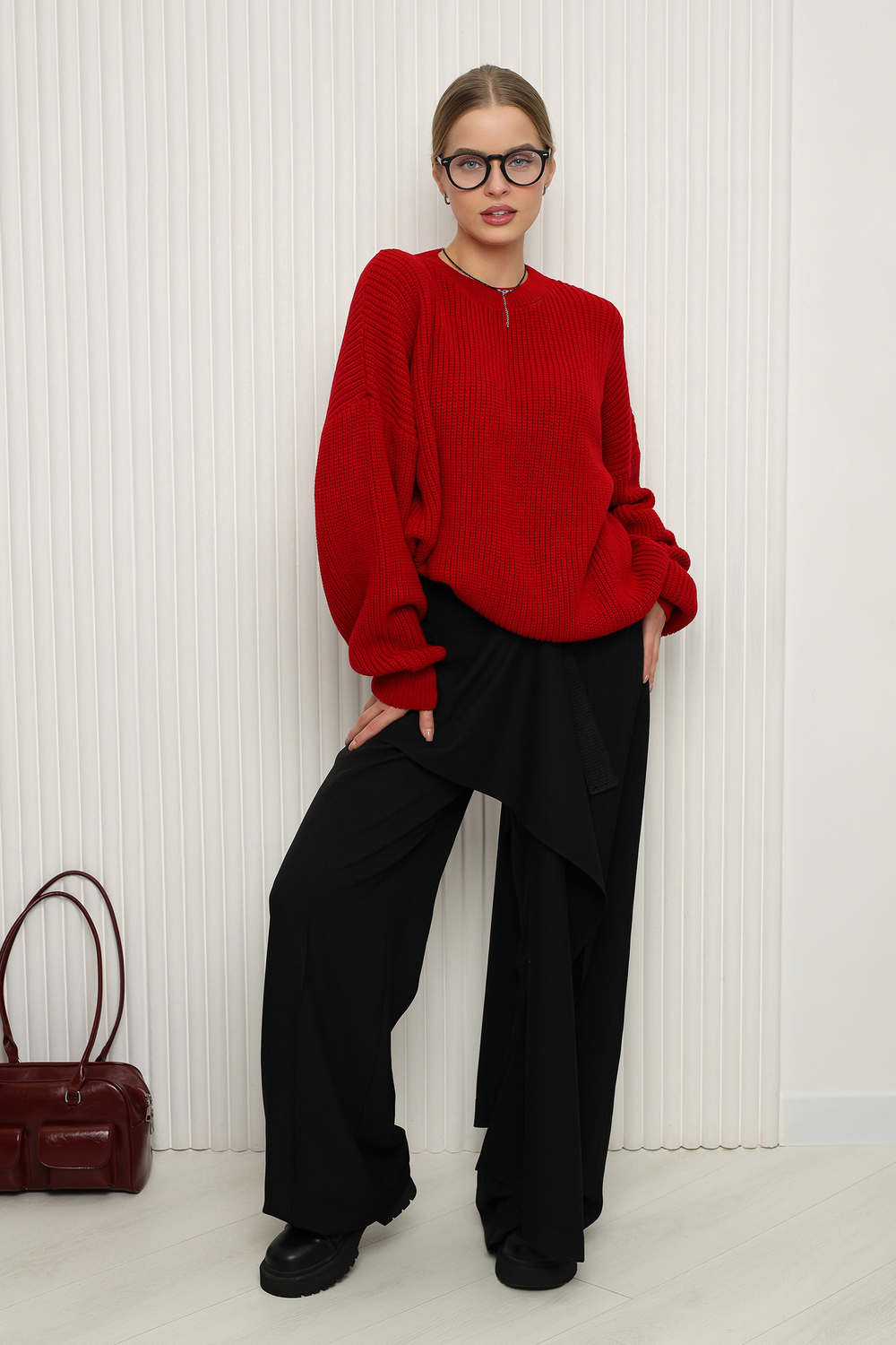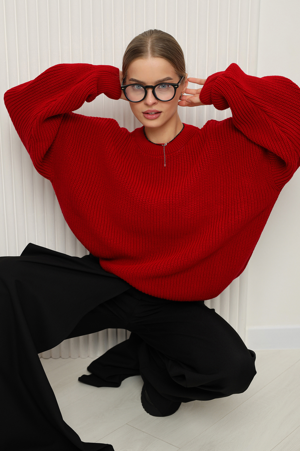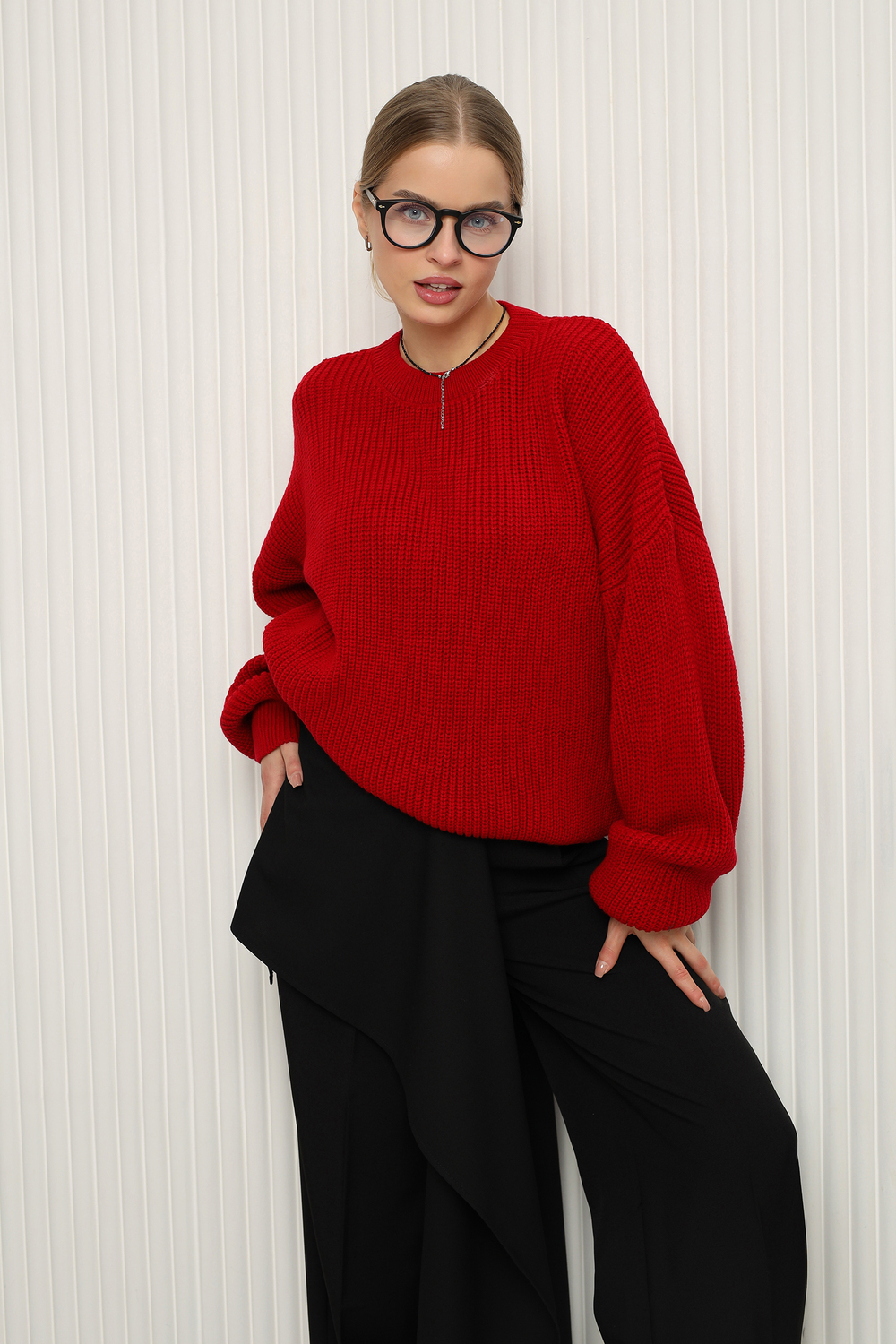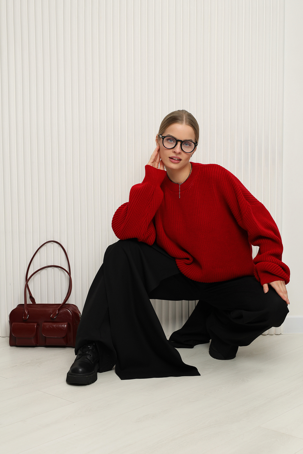 Обалденный свитер. Цвет не совсем такой как в карточке товара. Он бордово-красный. Очень благородный цвет. Когда забирала думала будет старить, ничего подобного, смотрится шикарно. На 50 размер достаточно свободный. на рост 168 длина отлично, не коротко.