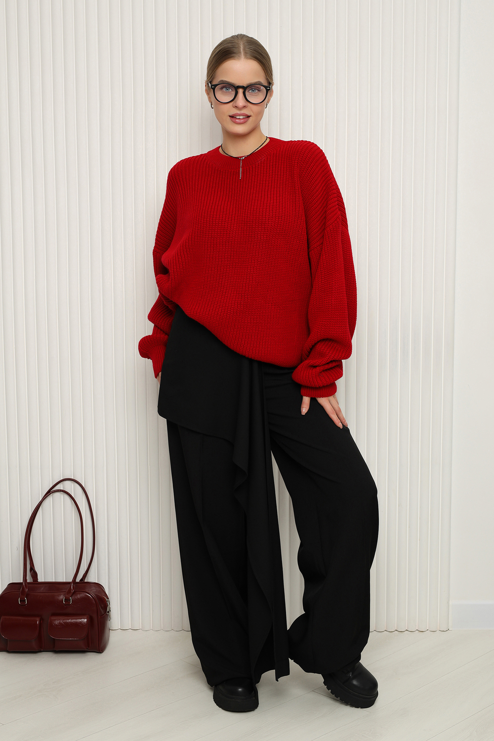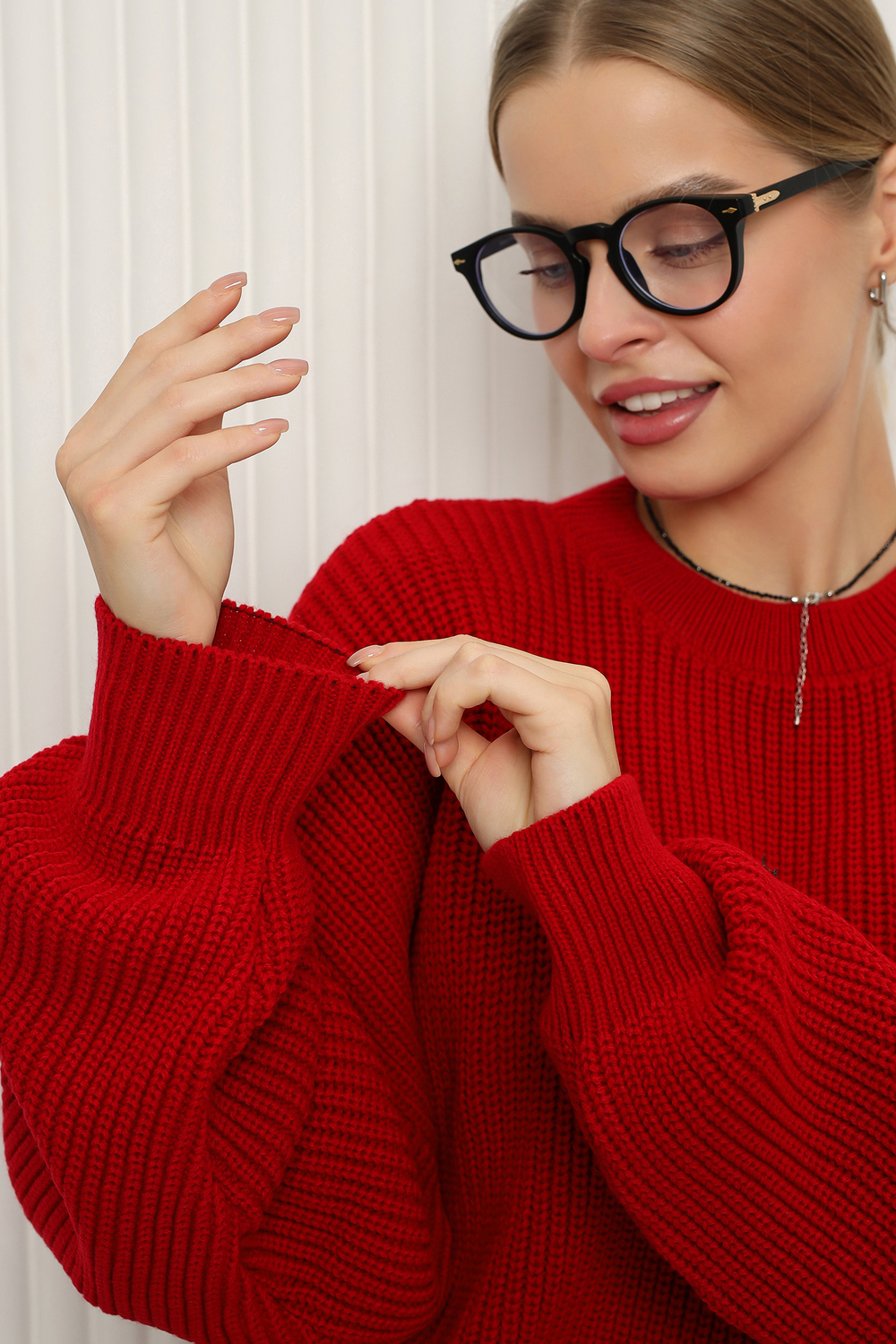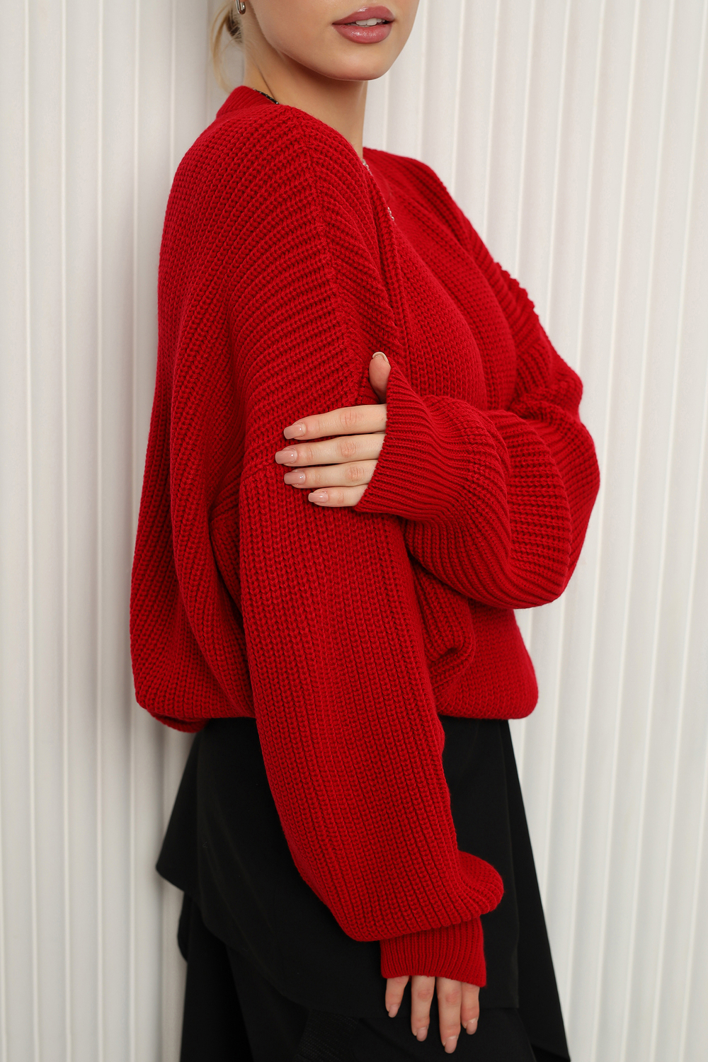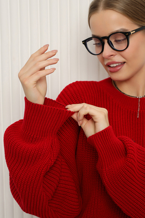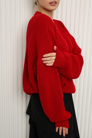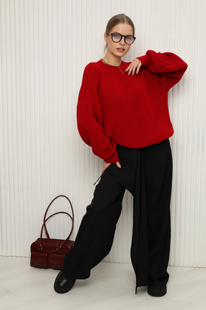 Обалденный свитер. Цвет не совсем такой как в карточке товара. Он бордово-красный. Очень благородный цвет. Когда забирала думала будет старить, ничего подобного, смотрится шикарно. На 50 размер достаточно свободный. на рост 168 длина отлично, не коротко.