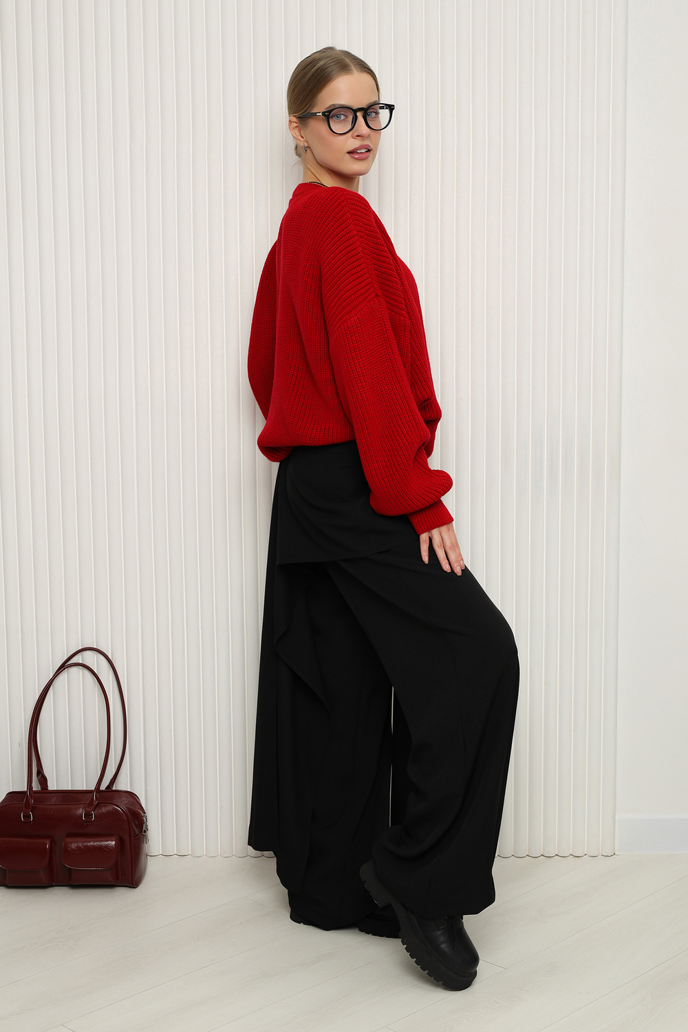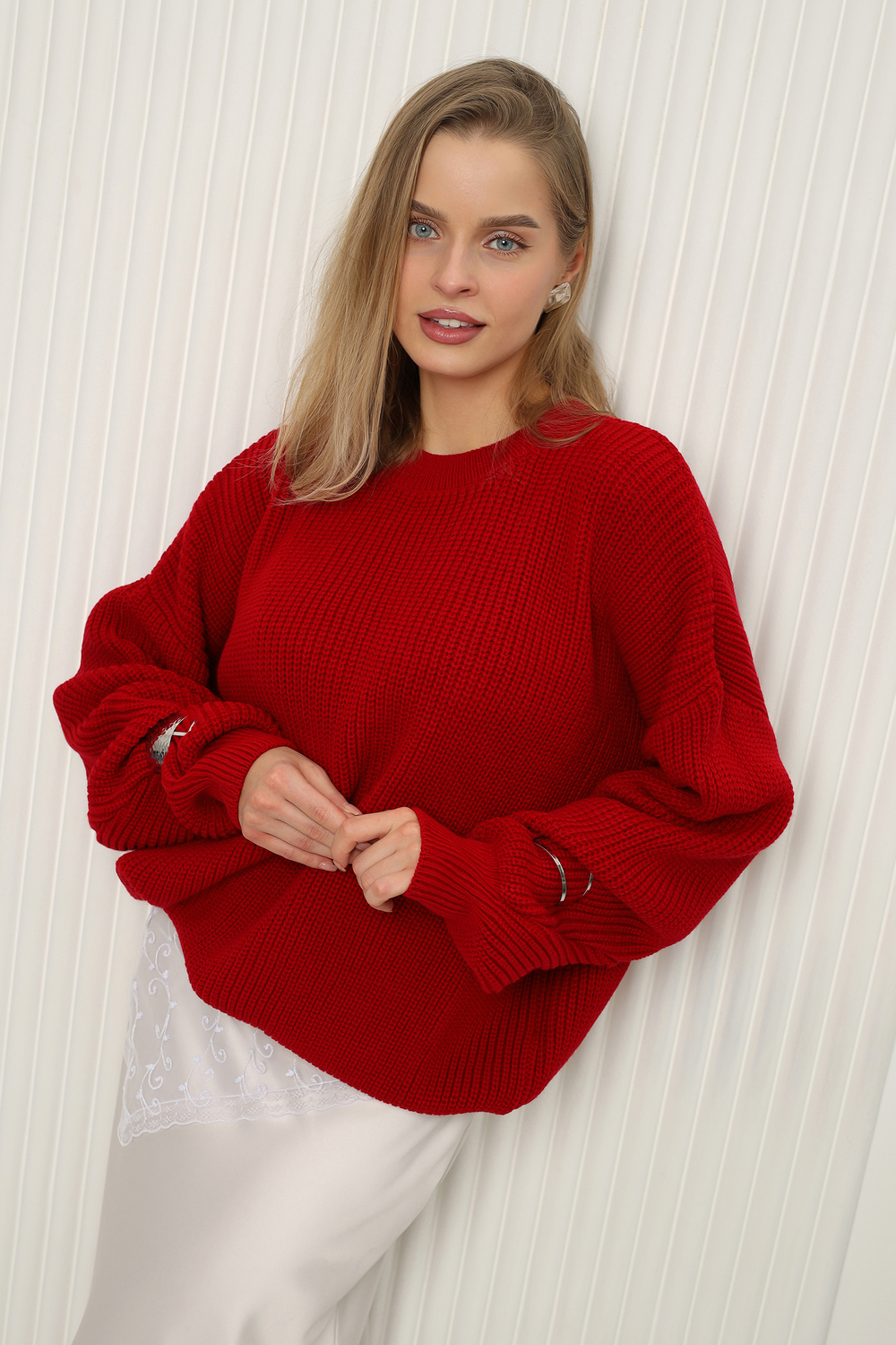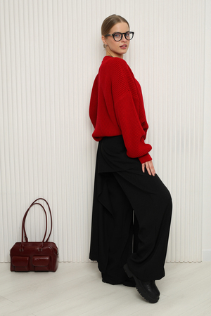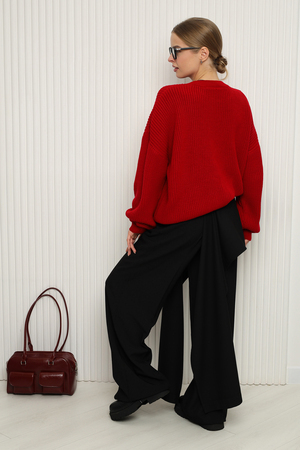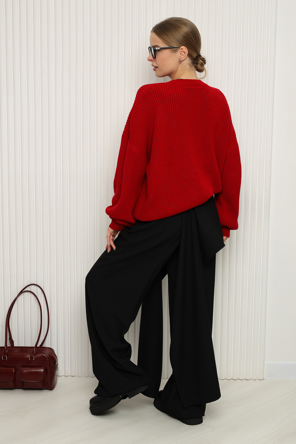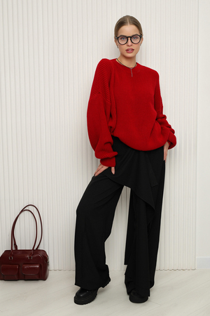 Обалденный свитер. Цвет не совсем такой как в карточке товара. Он бордово-красный. Очень благородный цвет. Когда забирала думала будет старить, ничего подобного, смотрится шикарно. На 50 размер достаточно свободный. на рост 168 длина отлично, не коротко.