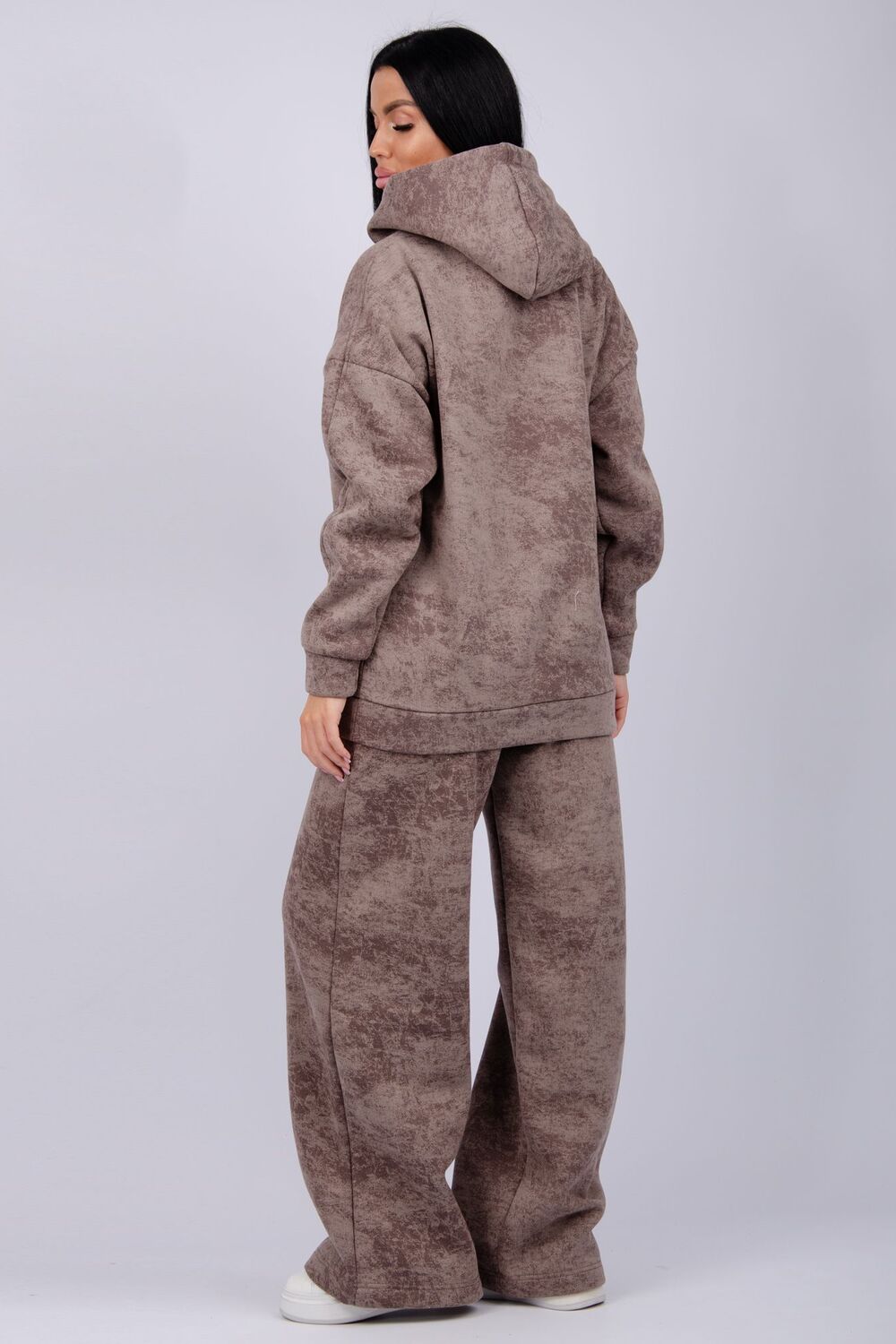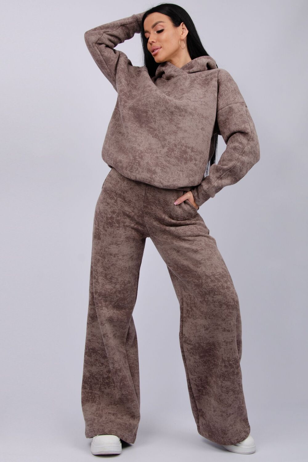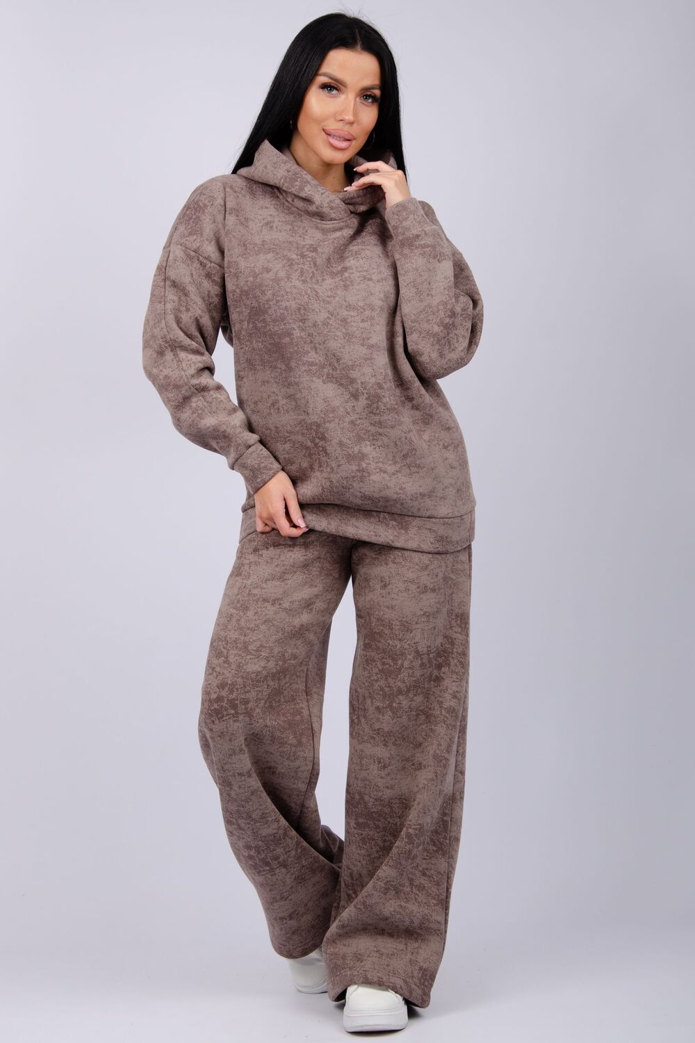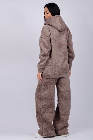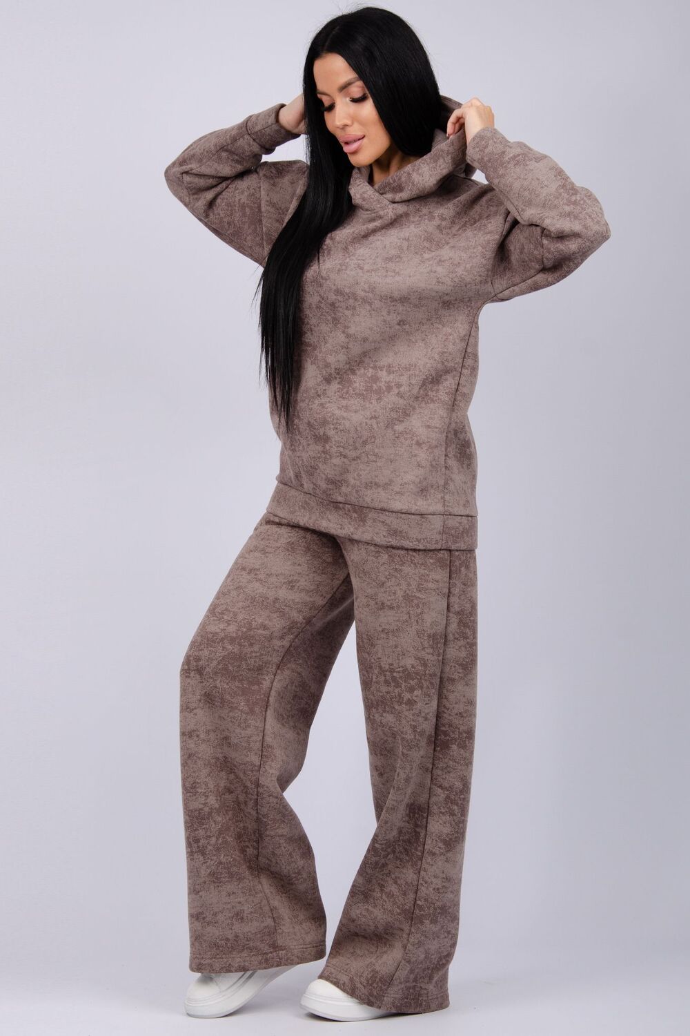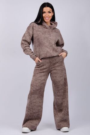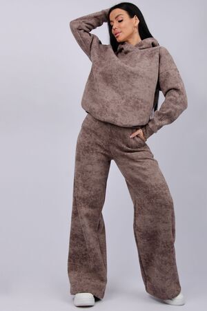 Теплый женский спортивный костюм из плотного футера, который выполнен из 3-х ниточного трикотажного полотна с начесом. Утепленное худи прямого силуэта с втачным спущенным рукавом и капюшоном, брюки палаццо на резинке свободного кроя подходит для прогулок и занятия спортом в прохладную погоду. Благодаря натуральному составу ткани, костюм спортивный весенний прекрасно подходит для прохладной погоды, он выполнен из мягкого хлопка с лицевой стороны и с начесом внутри.