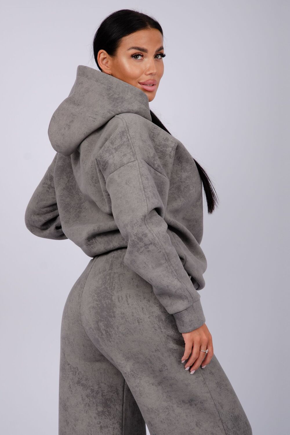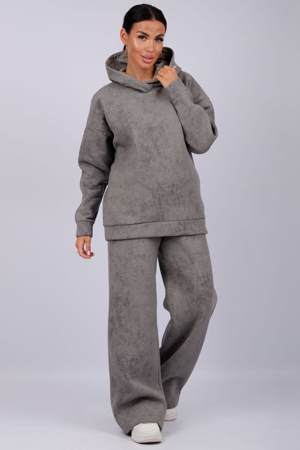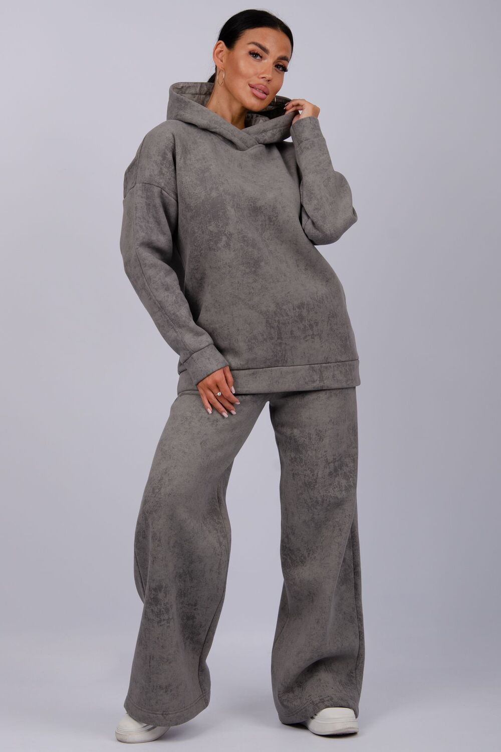 Теплый женский спортивный костюм из плотного футера, который выполнен из 3-х ниточного трикотажного полотна с начесом. Утепленное худи прямого силуэта с втачным спущенным рукавом и капюшоном, брюки палаццо на резинке свободного кроя подходит для прогулок и занятия спортом в прохладную погоду. Благодаря натуральному составу ткани, костюм спортивный весенний прекрасно подходит для прохладной погоды, он выполнен из мягкого хлопка с лицевой стороны и с начесом внутри.