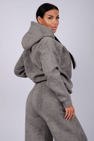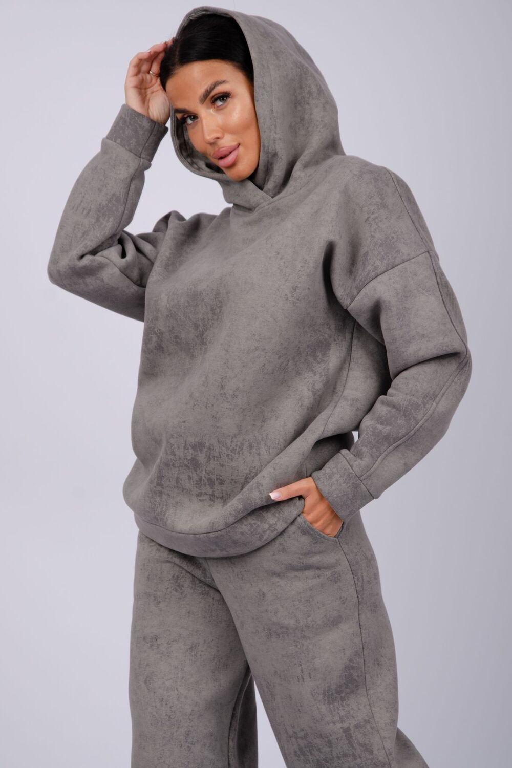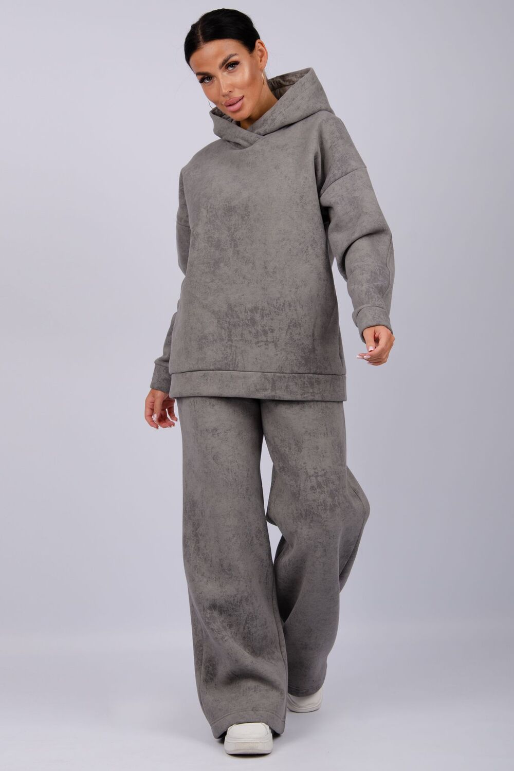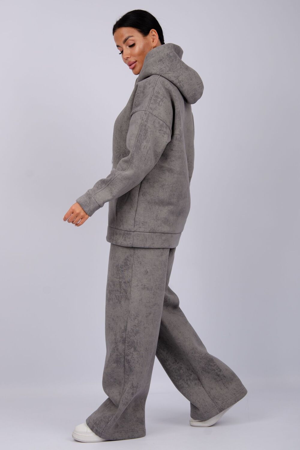 Теплый женский спортивный костюм из плотного футера, который выполнен из 3-х ниточного трикотажного полотна с начесом. Утепленное худи прямого силуэта с втачным спущенным рукавом и капюшоном, брюки палаццо на резинке свободного кроя подходит для прогулок и занятия спортом в прохладную погоду. Благодаря натуральному составу ткани, костюм спортивный весенний прекрасно подходит для прохладной погоды, он выполнен из мягкого хлопка с лицевой стороны и с начесом внутри.