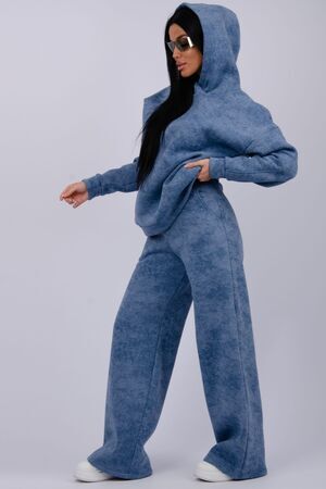 Теплый женский спортивный костюм из плотного футера, который выполнен из 3-х ниточного трикотажного полотна с начесом. Утепленное худи прямого силуэта с втачным спущенным рукавом и капюшоном, брюки палаццо на резинке свободного кроя подходит для прогулок и занятия спортом в прохладную погоду. Благодаря натуральному составу ткани, костюм спортивный весенний прекрасно подходит для прохладной погоды, он выполнен из мягкого хлопка с лицевой стороны и с начесом внутри.
