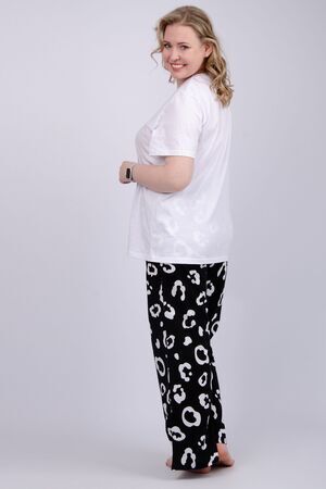 Наша пижама выполнена из мягкого и приятного на ощупь трикотажа, который обеспечивает максимальный комфорт во время сна и отдыха. Материал прекрасно дышит, не вызывает аллергии и раздражения кожи. Благодаря своей структуре он сохраняет тепло в холодное время года, и создает ощущение легкости и свежести в летнее время. Пижама представлена в нескольких размерах, включая большие, чтобы каждая женщина могла найти подходящий вариант, который подходит именно вам.
