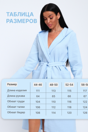Вафельный халат с капюшоном. Рукав длинный. Карманы накладные. Размерный ряд от 44/46 до 56/58. Плотность вафельного полотна 242 гр/м. Состав - 100% хлопок. При первой стирке изделие дает усадку, это нужно учесть при выборе размера! Рекомендация по уходу и эксплуатации за изделием - бережная ручная стирка при температуре не более 30 С, без отжима. Для безупречного разглаживания складок и заломов изделие должно быть влажным.
