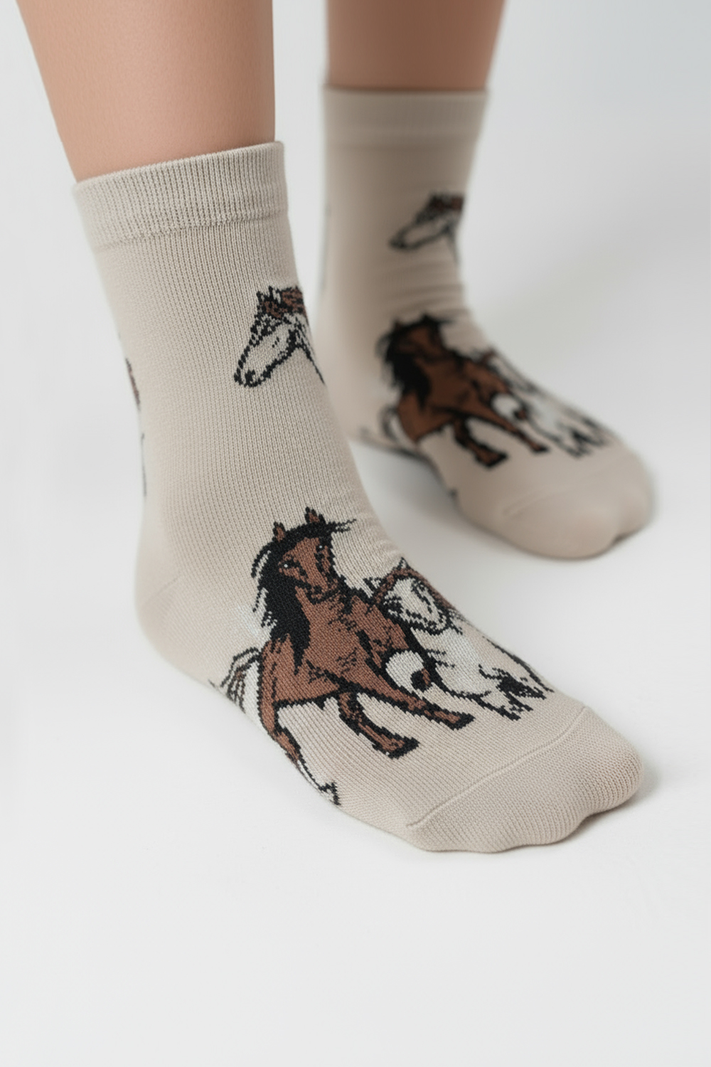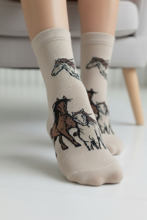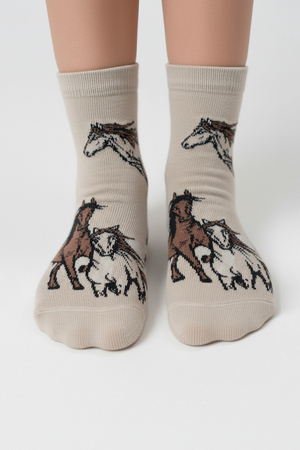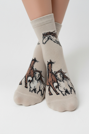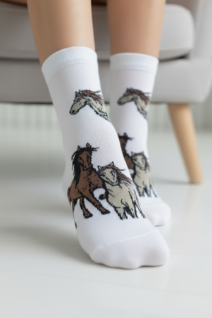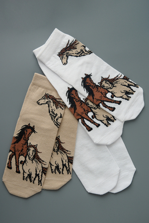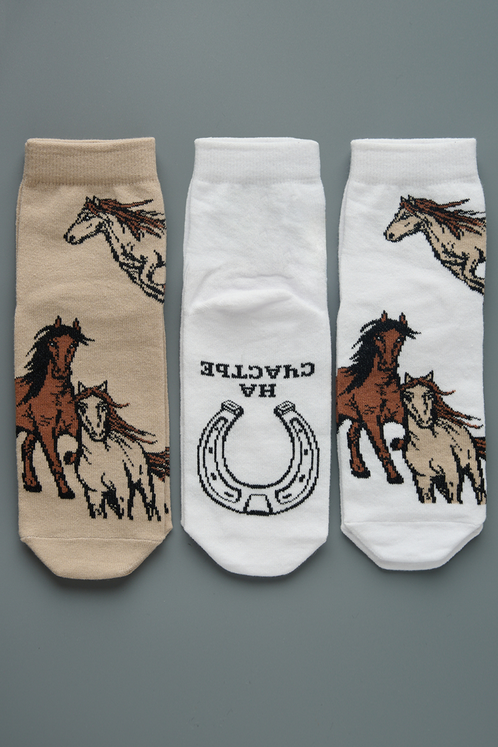 Комплект женских носков с новогодней тематикой. В наборе 3 пары разного цвета. Упаковано в подарочную коробку.