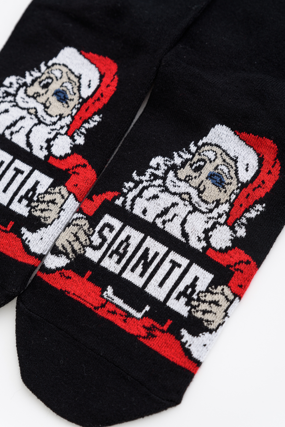 Оригинальные мужские новогодние носки. В комплекте 1 пара. На основной части носка изображение Санта Клауса и надпись "Santa".