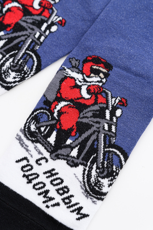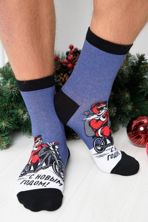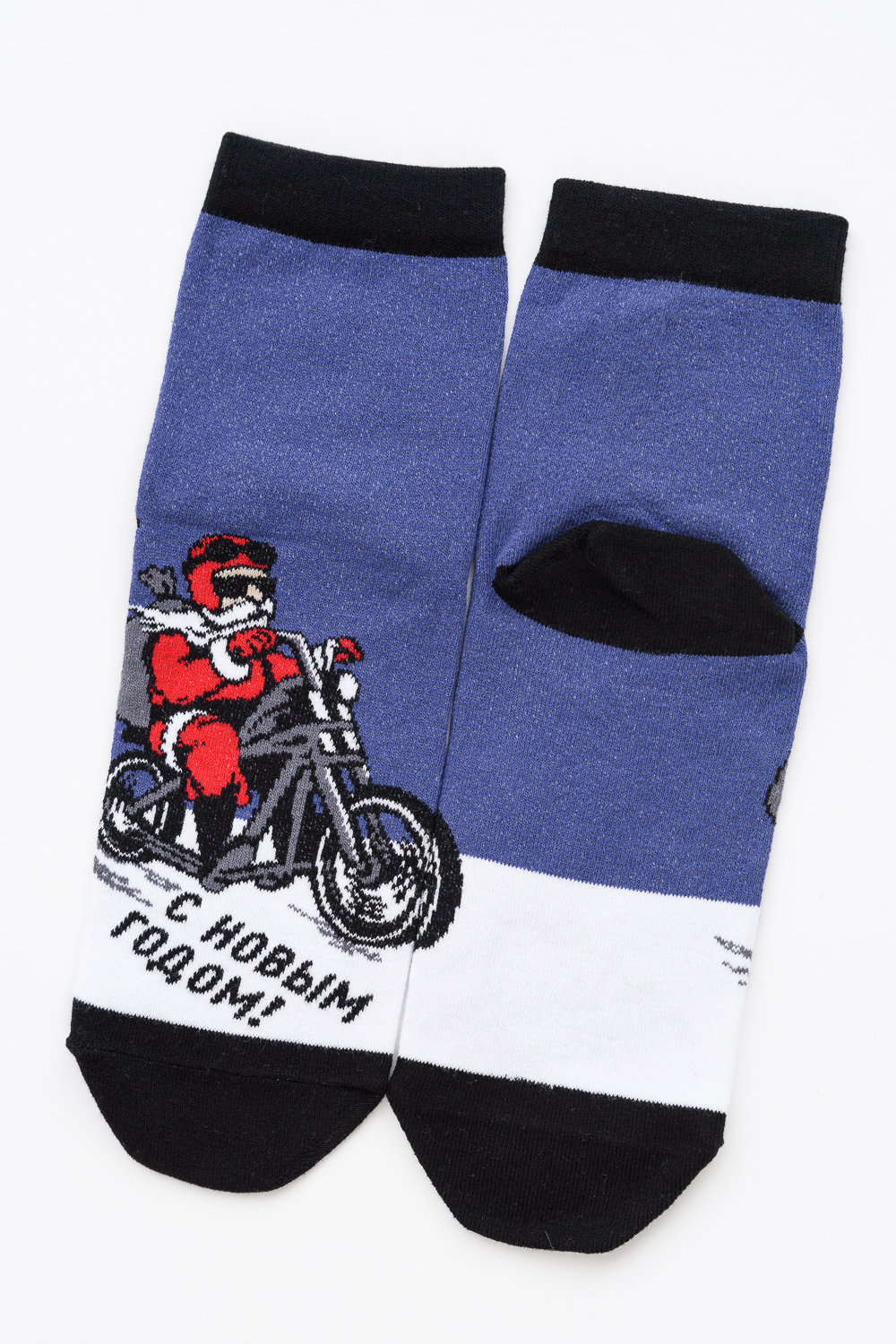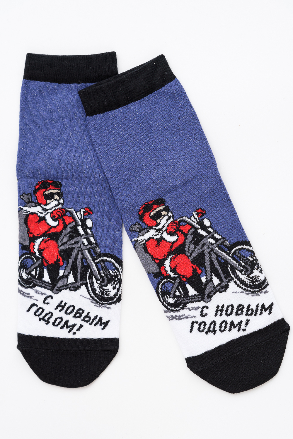 Оригинальные мужские новогодние носки. В комплекте 1 пара. На основной части носка изображение Санта Клауса и надпись "С новый годом".