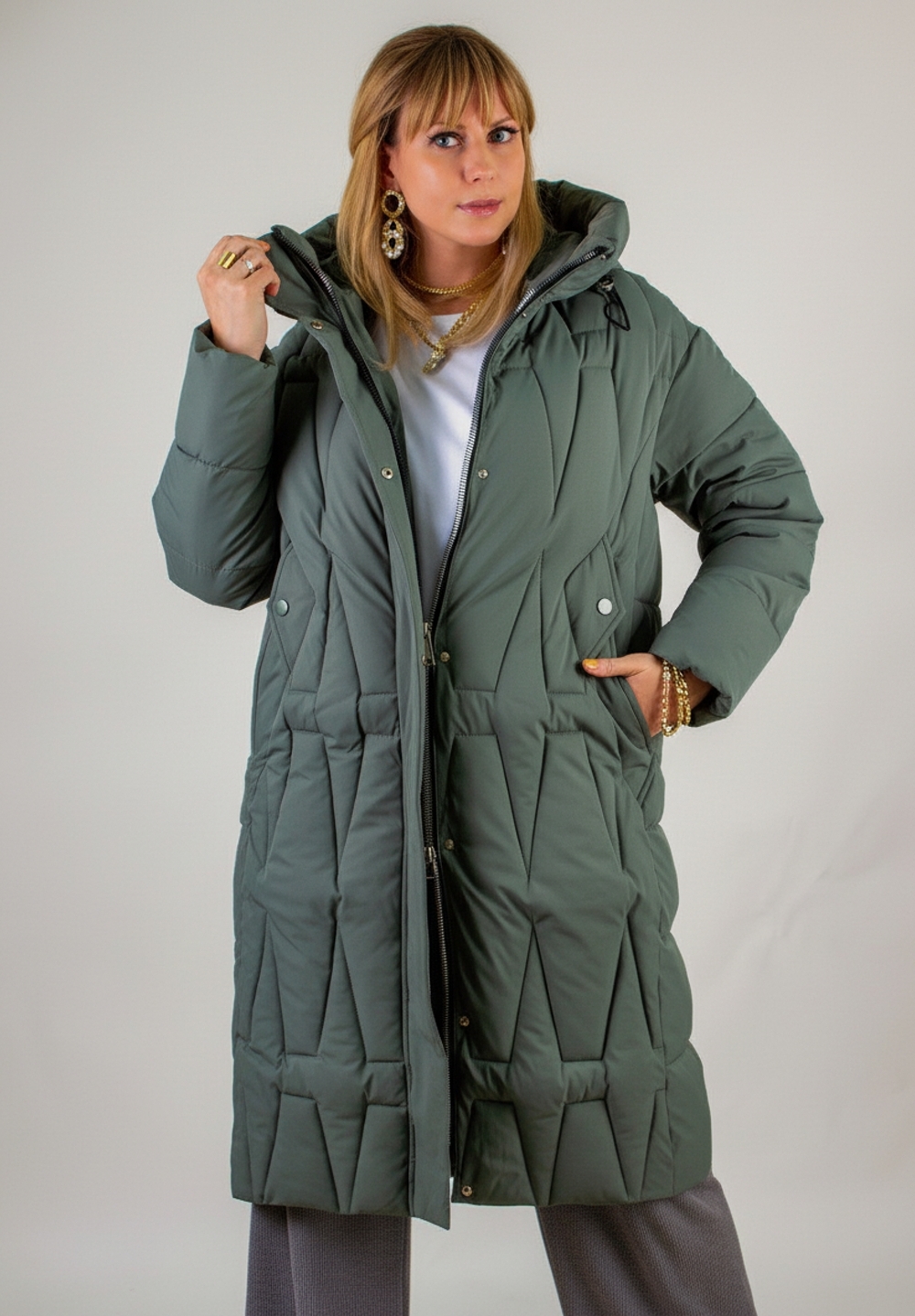 Куртка простёгана актуальным ромбовидным стежком, который обеспечивает равномерное распределение утеплителя и исключает образование холодных зон. Эластичные манжеты на рукавах надёжно удерживают тепло и не позволяют ветру проникать внутрь. Центральная двусторонняя молния легко регулируется сверху и снизу и дополнительно закрывается под ветрозащитную планку на кнопках, а глубокий тёплый капюшон с регулировкой объёма фиксируется удобными стяжками.