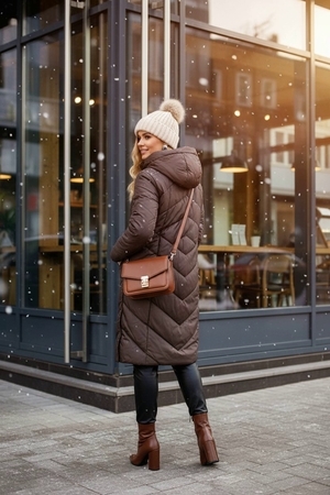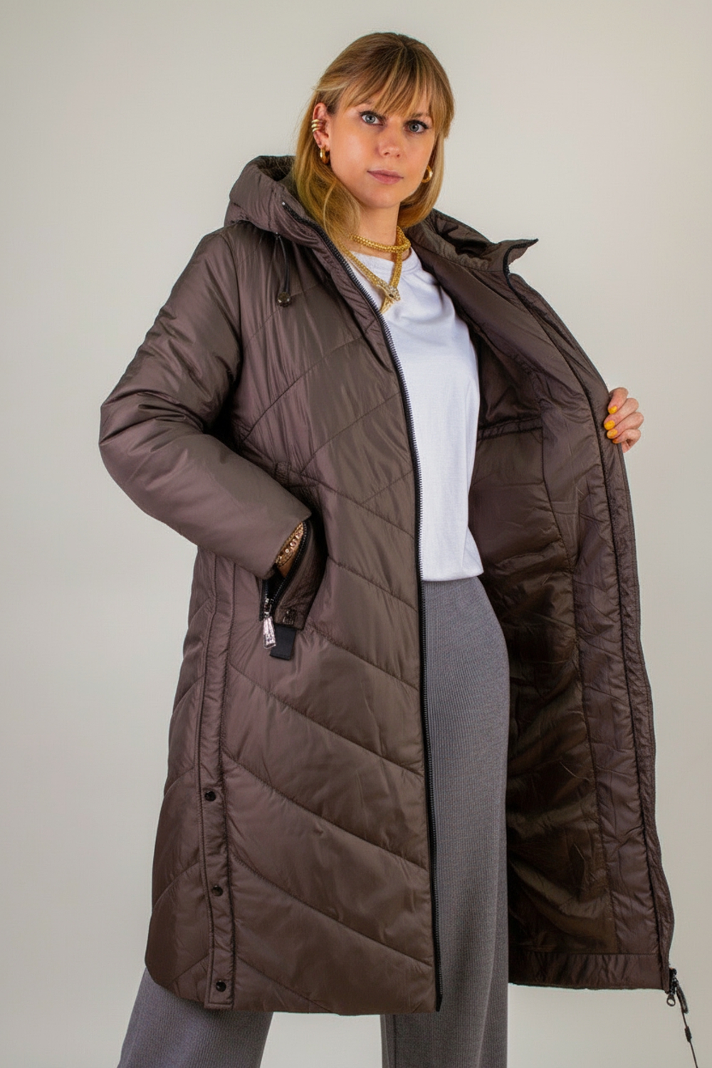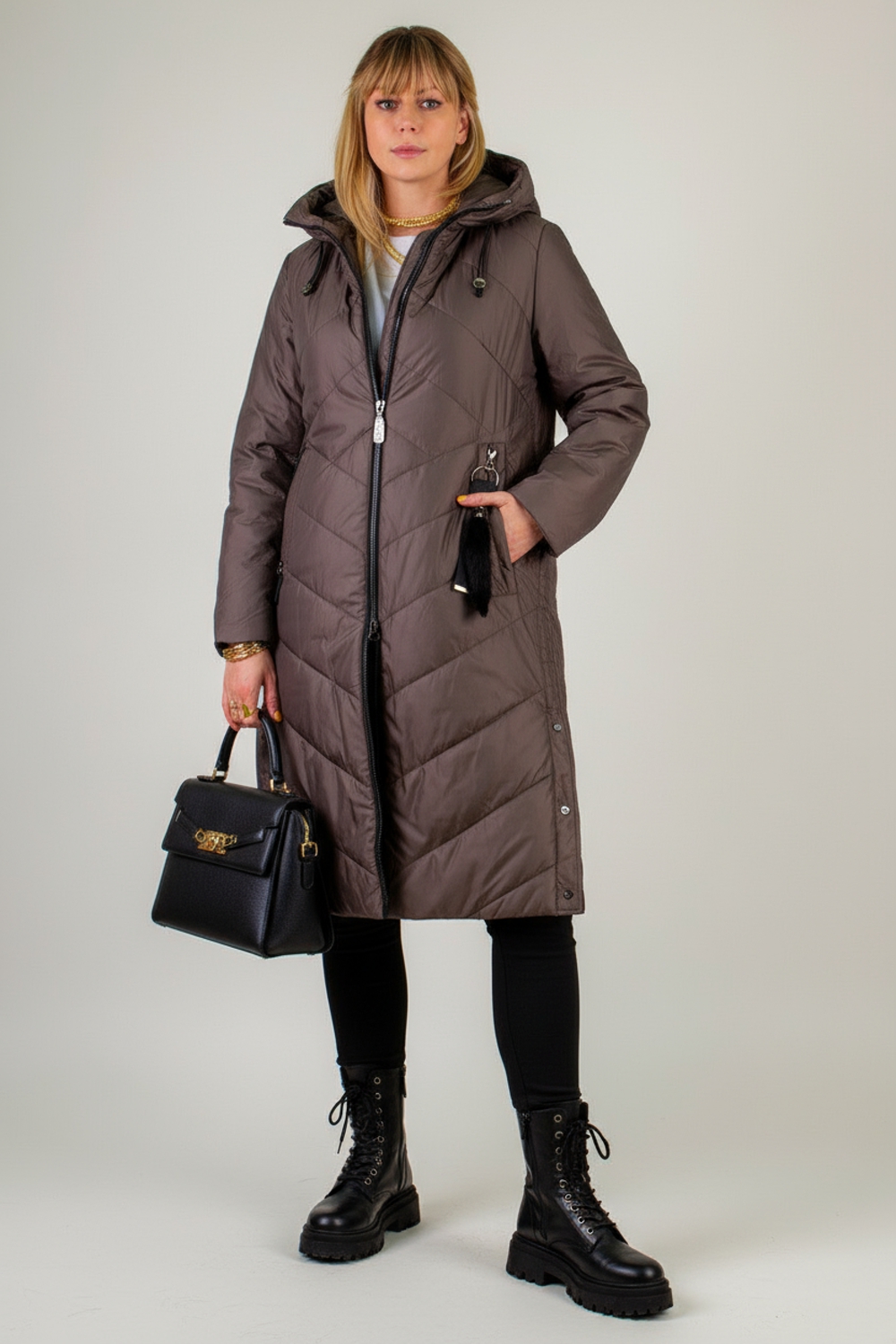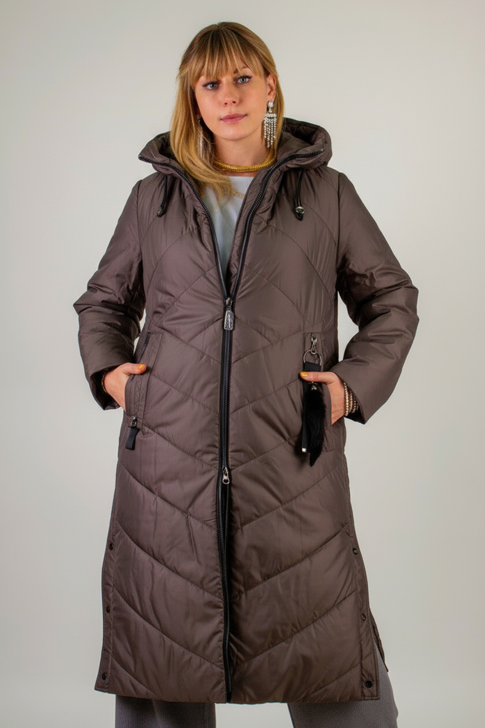 Зимняя куртка с верблюжьей шерстью арт.2285 – это идеальное сочетание утончённого стиля, тепла и продуманной функциональности. Благодаря удлинённому крою длиной 114 см изделие не только визуально стройнит силуэт, но и надёжно защищает от холодного ветра, снега и мороза. Универсальная посадка позволяет экспериментировать с образами: куртка гармонично смотрится как с классическими брюками и ботильонами, так и с джинсами и грубыми ботинками в морозную погоду.