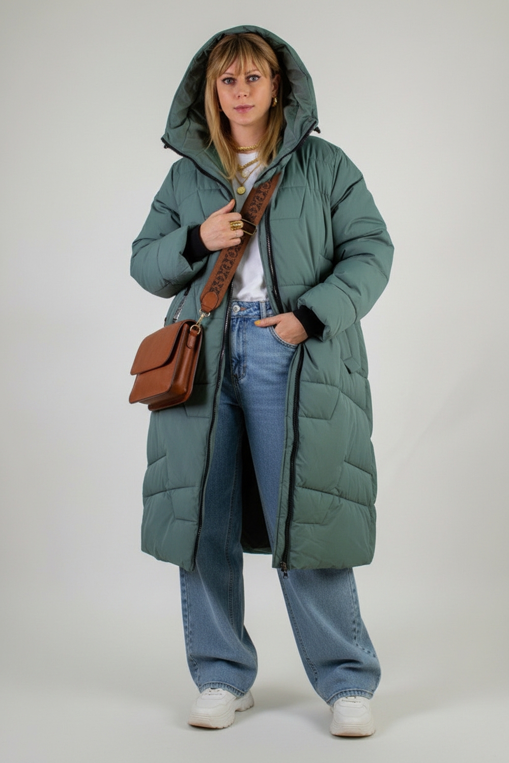Зимняя куртка удлиненная, большие размеры арт. 6679-1 – это идеальное сочетание современного дизайна, продуманного комфорта и высокого качества материалов. Модель свободного кроя опускается чуть ниже колен, создавая стильный силуэт и надежно защищая от холодного ветра и снега. Матовая плотная ткань верхнего слоя отличается повышенной износостойкостью и водоотталкивающими свойствами, при этом выглядит благородно и не бликует на солнце.