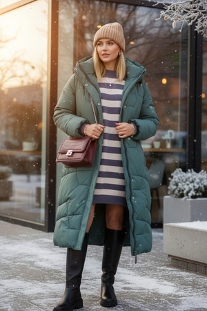Современный крой этой зимней куртки отлично смотрится с любым стилем – от casual и «спорт-шик» до городского smart-casual. В сочетании с высокими сапогами или грубыми ботинками она дополнит любой образ, а приглушенная цветовая гамма подчеркнет вашу утонченность. Легкость утеплителя и продуманная конструкция не утяжеляют изделие, обеспечивая свободу движений и комфорт при долгих прогулках.