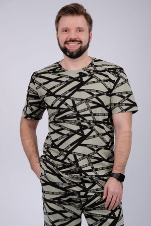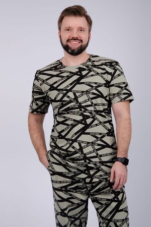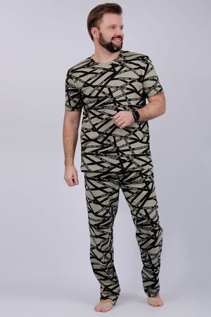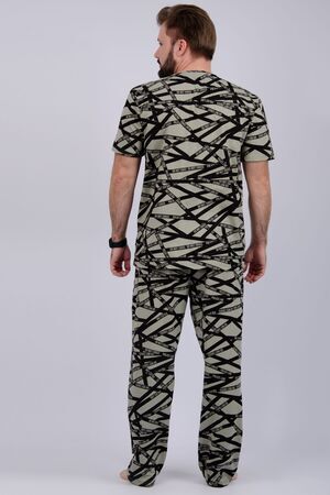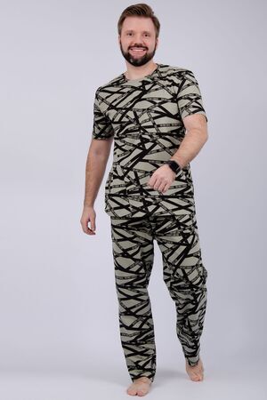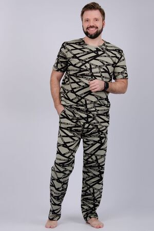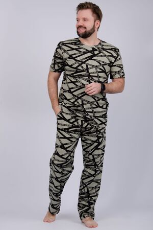 Пижама мужская: футболка прямого кроя с короткими рукавами, брюки прямые, с карманами в боковых швах.