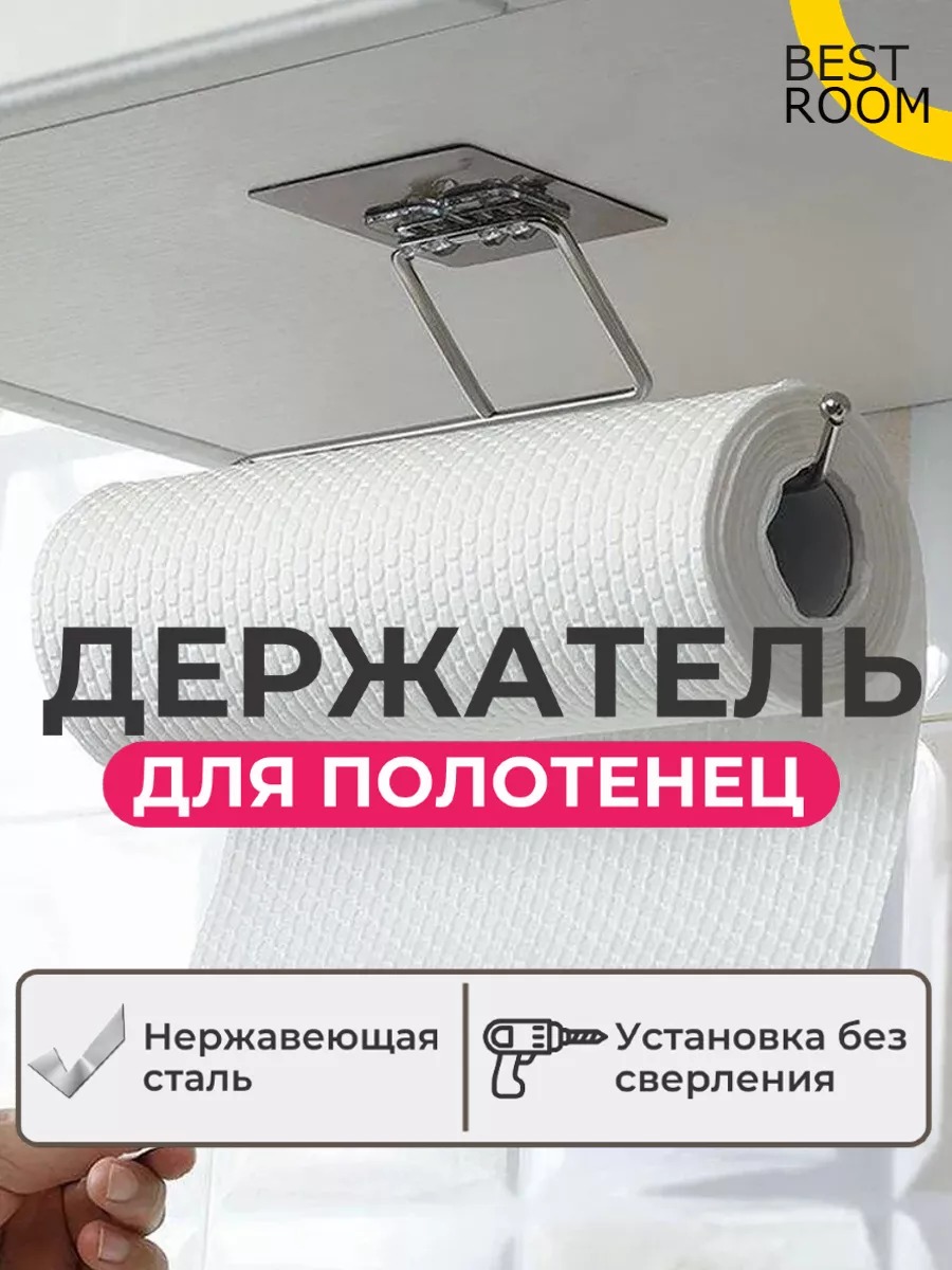 С помощью подвесного держателя вы можете разместить бумажные полотенца в удобное место под полочками или на дверцу шкафа. С ним Вы без проблем всегда можете быстро воспользоваться полотенцами: протереть поверхности стола, обсушить руки, фрукты, овощи или мясо. Вы сэкономите много времени, ведь больше не придется подолгу искать полотенца, фольгу, пленку или пергамент. Универсальный кухонный держатель вешалка выполнен из хромированной стали и предназначен для удерживания как кухонных бумажных или тканевых полотенец, так и прочих принадлежностей обихода. Крючок оснащен креплением на клейкой прозрачной ленте, чем завоевал любовь домохозяек, поскольку его монтаж и с эстетической стороны и в плане сохранения целостности не испортит поверхность на которую будет крепиться, чтобы установить его не потребуется даже помощь сильного пола, представительницы прекрасного пола справятся и сами, нужно только дополнительно очистить участок поверхности к которому будет прикреплен изящный девайс, обезжирить его, снять защитную пленку и прижать клеевую основу, тщательно пригладив, удаляя пузырьки воздуха.