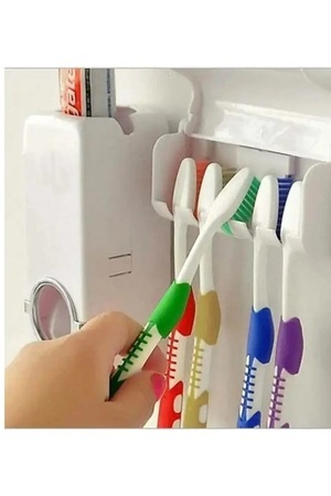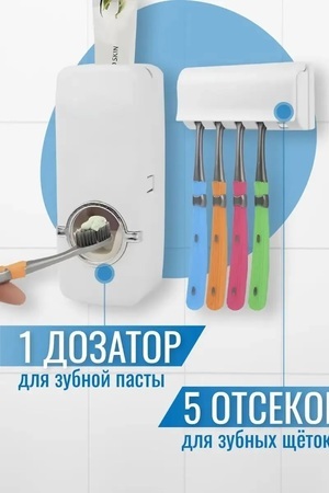 Данный дозатор для зубной пасты с держателем для щеток (в количестве до 5 штук )является настенным. Подходит для большой семьи. Набор будет идеальным дополнением для вашей ванной комнаты и сделает вашу жизнь более комфортной. Принцип работы аналогичен тому, что используется в диспенсерах для жидкого мыла. Зубные щетки находятся под крышкой, что позволяет им быстро сохнуть и быть защищенными от загрязнений. Данный распределитель делает процесс утренней гигиены увлекательной и абсолютно безопасной для маленьких детей. Он ограничивает количество пасты и выдает только столько, сколько нужно для чистки зубов. Он компактен и легко устанавливается, так как требуется всего лишь клеевое крепление, что исключает необходимость сверления или повреждения стен. Свободно разбирается и моется, когда это необходимо. Белый дизайн прост и элегантен, поэтому отлично впишется в любой интерьер.