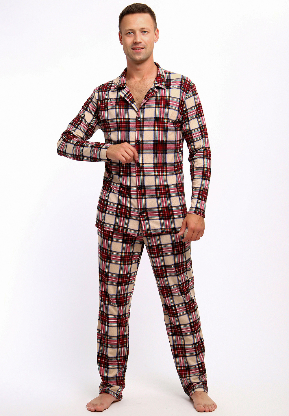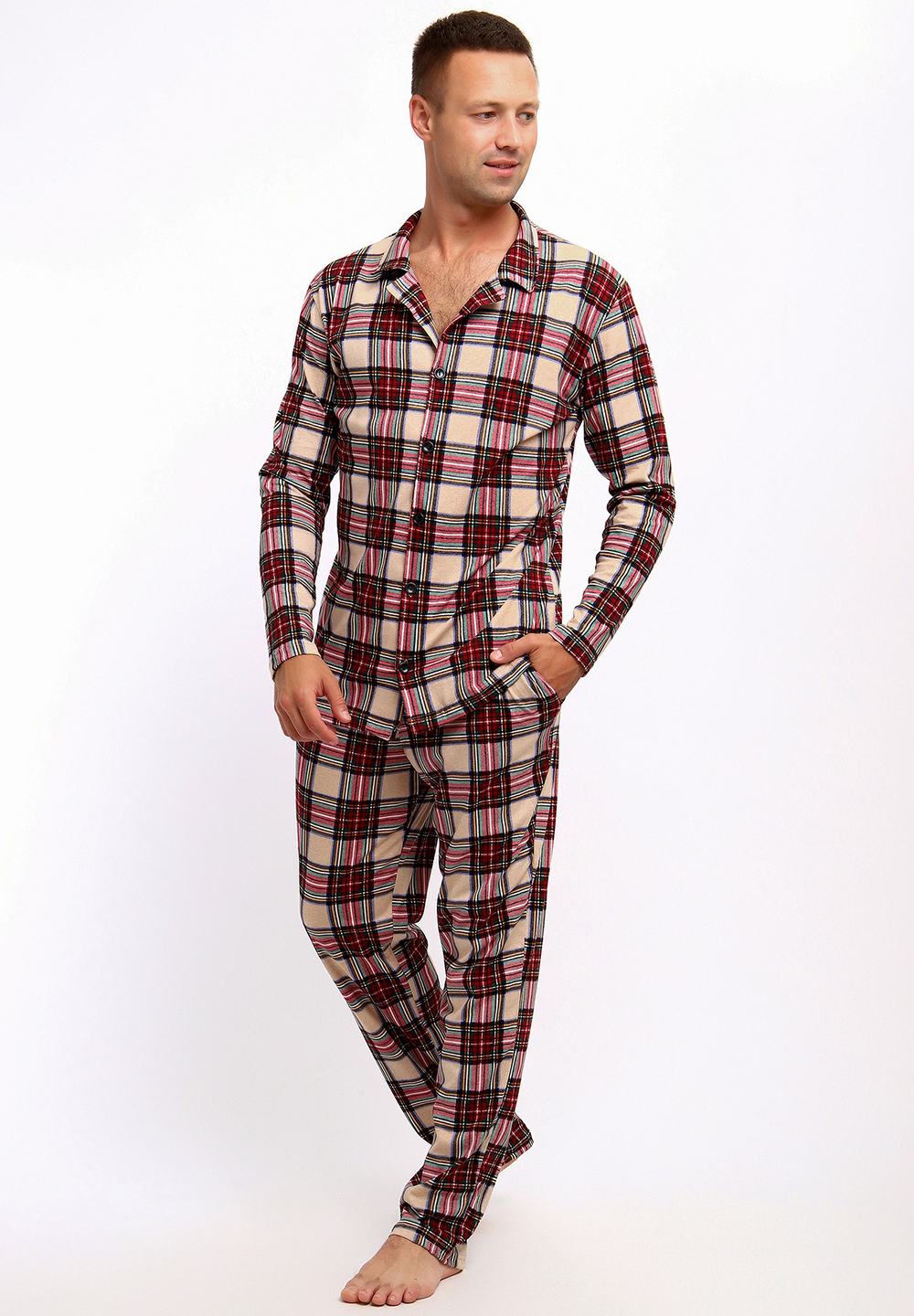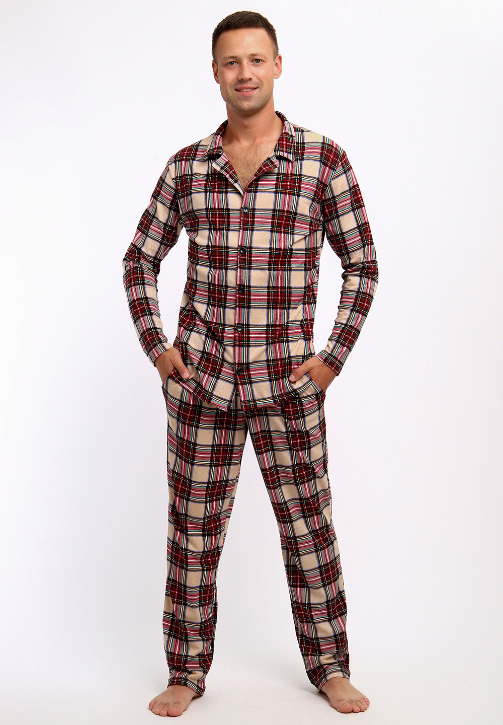 Этот мужской домашний комплект пижамы выполнен из мягкого хлопчатобумажного винтажного бежевого полотна в классическую клетку "Vintage Check". Удобный дизайн с длинным рукавом и брюками с карманами обеспечивает комфорт и практичность в повседневной носке. Идеальный выбор для уютных вечеров и спокойных выходных дома.