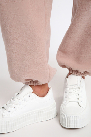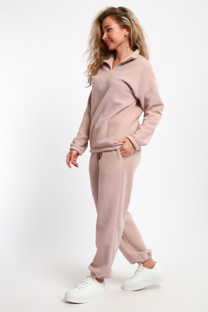 Костюм женский флисовый состоит из толстовки и брюк. Толстовка с кокеткой, на молнии, с воротником-стойкой, рукав спущенный внизу на резинке. Брюки с карманами, внизу на резинке. Костюм мягкий, теплый, удобный, идеально подойдет для прогулок и отдыха в прохладное время года. Молния может отличаться по цвету.