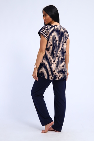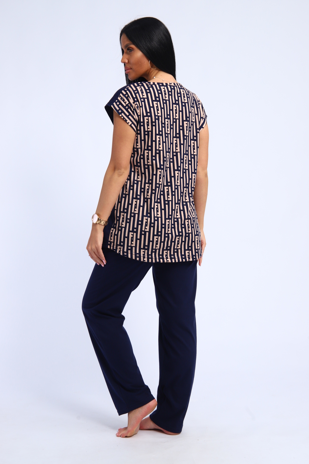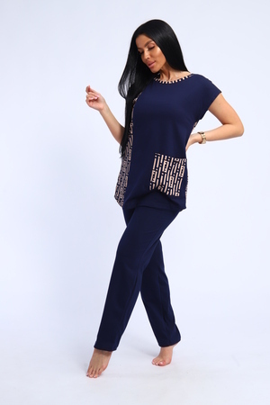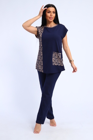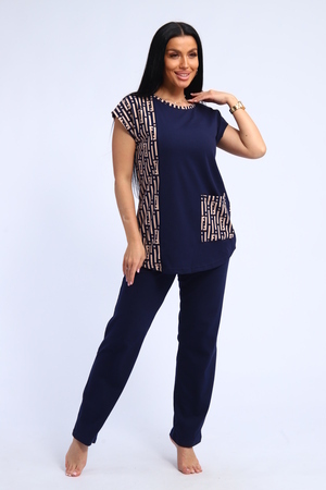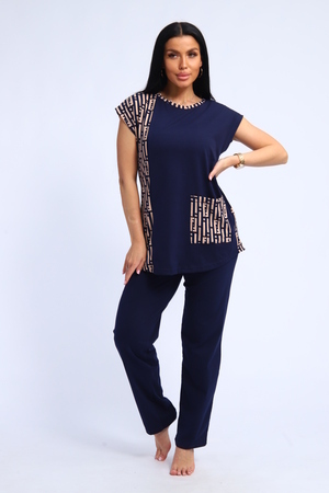 Костюм женский футболка и брюки. Футболка полуприлегающего силуэта с накладным карманом. Плечо спущенное. Брюки прямого кроя.