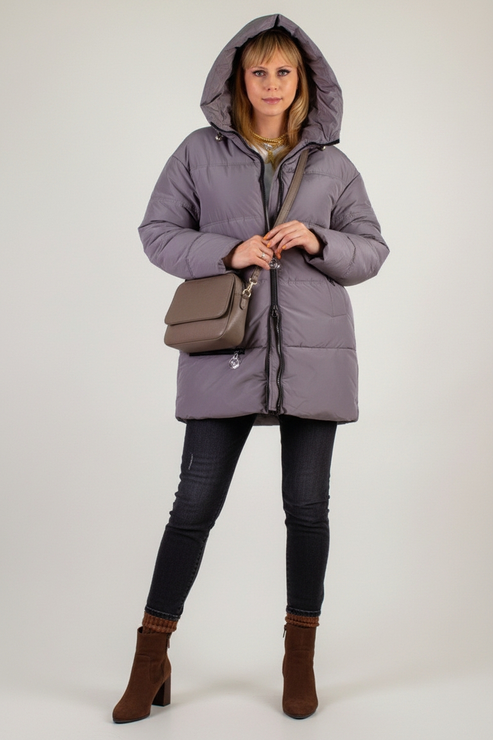 Стильная куртка с капюшоном Оверсайз Евро-зима, демисезон арт.2309