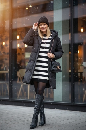 • Тёплый поясной ремень поверх куртки для подчёркивания талии.