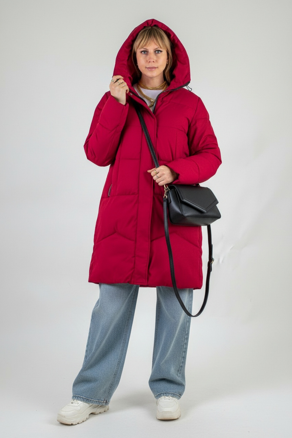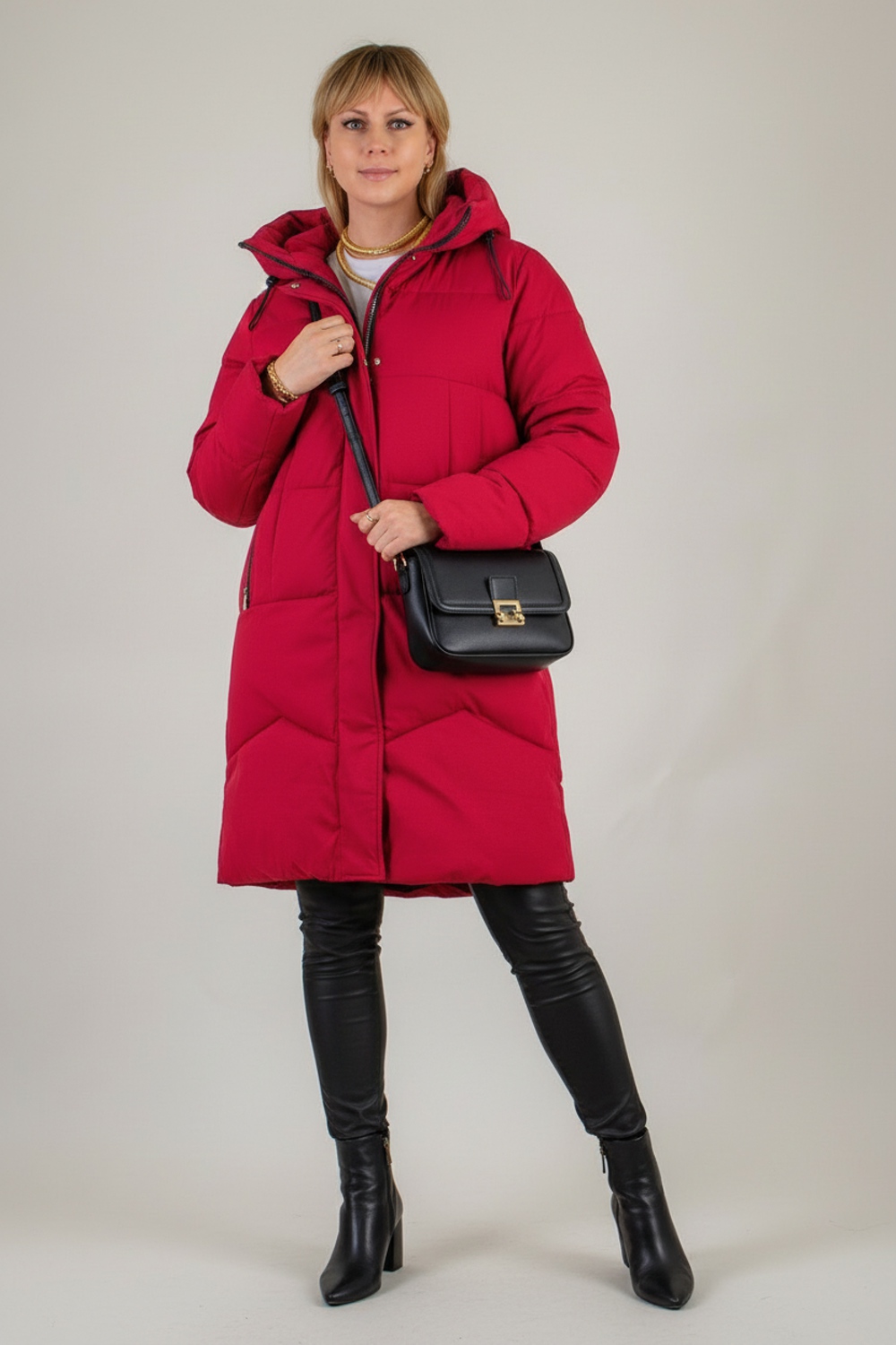 Модель оснащена двусторонней молнией и дополнительной утеплённой планкой на кнопках, что позволяет быстро регулировать уровень теплоизоляции — удобно при посадке в автомобиль или длительных прогулках по городу. Глубокий капюшон с фиксаторами и высокий воротник-стойка эффективно защищают от снега и сильного ветра, сохраняя комфорт даже в самую лютую стужу.