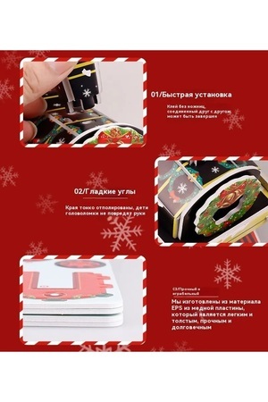 В отличие от традиционных плоских пазлов, 3D-пазлы представляют собой трехмерные рисунки с рождественской тематикой, такие как рождественские елки, снеговики, снежные сцены и т.д. Это создает реалистичную праздничную атмосферу.