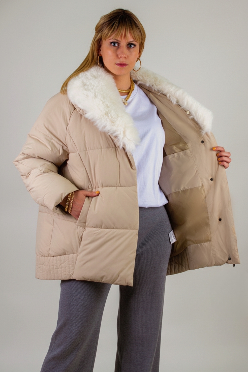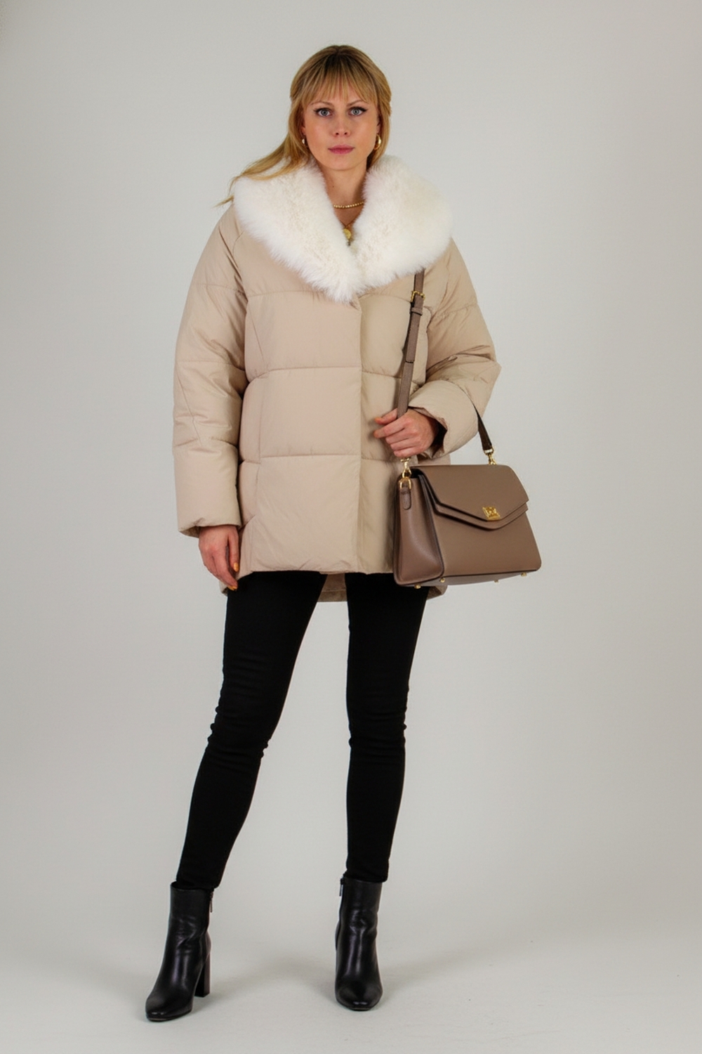 Куртка доступна в двух универсальных оттенках — строгом чёрном и утончённом бежевом. Лёгкая, тёплая и практичная, она станет надёжным спутником в холодный сезон, позволяя сочетать комфорт, защиту от непогоды и элегантный образ.