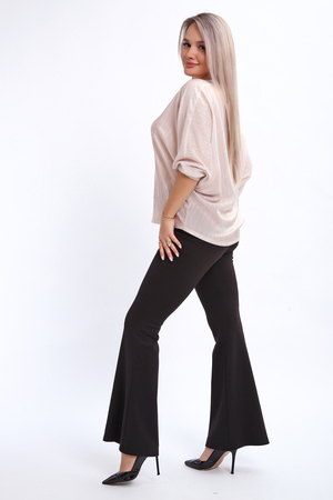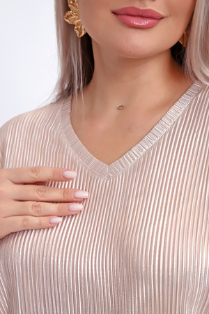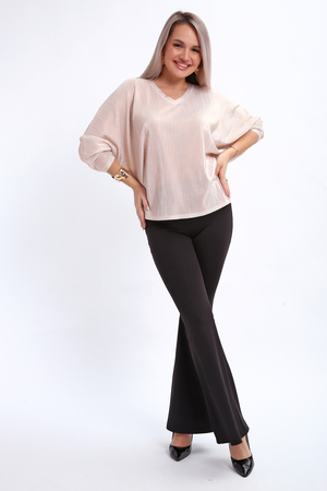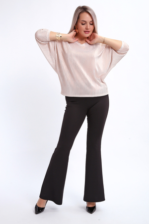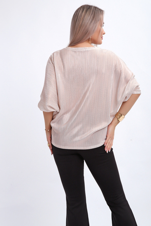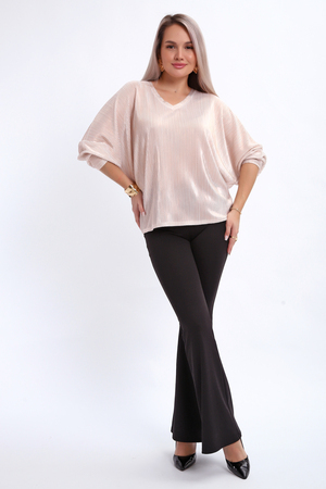Сделайте акцент на вашем стиле с помощью комфортной и изысканной блузки. Нарядная кофта - это необходимый предмет в любом гардеробе. Благодаря свободному крою, она идеально садится на любую фигуру, скрывая то, что хотелось бы спрятать и подчеркивая достоинства. Блузка выигрышно смотрится за счет ткани атлас гофре со стойким напылением фойл, которое не осыпается в процессе носки и после стирки. Ткань атлас гофре хорошо тянется и драпируется, имеет мягкий благородный блеск и совершенно не мнется. Крой блузки лаконичен, без лишних деталей, рукав "летучая мышь" не сковывает движений, имеет длину 3/4 и оканчивается небольшим манжетом. V-образный воротник зрительно удлиняет шею, обработан обтачкой, длина блузки до линии бедра. Легкая изящная блузка отлично впишется в вечерний наряд, а также будет блестящим дополнением к деловому и повседневному образу.