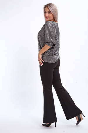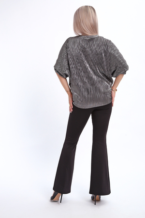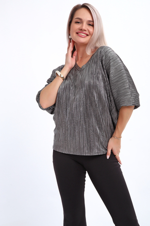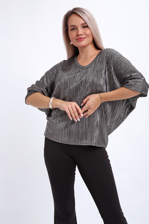 Сделайте акцент на вашем стиле с помощью комфортной и изысканной блузки. Нарядная кофта - это необходимый предмет в любом гардеробе. Благодаря свободному крою, она идеально садится на любую фигуру, скрывая то, что хотелось бы спрятать и подчеркивая достоинства. Блузка выигрышно смотрится за счет ткани атлас гофре со стойким напылением фойл, которое не осыпается в процессе носки и после стирки. Ткань атлас гофре хорошо тянется и драпируется, имеет мягкий благородный блеск и совершенно не мнется. Крой блузки лаконичен, без лишних деталей, рукав "летучая мышь" не сковывает движений, имеет длину 3/4 и оканчивается небольшим манжетом. V-образный воротник зрительно удлиняет шею, обработан обтачкой, длина блузки до линии бедра. Легкая изящная блузка отлично впишется в вечерний наряд, а также будет блестящим дополнением к деловому и повседневному образу.