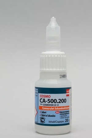 COSMOFEN CA-500.200 Однокомпонентный, прозрачный, универсальный, быстросохнущий цианакрилатный клей. Применяется для склеивания кожаных, стеклянных, резиновых, металлических и керамических поверхностей. Время схватывания моментального клея Космофен составляет всего 5 секунд. Cosmofen клей является водостойким, долговечным и устойчивым к температурам. Применяется как для бытовых, так и для производственных целей.Клей супер момент может заменить вам клей момент, клей для обуви. Клей COSMOFEN особопрочный, потому может склеить даже металл, дерево, или керамику. Клей, предназначен для надежного склеивания и ремонта изделий.Супер клей Космофен - оригинальный секундный супер быстрый клей, обладающий высокими прочностными характеристиками.