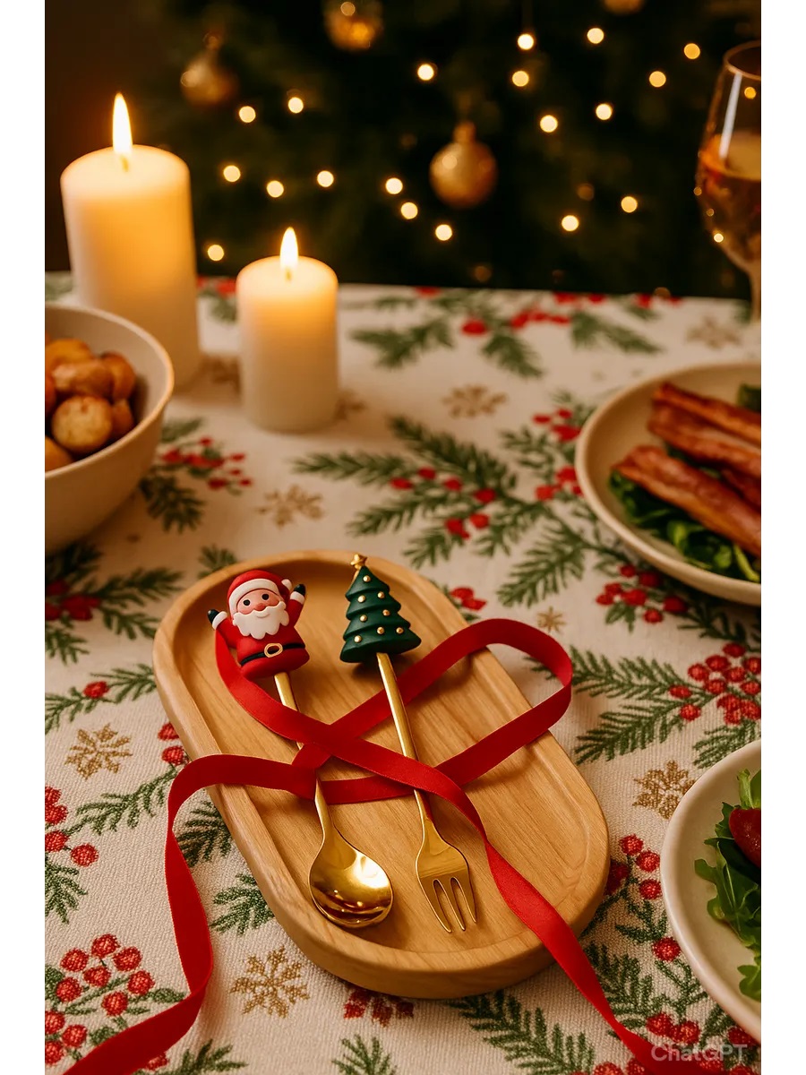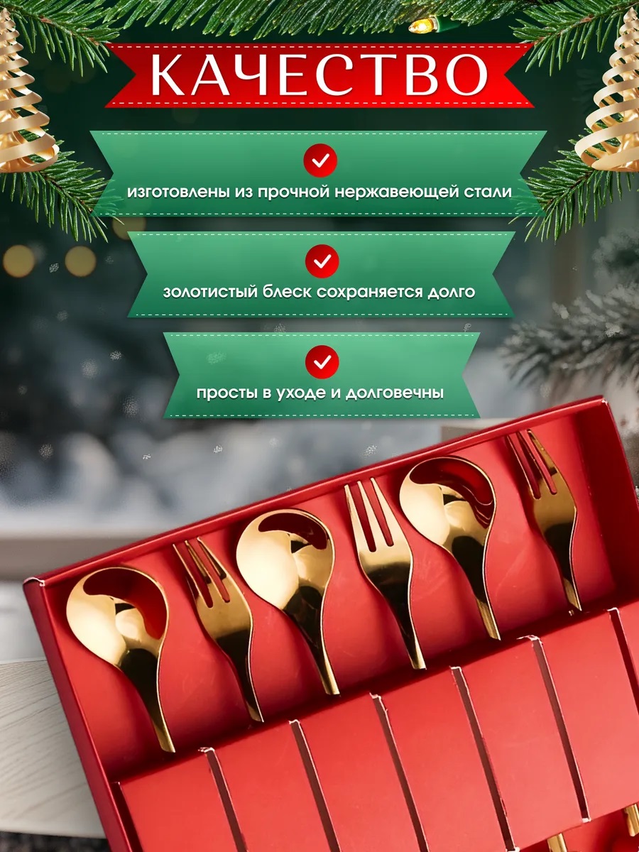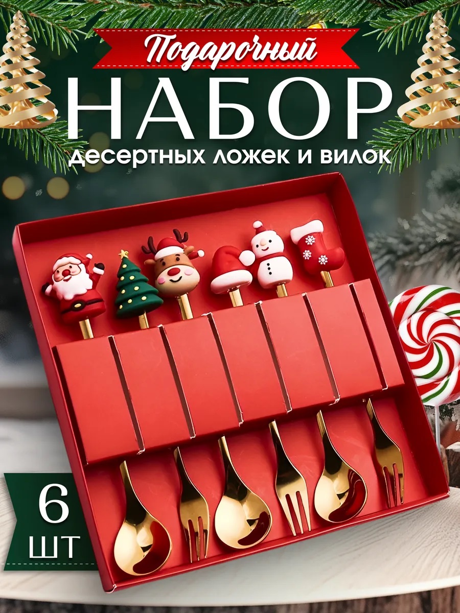 Ищите уникальное решение для вашего новогоднего стола? Невероятный новогодний набор из 6 десертных приборов станет прекрасным решением для вашего Нового Года и Рождества. В наборе вы найдете 3 вилки и 3 ложки из нержавеющей стали, украшенные милыми резиновыми новогодними фигурками. Подарочный новогодний набор для стола станет отличным дополнением вашего подарка для вашей любимой супруги или коллеги, а также отлично порадует маму и девушку. Десертные приборы выполнены в золотом цвете, что придает им праздничный вид. Набор уже упакован в подарочную коробочку. Добавьте в коллекцию новогодний набор, чтобы украсить праздники и порадовать близких. Набор столовых предметов - это отличное решение для сервировки вашего новогоднего стола ! Удивите своих родных и близких с нашим набором и прочувствуйте всю атмосферу Нового года !