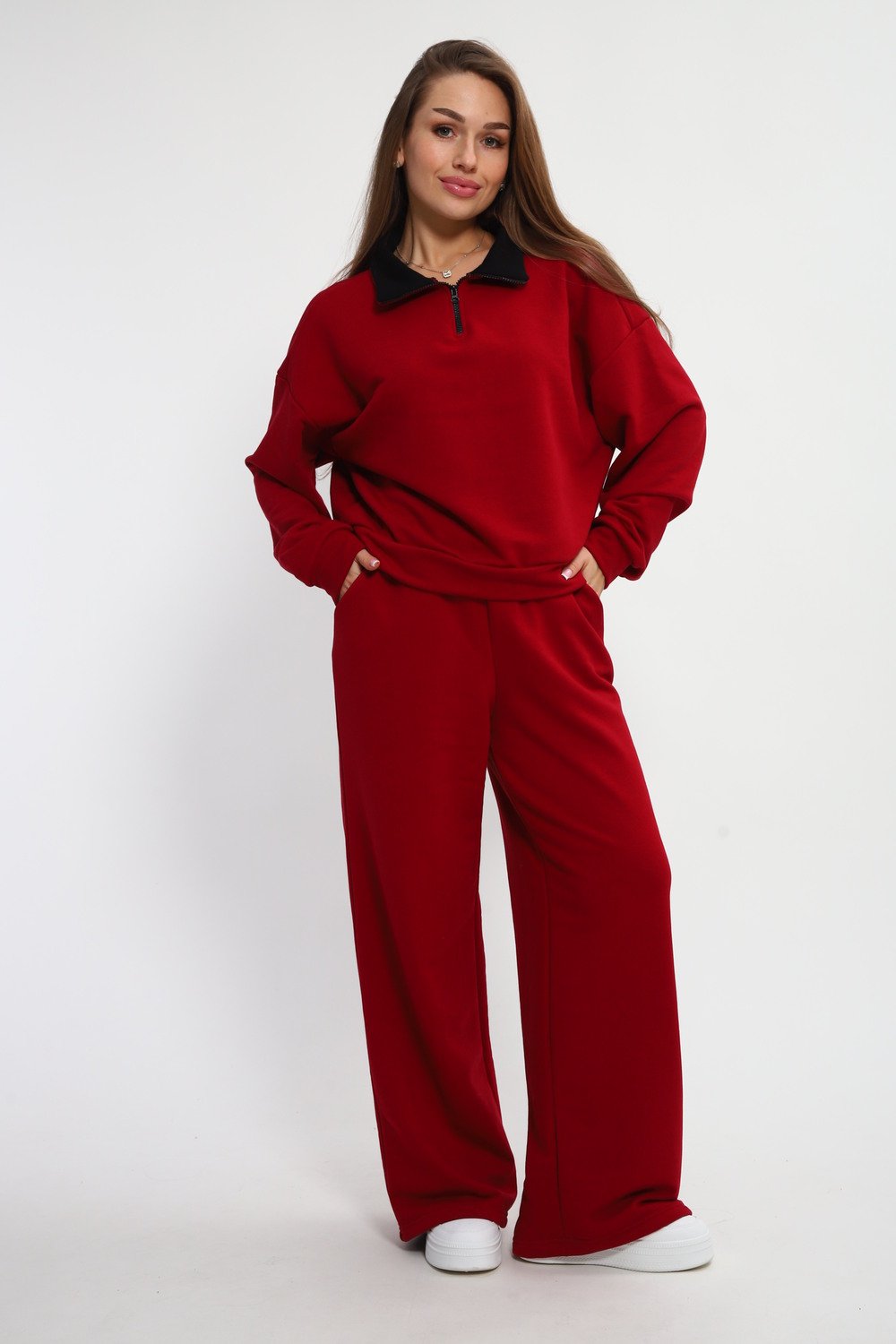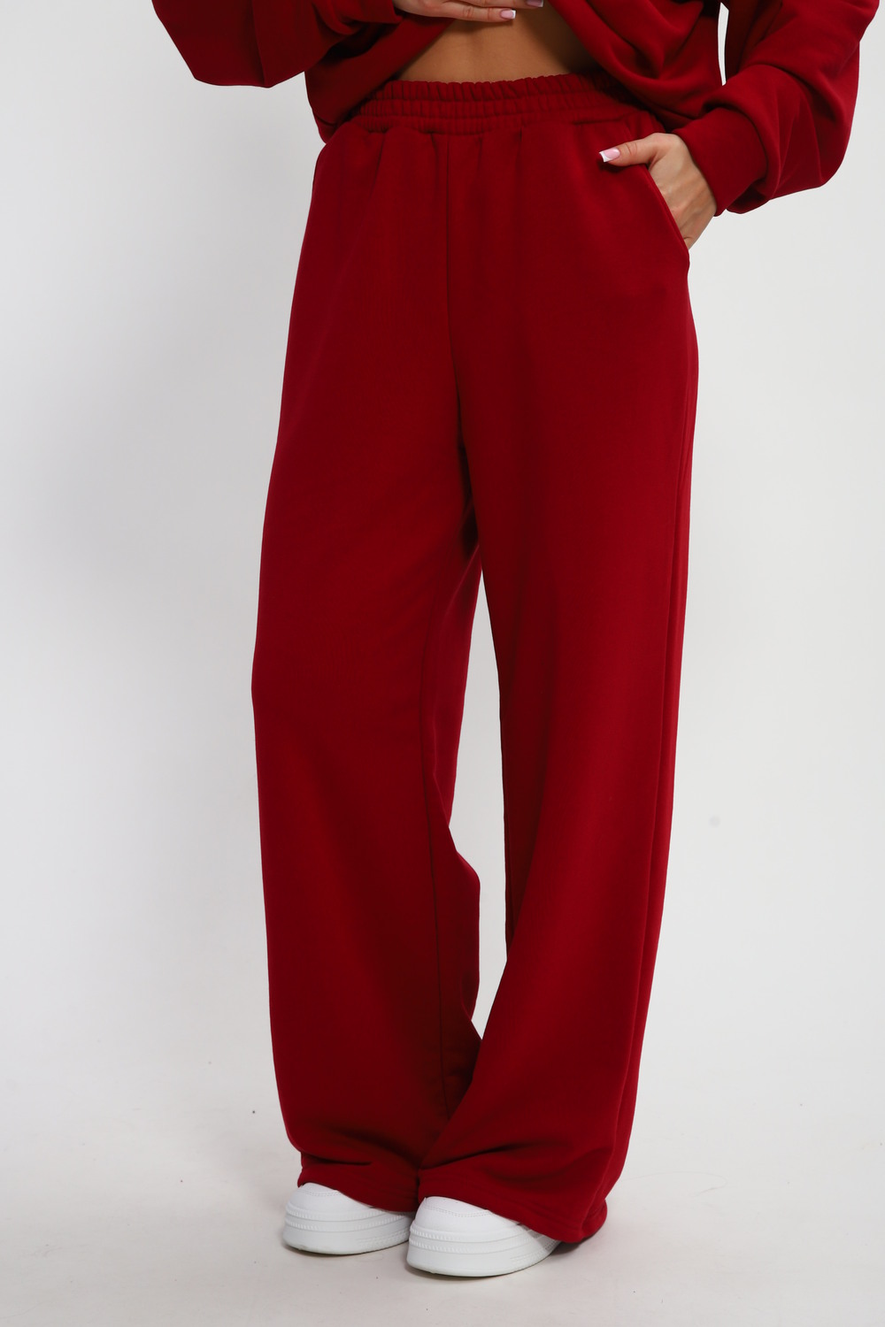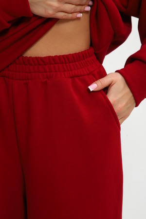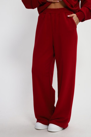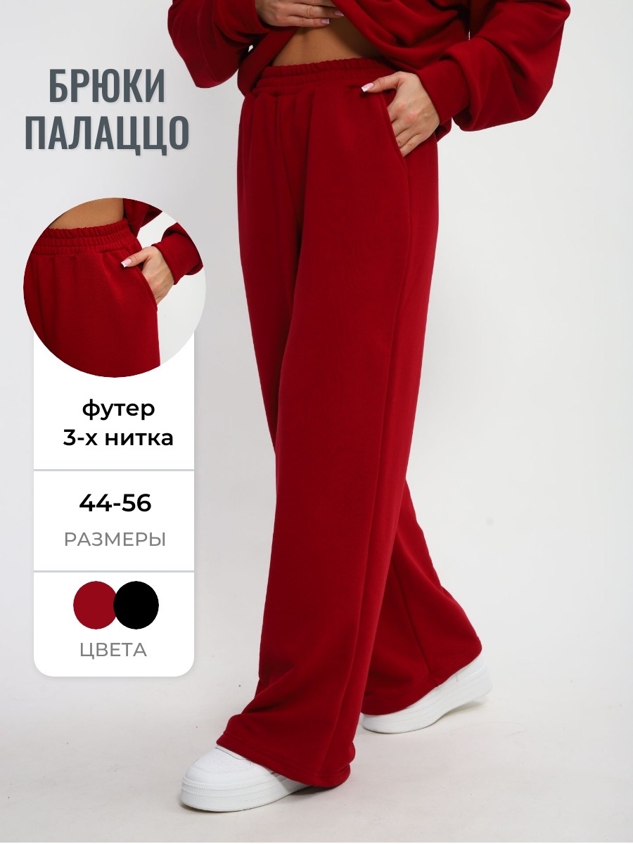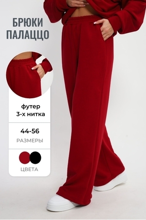 Стильные и удобные трикотажные брюки палаццо на резинке создают универсальный образ, а также комфортны в ношении, расклешенные от бедра - визуально стройнят. Штаны изготовлены из качественного футера 3-х нитки, который не скатывается при ношении. Универсальный крой хлопковых брюк сочетает в себе разные стили: вы можете носить их с кедами, как спортивные штаны или надеть на работу, в школу, университет или даже дома. Брюки палаццо отлично сочетаются со свитшотом или худи, их можно надеть вместе и носить как костюм. На данном сайте также представлен свитшот 85555 в таком же оттенке бордо на молнии. Вы можете покупать как отдельно, так и вместе.