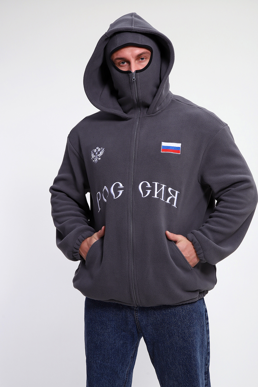 Представляем вам стильную зипку с балаклавой и капюшоном, которая станет настоящим must-have в вашем гардеробе. Эта кофта с балаклавой и капюшоном не просто согреет вас в прохладную погоду, но и подчеркнет ваш индивидуальный стиль. Она отлично подойдет как для повседневной носки, так и для активного отдыха. Модель выполнена из качественного материала и имеет удобные прорезные карманы. Рукава и низ изделия выполнены на резинке. Благодаря стилю oversize Вы почувствуете свободу движений и комфорт в любой ситуации. А балаклава и капюшон защитят вас от ветра и холода. Эта зипка со стильной надписью “Россия” и фирменной символикой - настоящий хит сезона, которую оценят любители комфорта и стиля. Подходит как для подростков, так и для взрослых - на работу, прогулку, в школу или офис. А так же для любимого вида спорта: лыжи, коньки или сноуборд. И только у нас представлен большой размерный ряд. Не упустите возможность стать обладателем этой уникальной вещи!