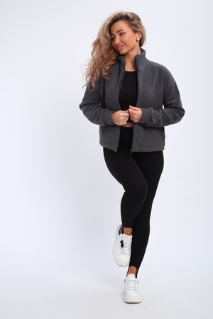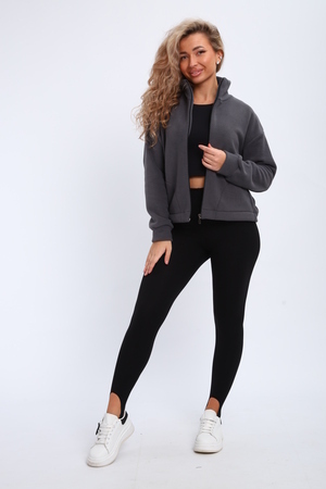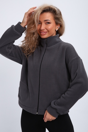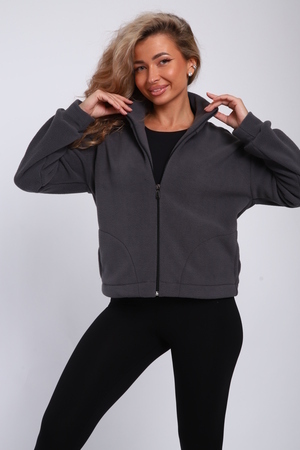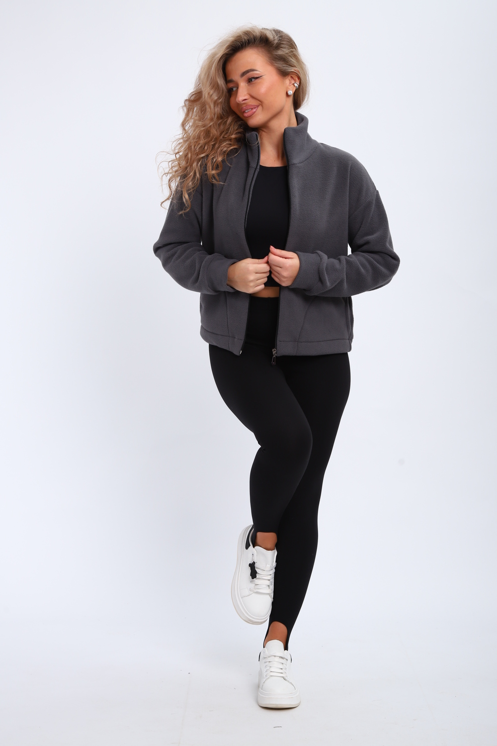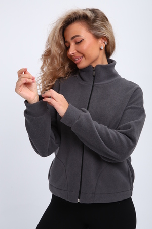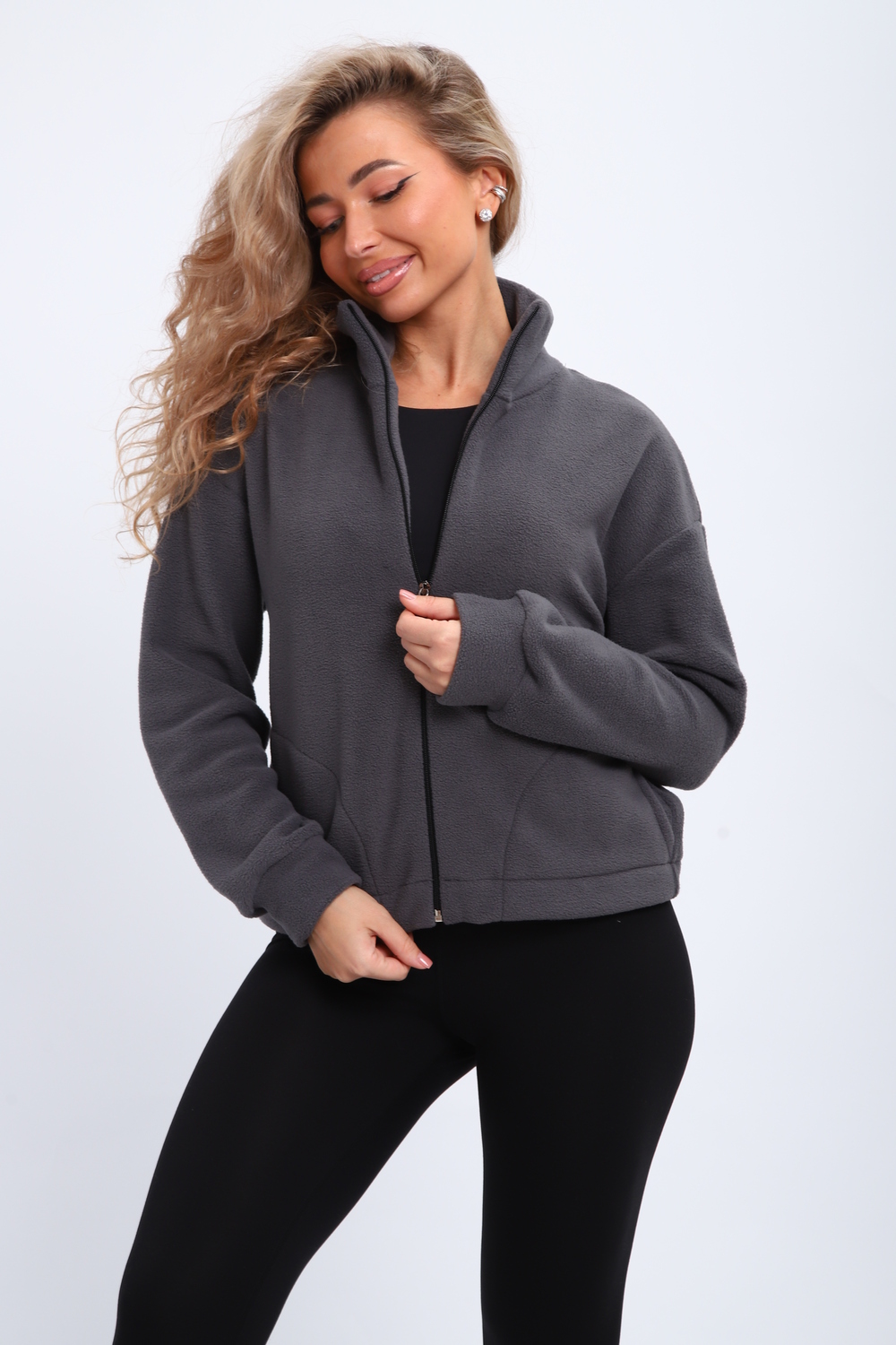 Теплая женская кофта на молнии с карманами. Длинный рукав на манжете, воротник стойка.