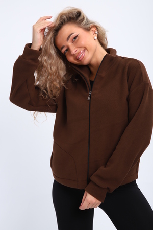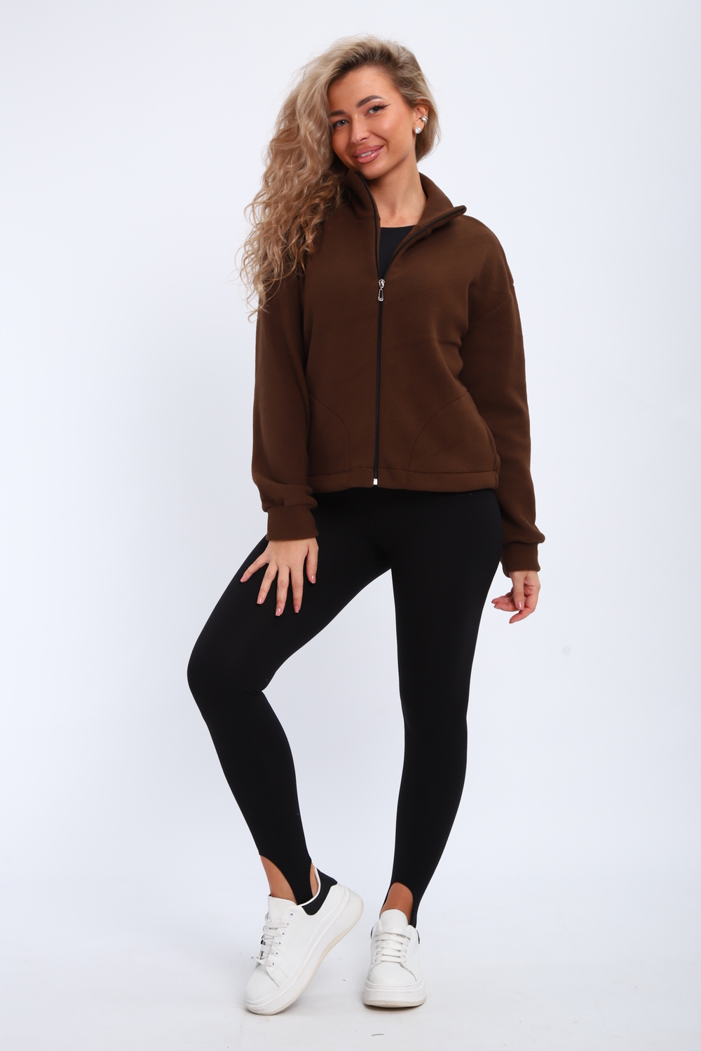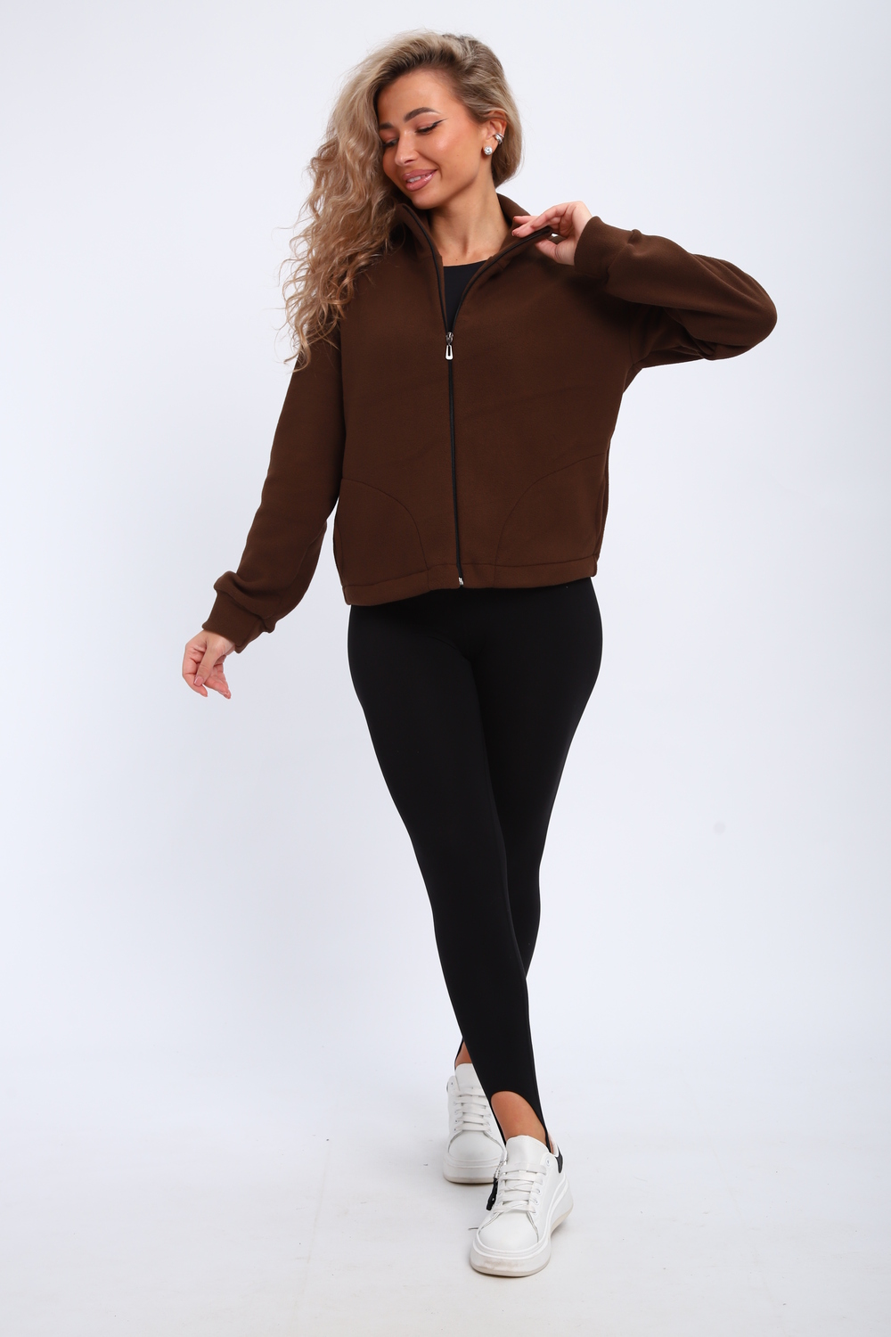 Кофта женская теплая на молнии с карманами. Рукав длинный на манжете, воротник стойка.