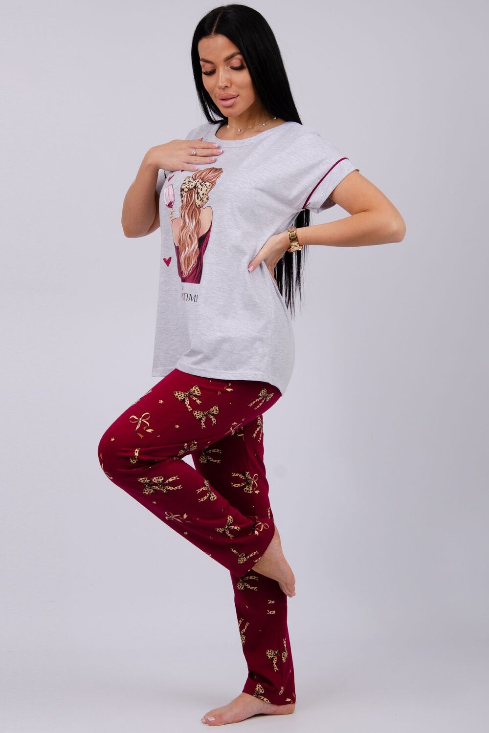 Пижама женская со штанами изготовлена из мягкой ткани (100 % хлопка), которая обладает дышащими и влаговпитывающими свойствами, идеально подходит для сна, обеспечивает максимальную практичность и воздухопроницаемость, облегчая сон даже в самые жаркие и холодные ночи. Женский домашний костюм состоит из стильной тонкой ночной футболки с коротким рукавом и легких брюк, которые создают комфортный домашний уют дома. Милая женская пижамка украшена стильным принтом. Пижама женская яркая и в тоже время нежная, идеальна для беременных, будущих мам или в роддом, ведь в этой пижаме для беременных удобно весь день. Носить можно в любое время года: осенью или даже зимой под согревающим одеялом.