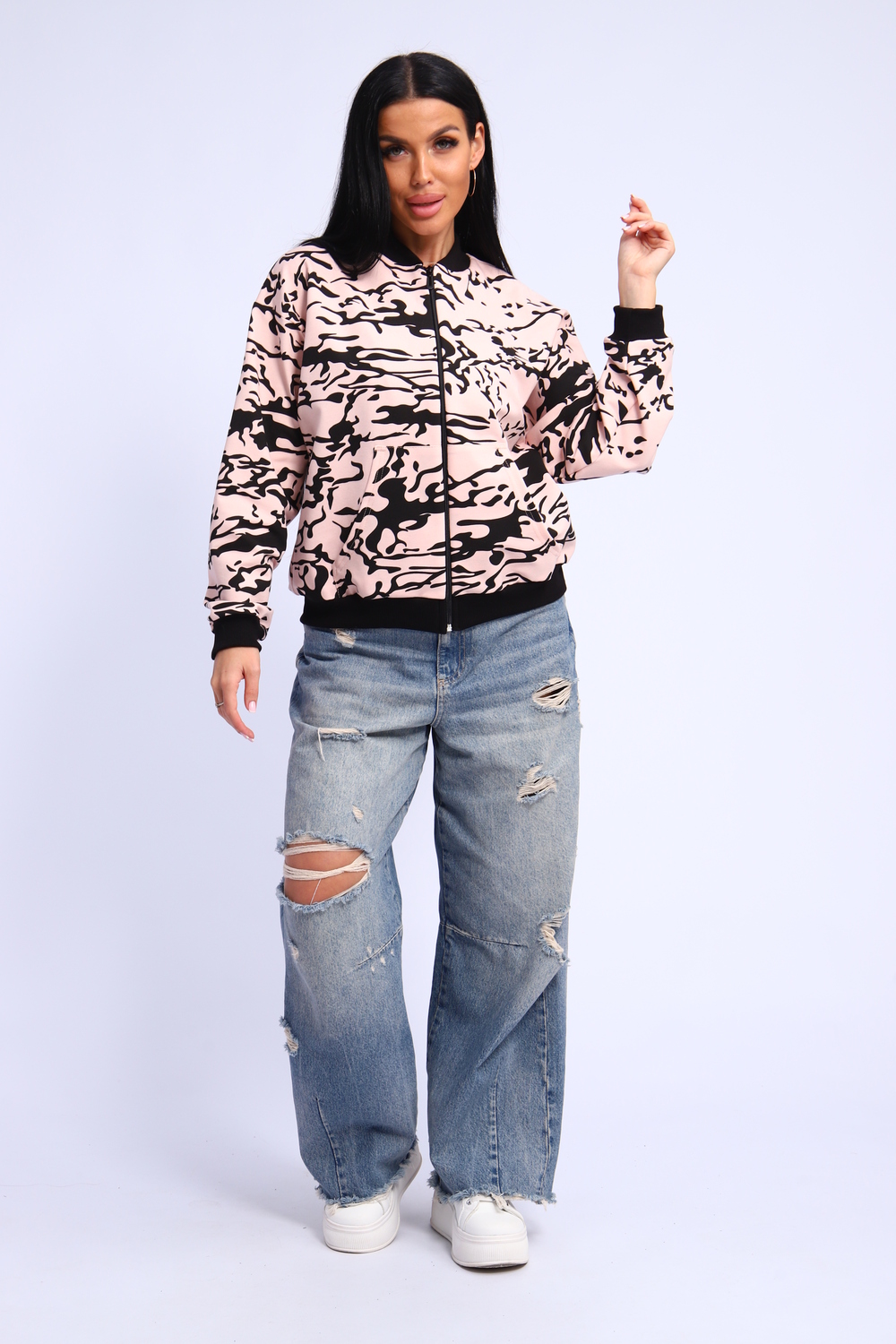 Эта стильная женская толстовка на молнии станет настоящей находкой для тех, кто ценит сочетание удобства и модного дизайна. Благодаря свободному крою оверсайз идеально сидит на фигуре, не стесняет движений и подходит для разных типов телосложения, в том числе женщинам больших размеров.