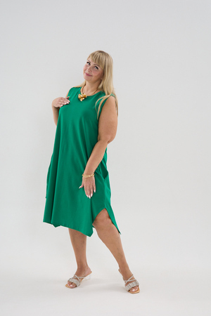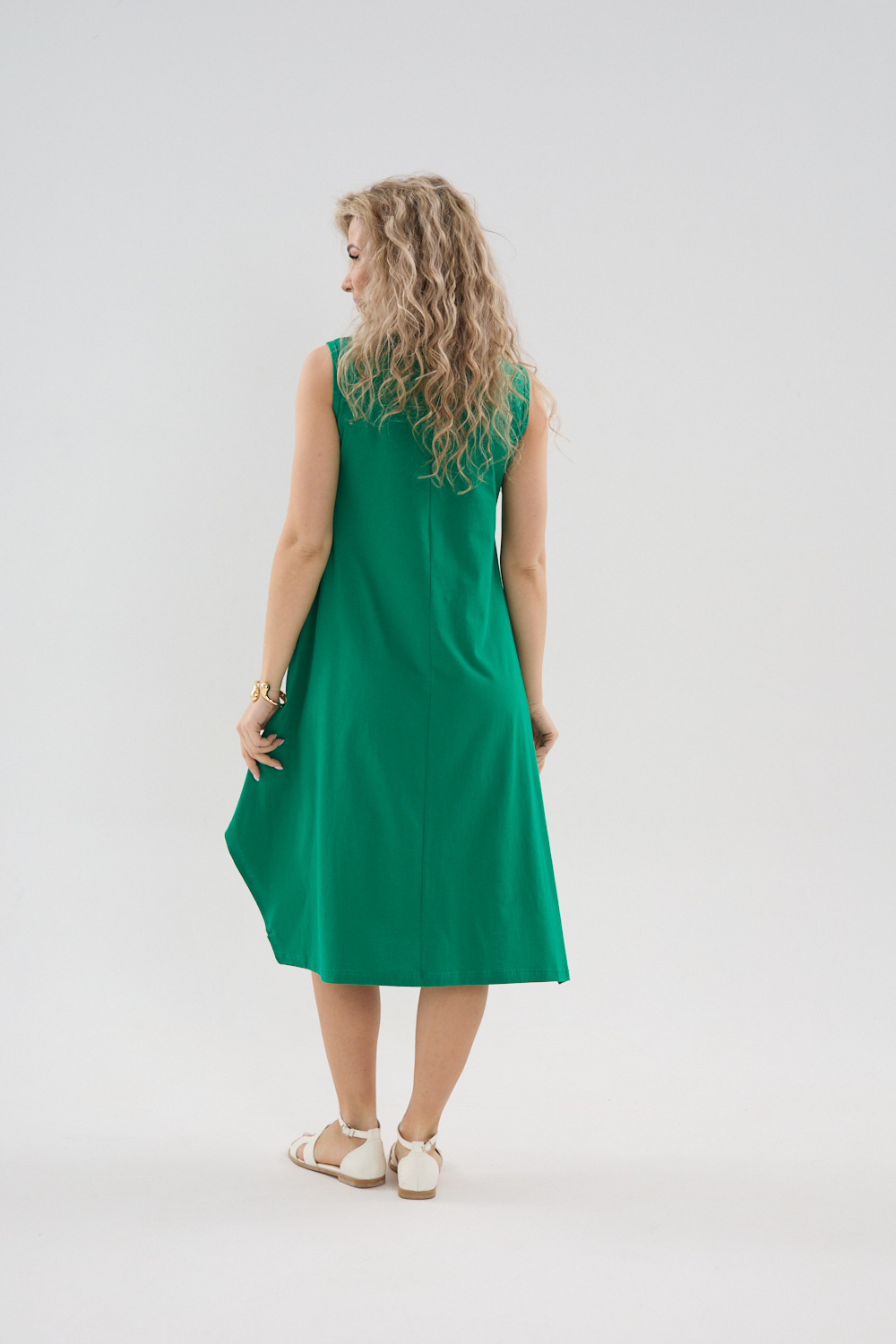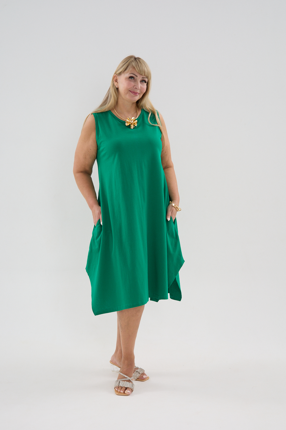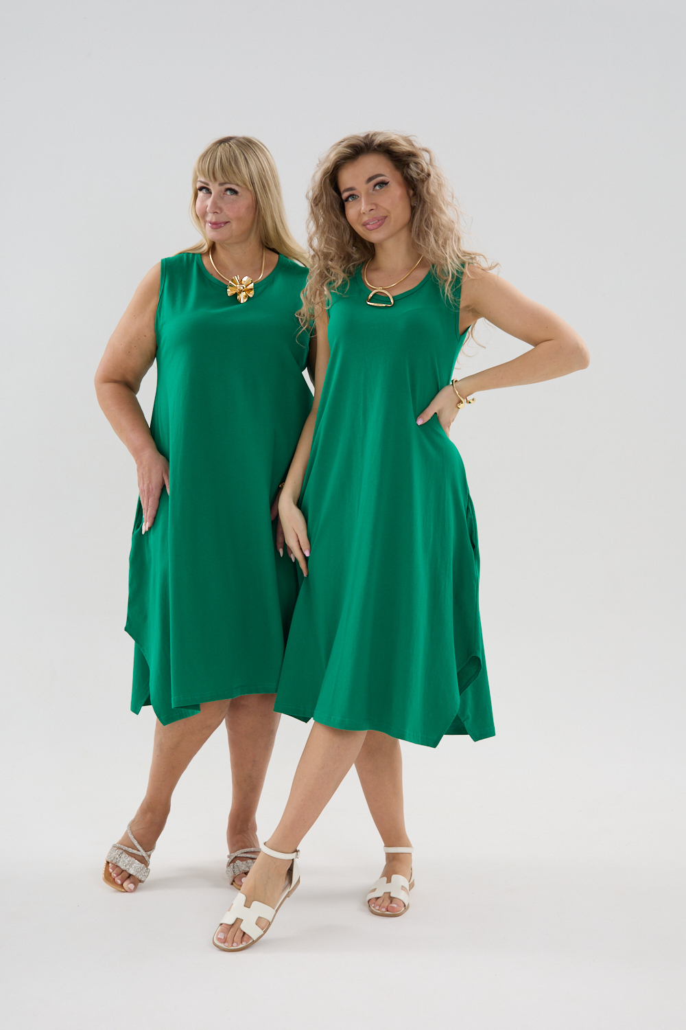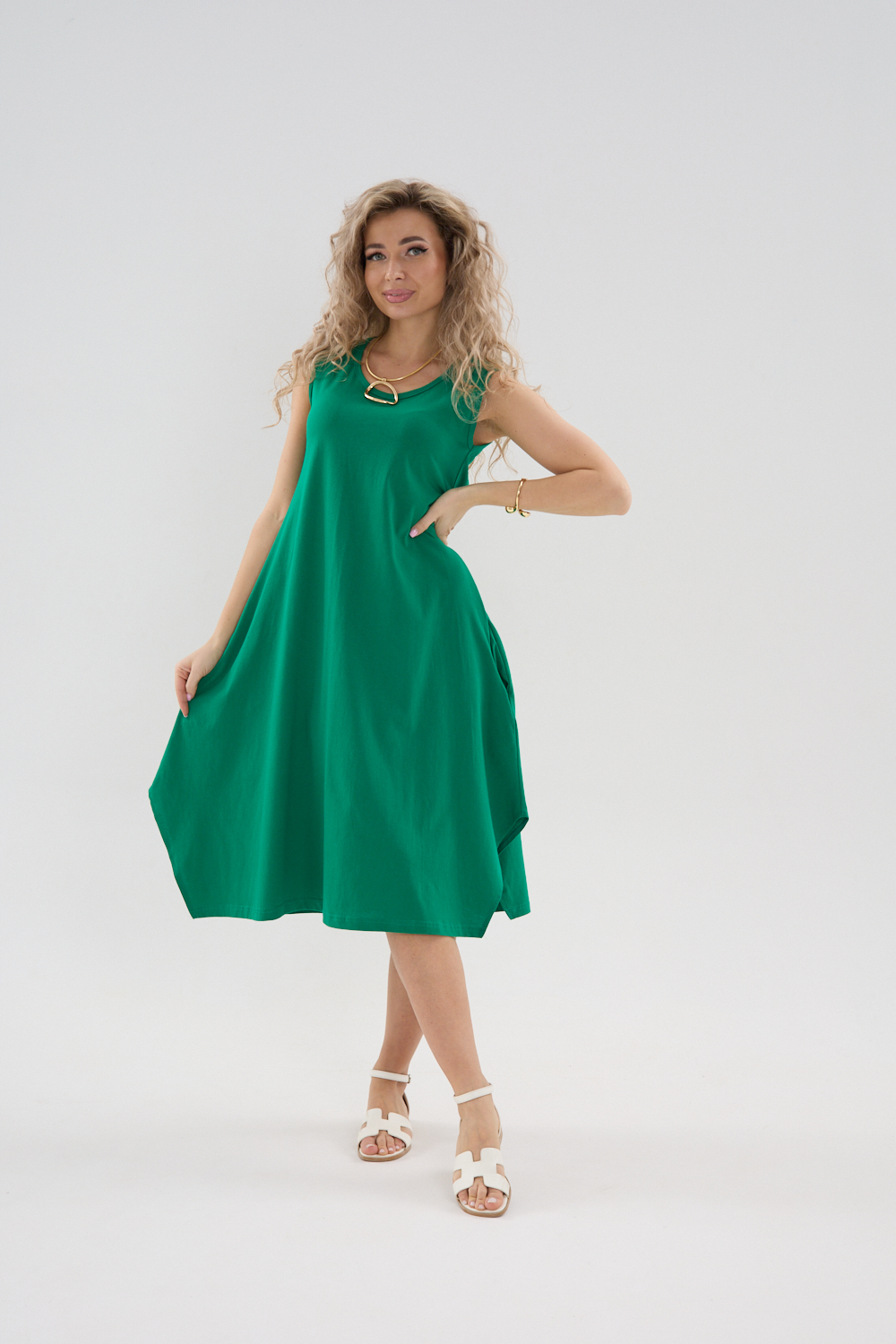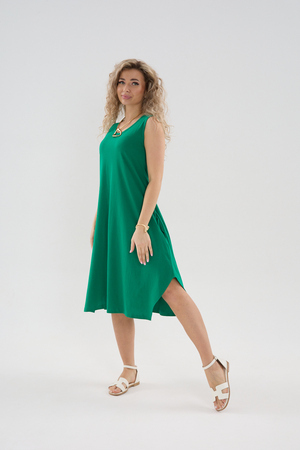 выполнен из трикотажного полотна -100% хлопка , комфортный и мягкий на ощупь, размерная сетка включает в себя большие размеры. Подол сарафана украшен ассиметричными вырезами. Удобный удлиненный хлопковый сарафан подойдет и как летний на прогулку или на пляж и как домашнее нарядное платье. Проверенный крой, свободный и не облегающий фигуру, не ограничивает движений, что немаловажно для беременных или полных женщин. А - силуэт с ассиметричной длиной миди, по колено интересно смотрится. Высокая посадка не акцентирует линию талии, расклешенный фасон сбалансирует фигуру с широкими плечами, скроет лишние сантиметры в бедрах. Женский сарафан - отличный подарок для девушек и женщин ! Мы отшиваем одежду на собственном производстве и гарантируем отличное качество и доступность цен. Сарафан летний нарядный домашний подчеркнет вашу индивидуальность и подарит комфорт и уверенность.