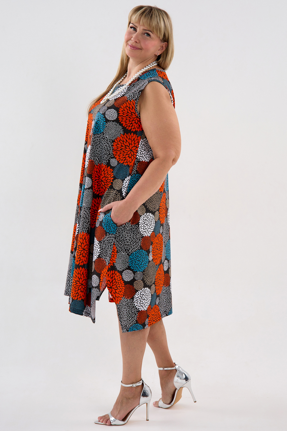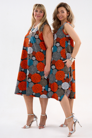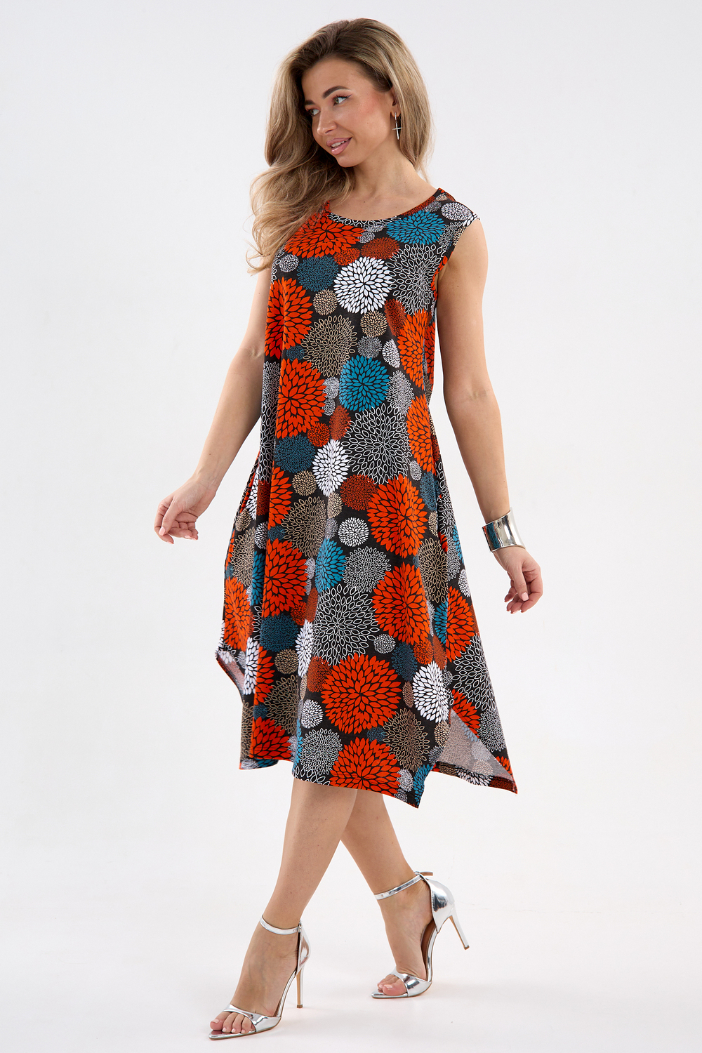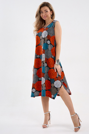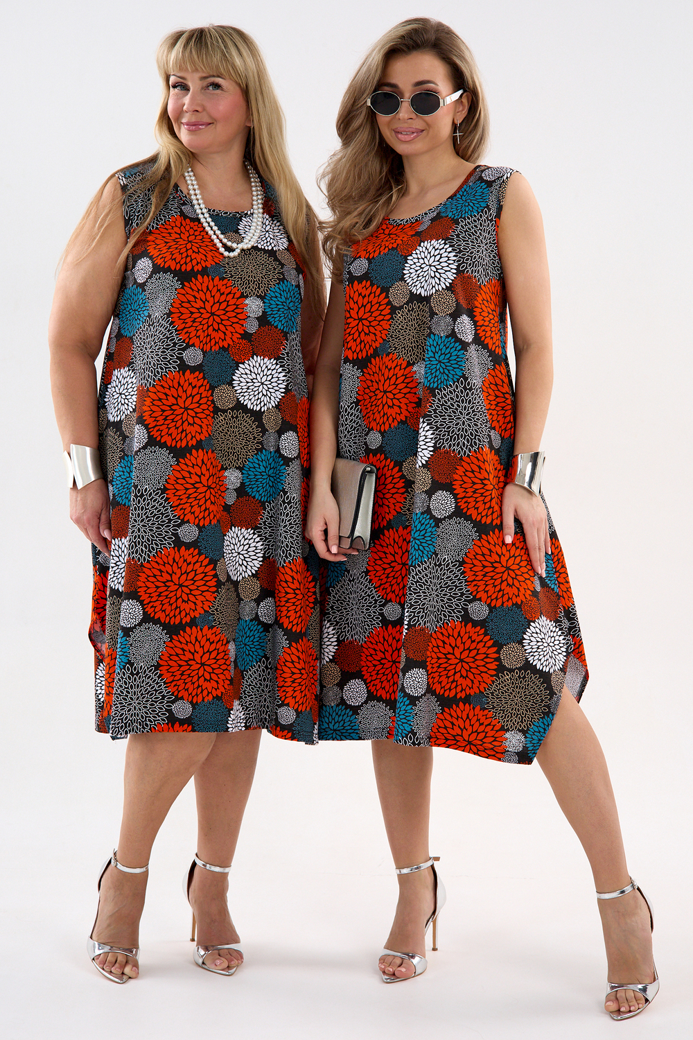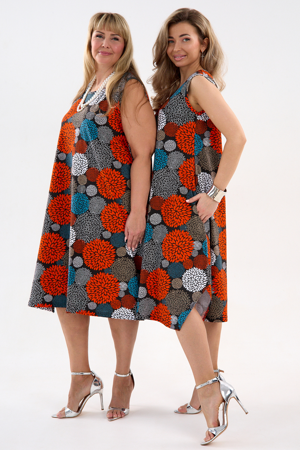 выполнен из трикотажного полотна -100% хлопка , комфортный и мягкий на ощупь, размерная сетка включает в себя большие размеры. Подол сарафана украшен ассиметричными вырезами. Удобный удлиненный хлопковый сарафан подойдет и как летний на прогулку или на пляж и как домашнее нарядное платье. Проверенный крой, свободный и не облегающий фигуру, не ограничивает движений, что немаловажно для беременных или полных женщин. А - силуэт с ассиметричной длиной миди, по колено интересно смотрится. Высокая посадка не акцентирует линию талии, расклешенный фасон сбалансирует фигуру с широкими плечами, скроет лишние сантиметры в бедрах. Женский сарафан - отличный подарок для девушек и женщин ! Мы отшиваем одежду на собственном производстве и гарантируем отличное качество и доступность цен. Сарафан летний нарядный домашний подчеркнет вашу индивидуальность и подарит комфорт и уверенность.
